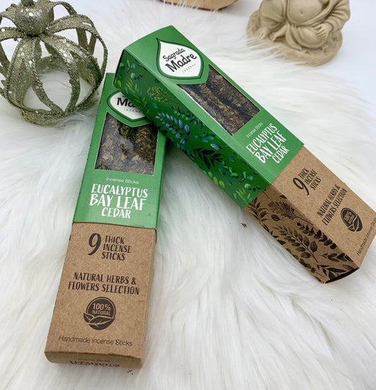 Kräuter-Räucherstäbchen aus Eukalyptus, Lorbeerblatt und Zedernholz