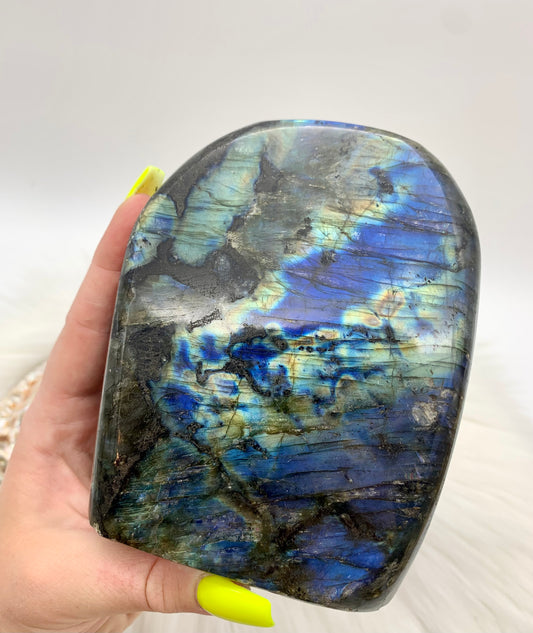 AusverkauftLabradorit Freeform - blau/gelb/grüner Flash