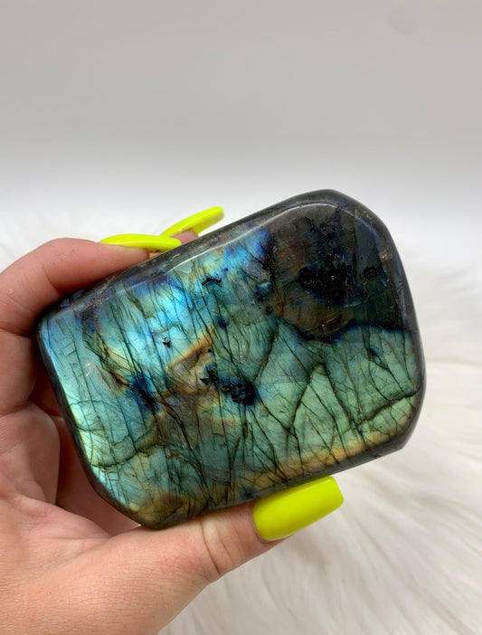Labradorit Freeform - blauer/grüner/goldener Flash