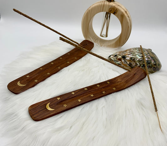 Räucherstäbchenhalter aus Holz verziert mit Sternen & einem Mond