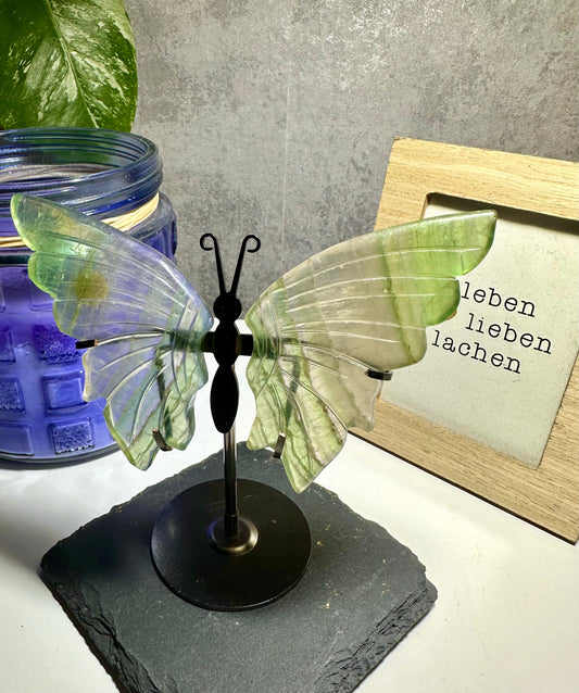 Regenbogen Fluorit Schmetterling auf Metallständer