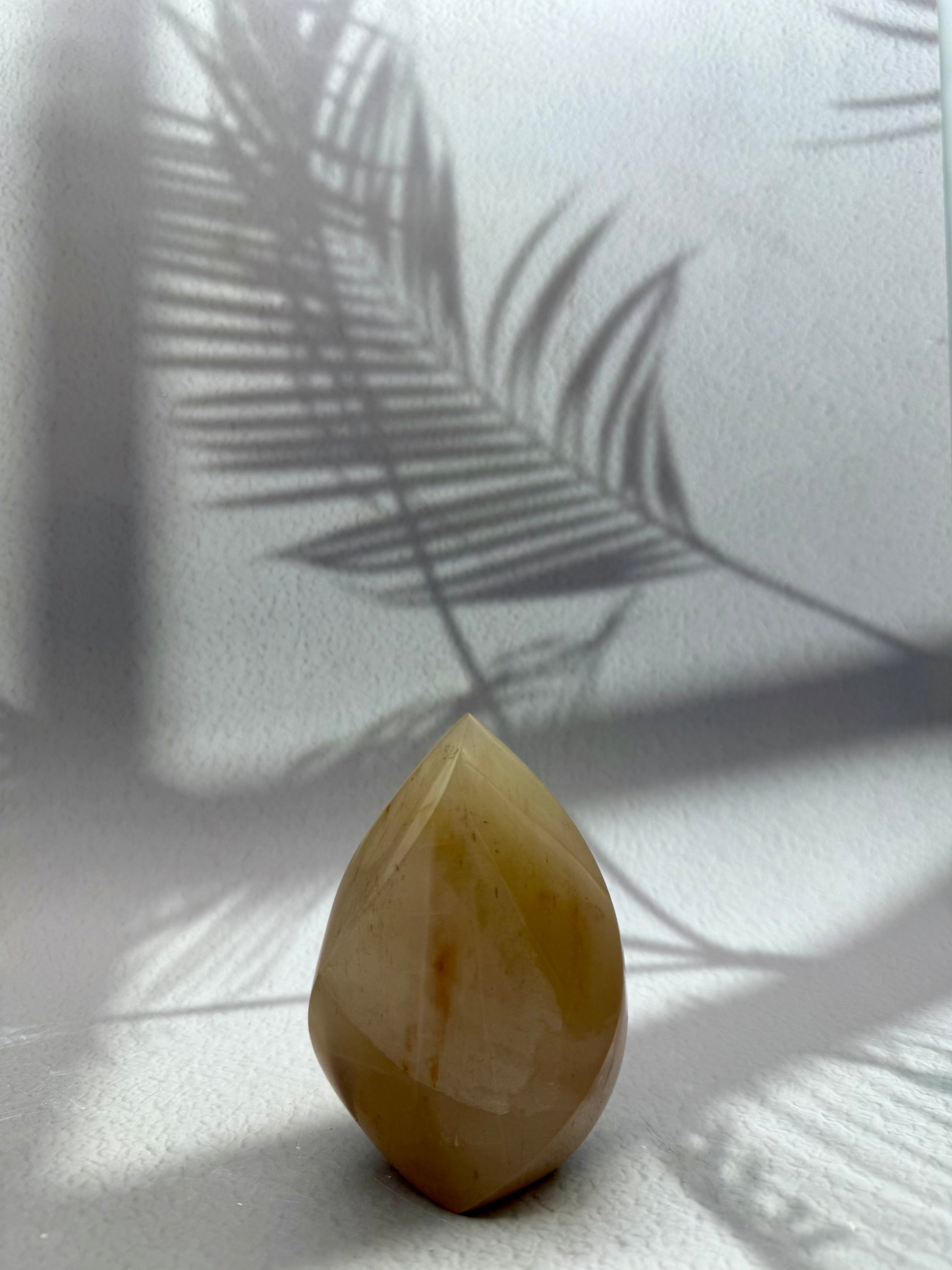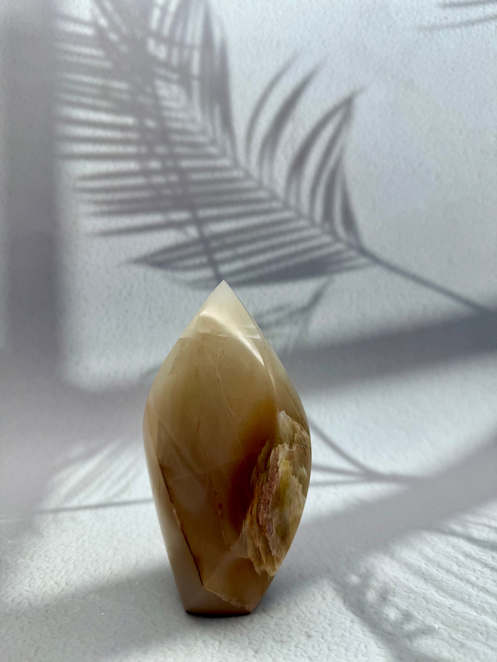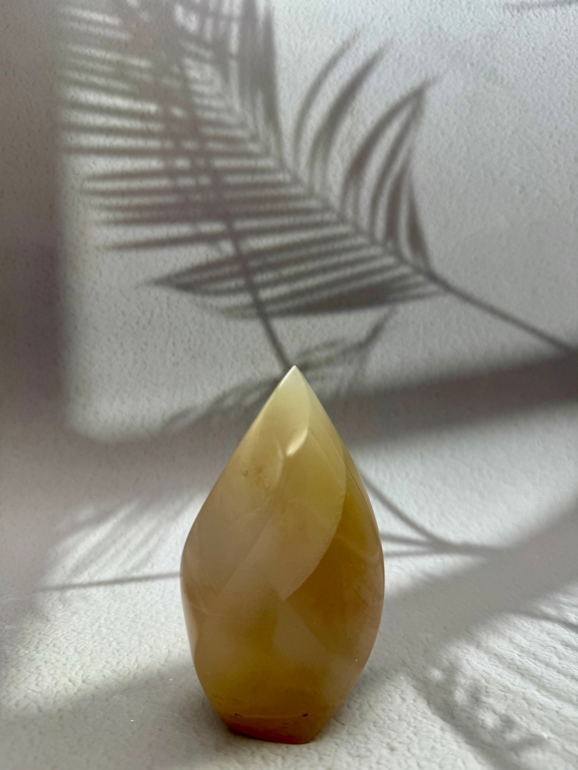 Aprikosen-Achat steht sinnbildlich für emotionale Balance, Sanftheit und Geborgenheit. Seine warmen Aprikosennuancen werden oft mit Herzenergie, innerer Stabilität und einem ruhigen, liebevollen Fluss assoziiert. In Flammenform verstärkt der Stein den Eindruck von sanfter Kraft, Zentrierung und lebendiger Wärme – ideal für Wohnräume, kreative Bereiche oder Orte, an denen Harmonie und Ruhe erwünscht sind.