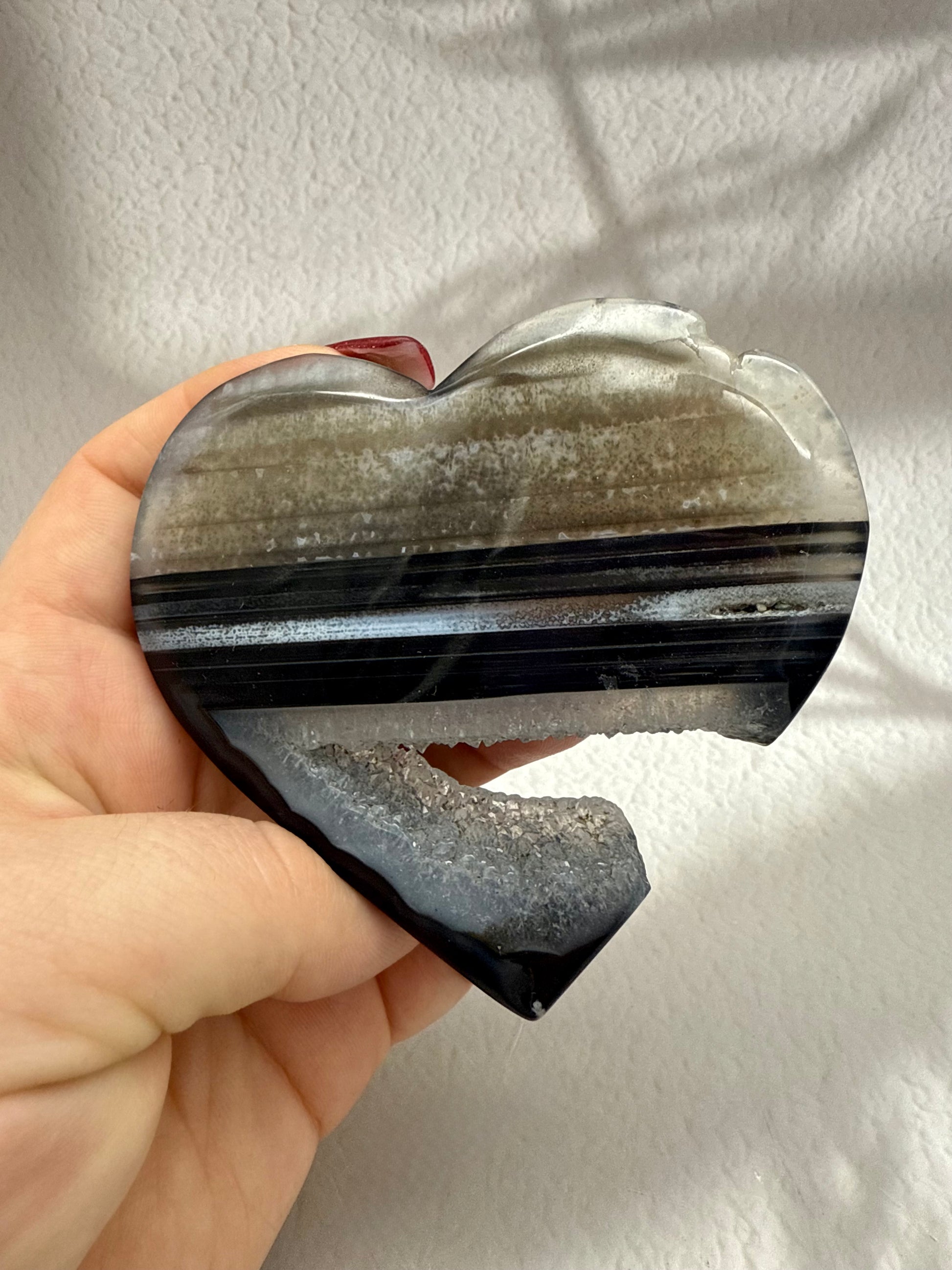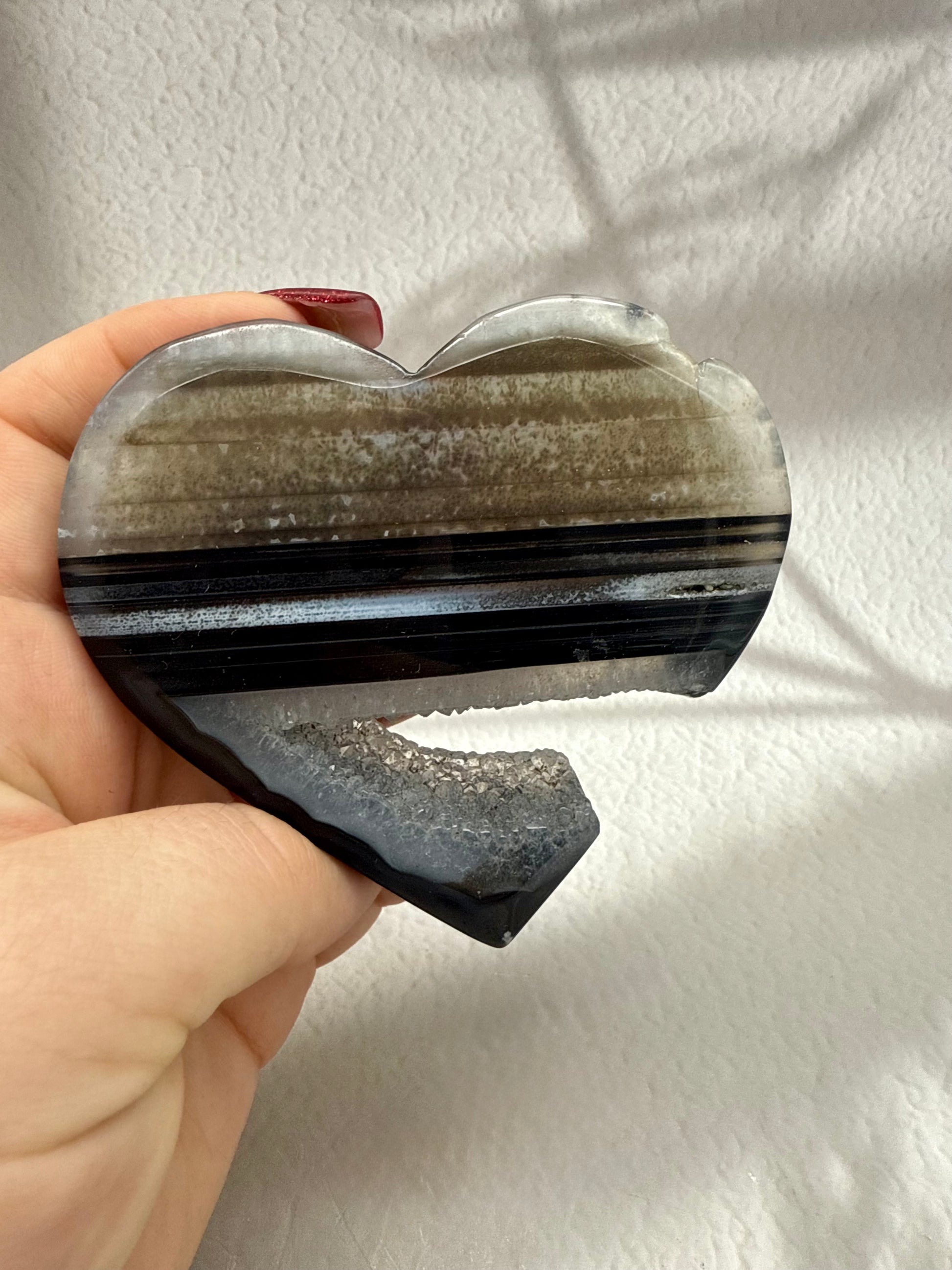 Schwarzes Achat-Herz mit Druse – Schutz, Eleganz & kraftvolle Energie