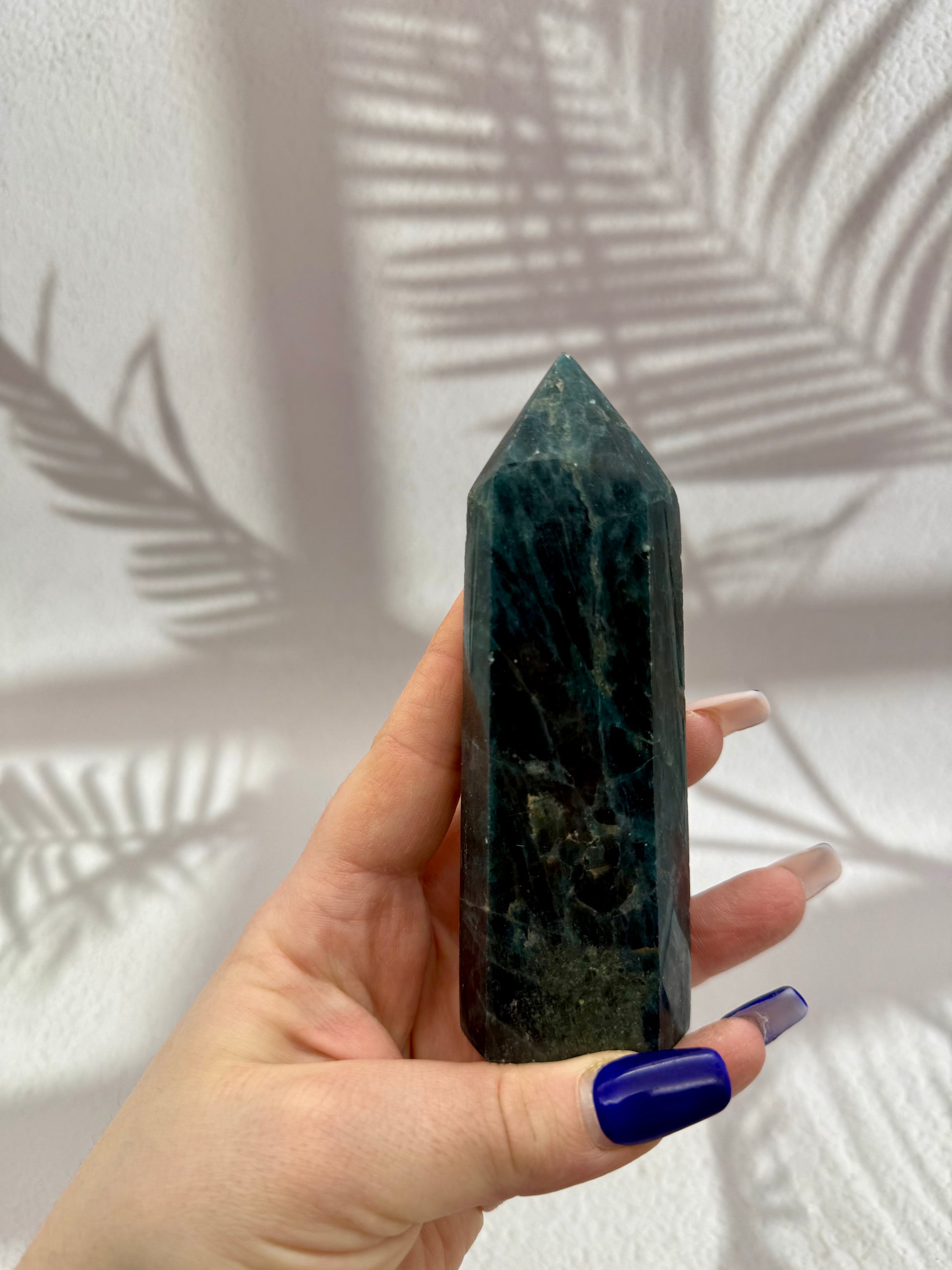 Dieser wunderschöne Apatit Turm besticht durch seine intensive Farbgebung in leuchtenden Blau- bis Türkistönen und seine klare, elegante Form. Die geschliffene Turmform bringt die natürliche Schönheit des Apatits besonders harmonisch zur Geltung und verleiht dem Stück eine kraftvolle, zugleich ruhige Ausstrahlung.