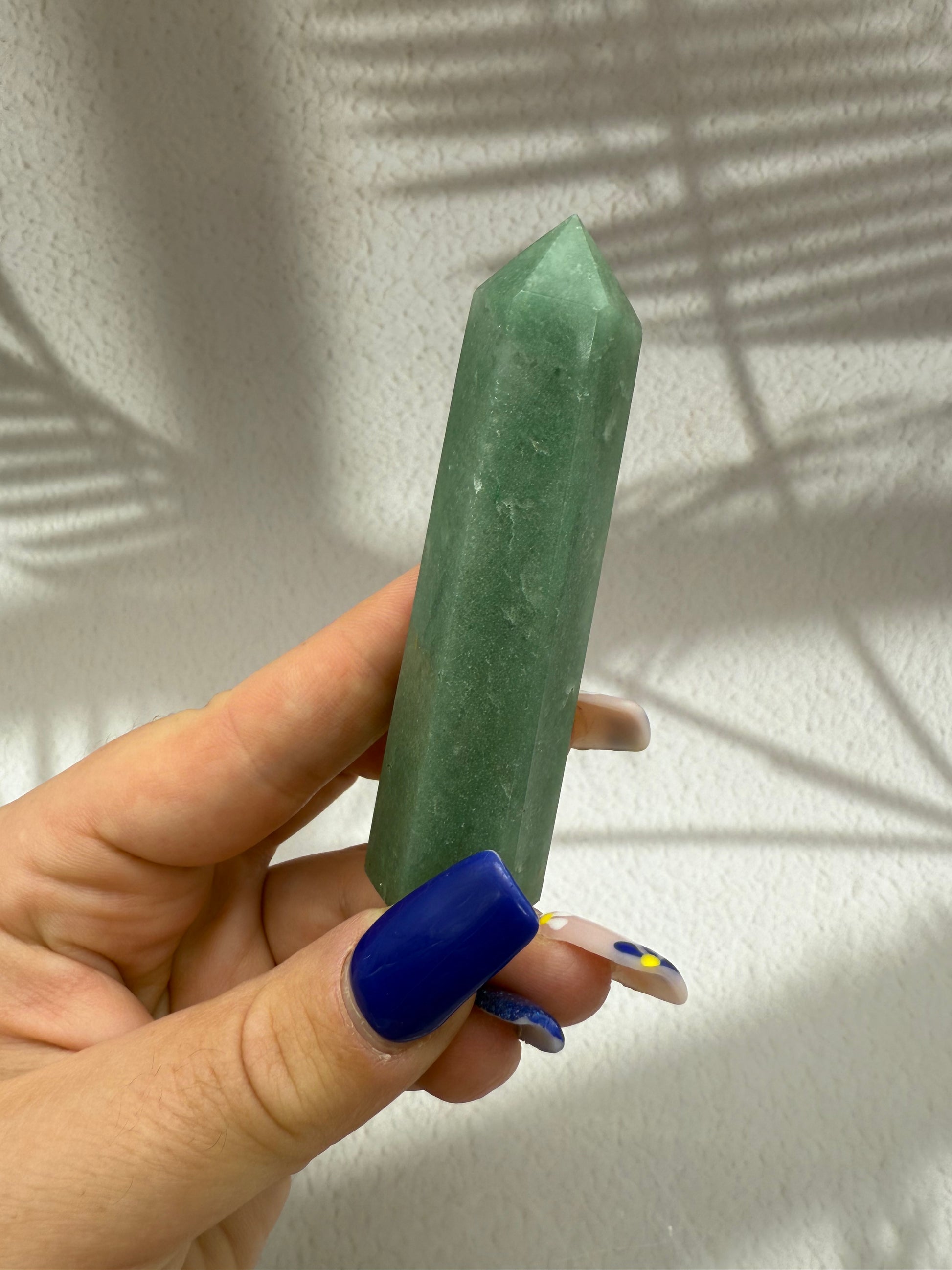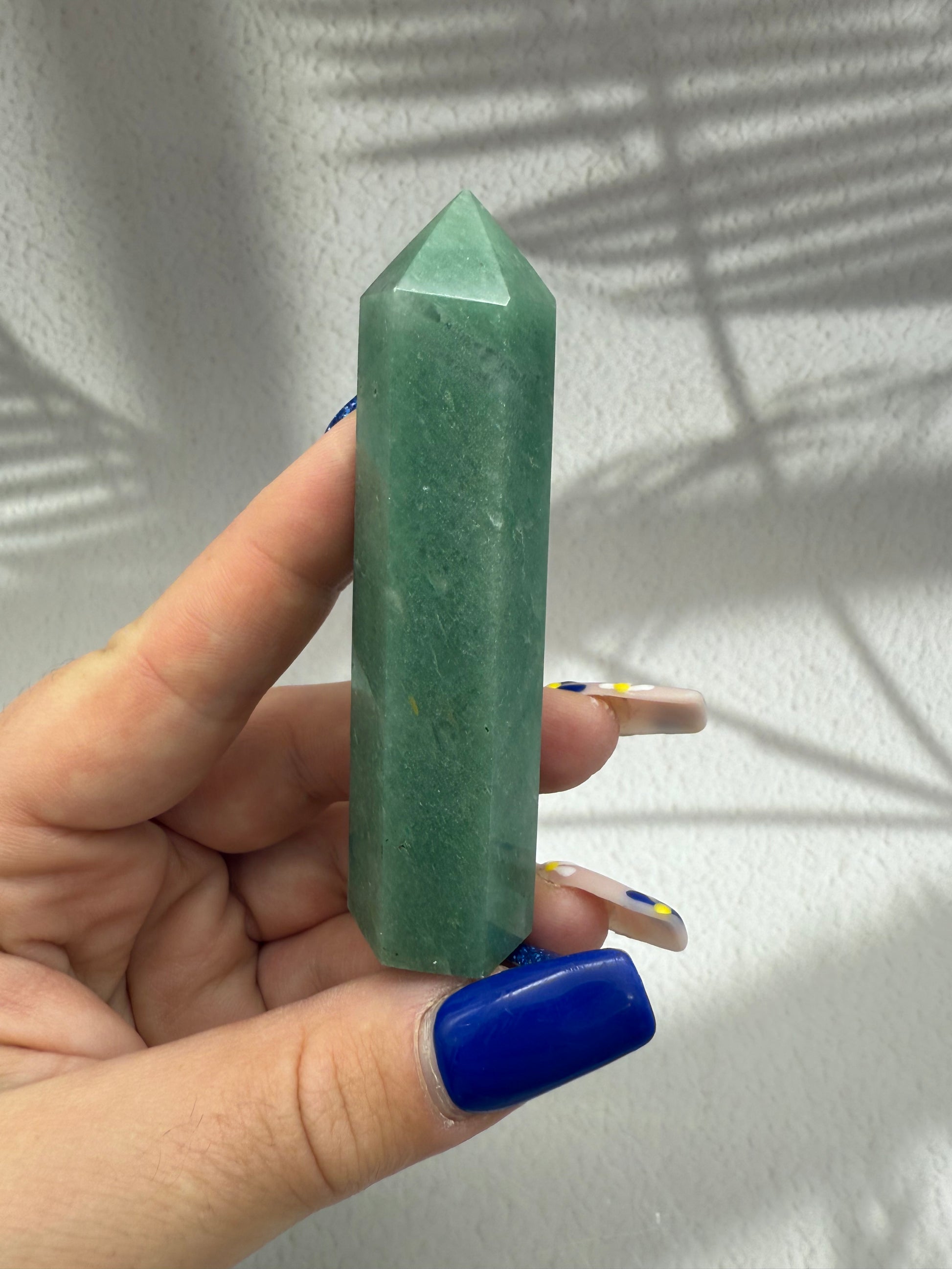 Diese wunderschönen Aventurin-Türme vereinen die natürliche Schönheit des Steins mit einer klaren, aufrechten Form. Die sanften Grüntöne schimmern im Licht und machen jeden Turm zu einem faszinierenden Blickfang. Durch die Turmform entfaltet der Aventurin seine energetische Wirkung besonders intensiv und wird zu einem dekorativen Highlight für Wohnräume, Praxisbereiche oder Meditationsplätze.