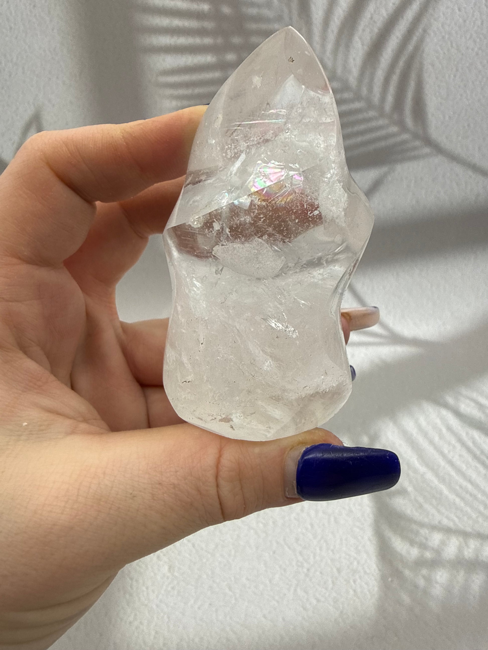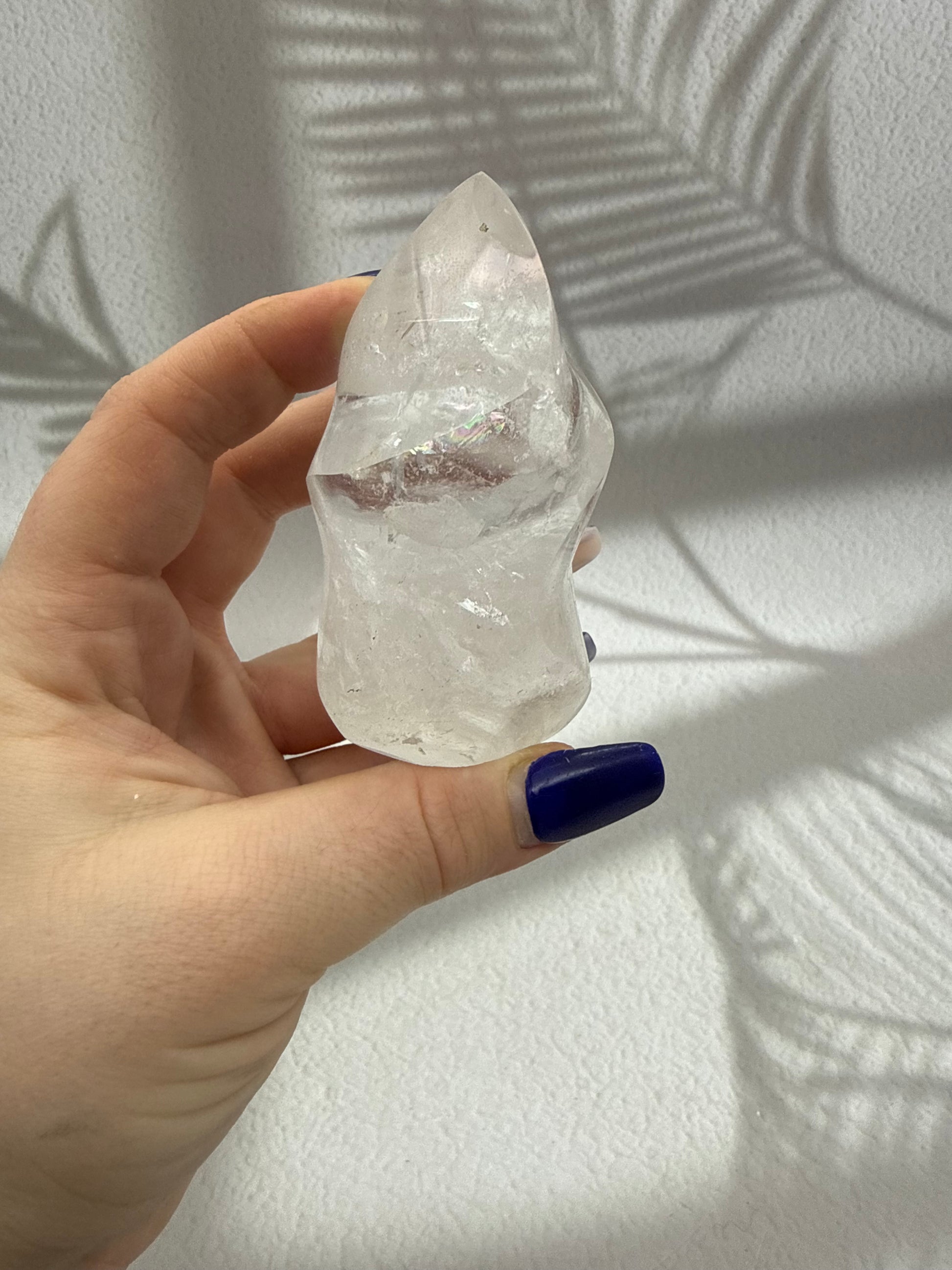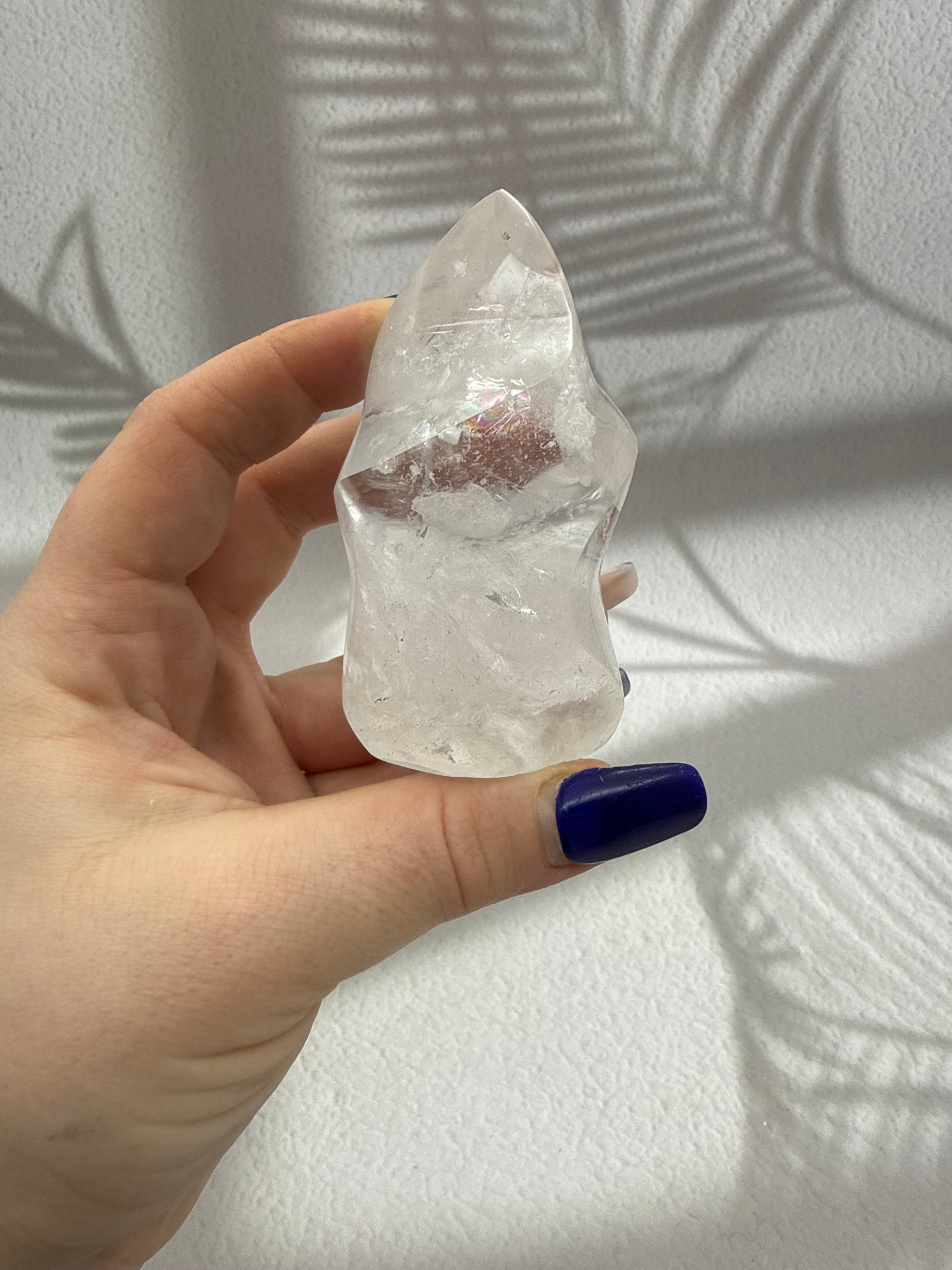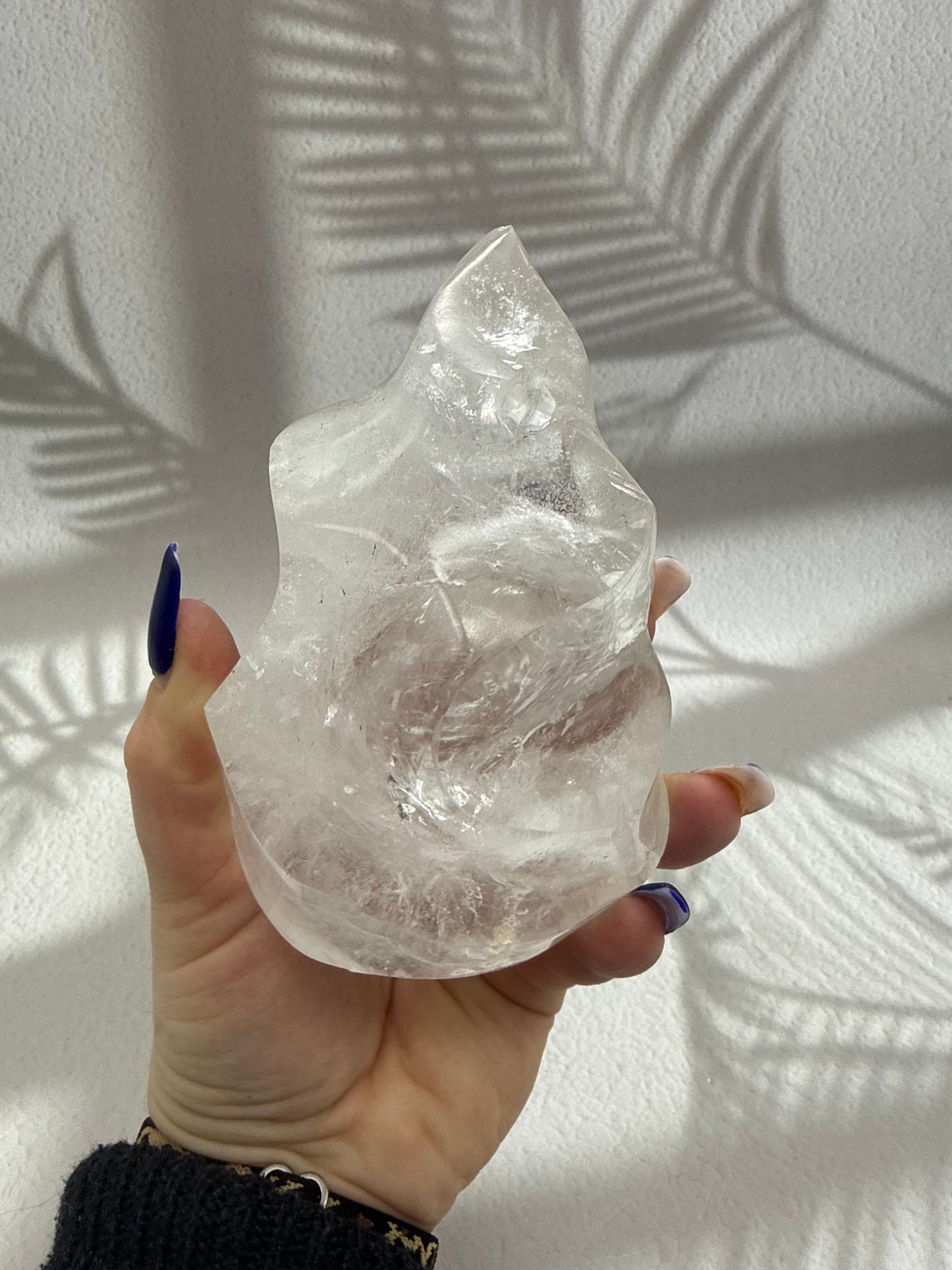 Diese kraftvollen Bergkristall-Flammen faszinieren durch ihre klare bis leicht milchige Transparenz und die lebendige Lichtbrechung im Inneren des Steins. Feine natürliche Strukturen reflektieren das Licht auf besondere Weise und verleihen jeder Flamme eine reine, lichtvolle Ausstrahlung. Die elegante Flammenform unterstreicht die aufsteigende Energie des Bergkristalls und macht jedes Stück zu einem ausdrucksstarken Blickfang für Wohnraum, Meditationsplatz oder Arbeitsbereich.