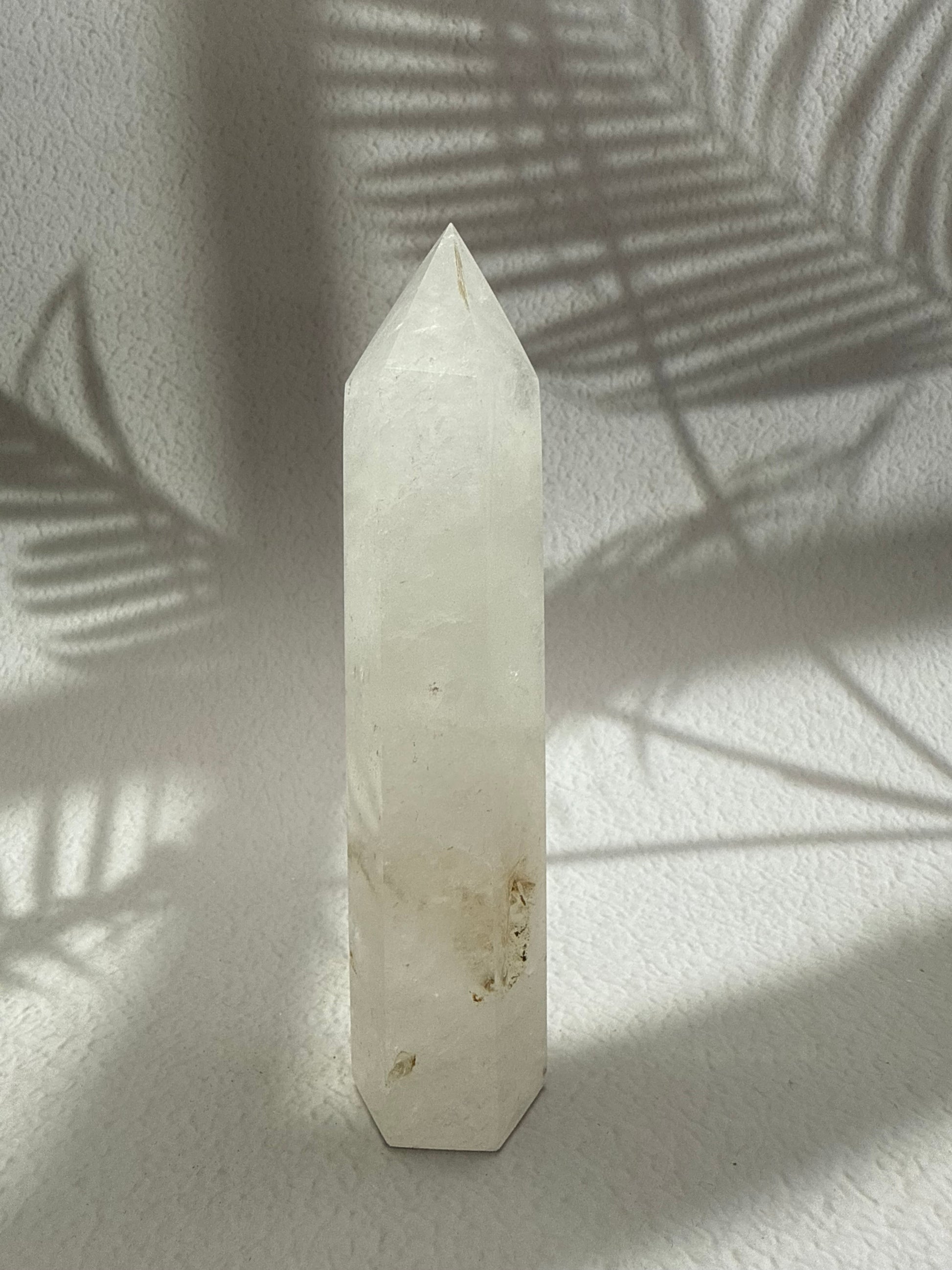 Bergkristall gilt als Meisterstein der Klarheit und Energie, während Eisen- und Hämatiteinschlüsse zusätzliche Stabilität, Erdung und innere Stärke schenken. Diese seltene Kombination vereint Reinheit mit Schutz und macht den Turm zu einem kraftvollen Begleiter für Meditation, energetische Arbeit oder als einzigartiges Dekorstück.