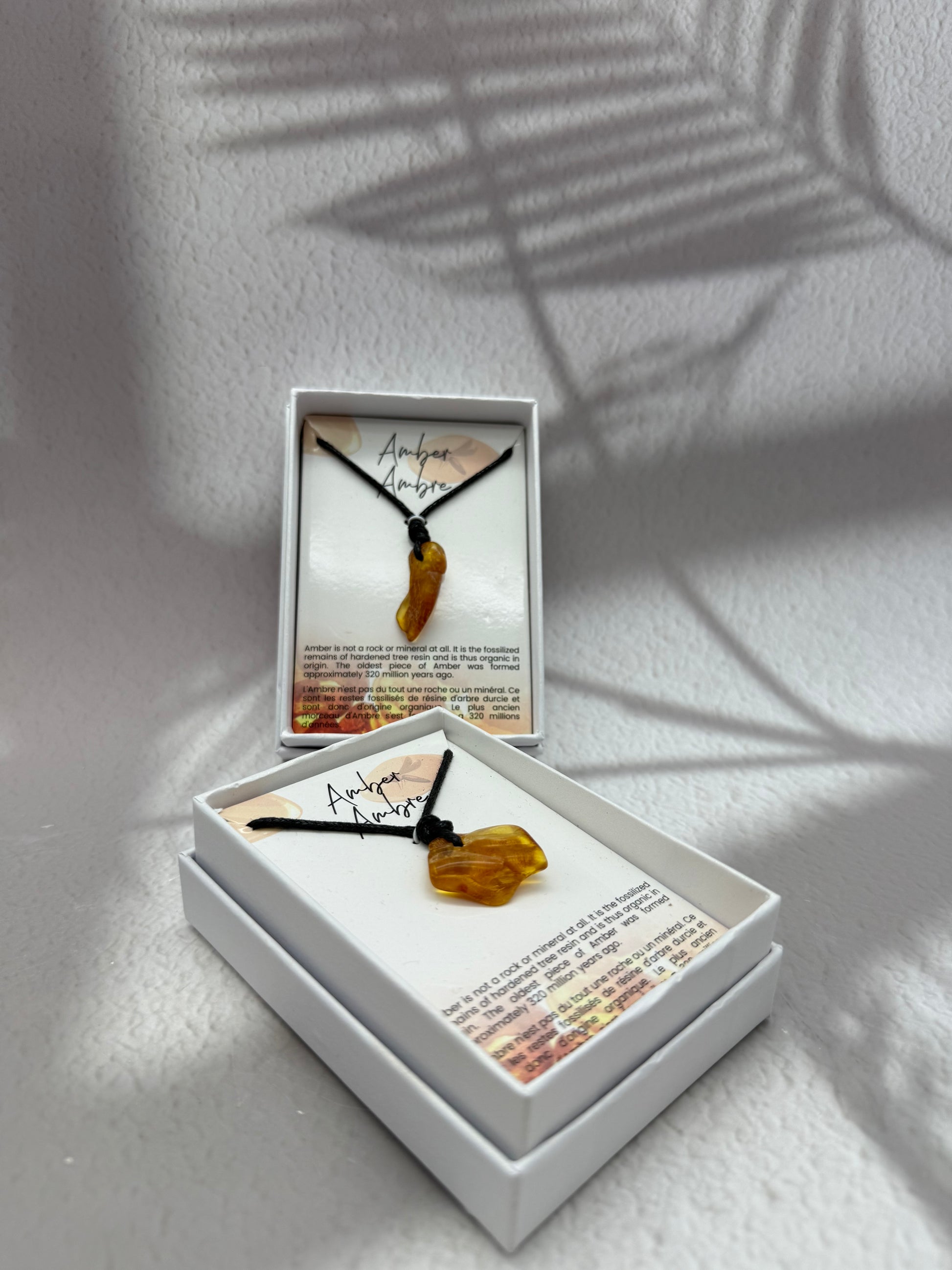 Bernstein-Anhänger auf Stoffbändchen – Natürlich & Unikat