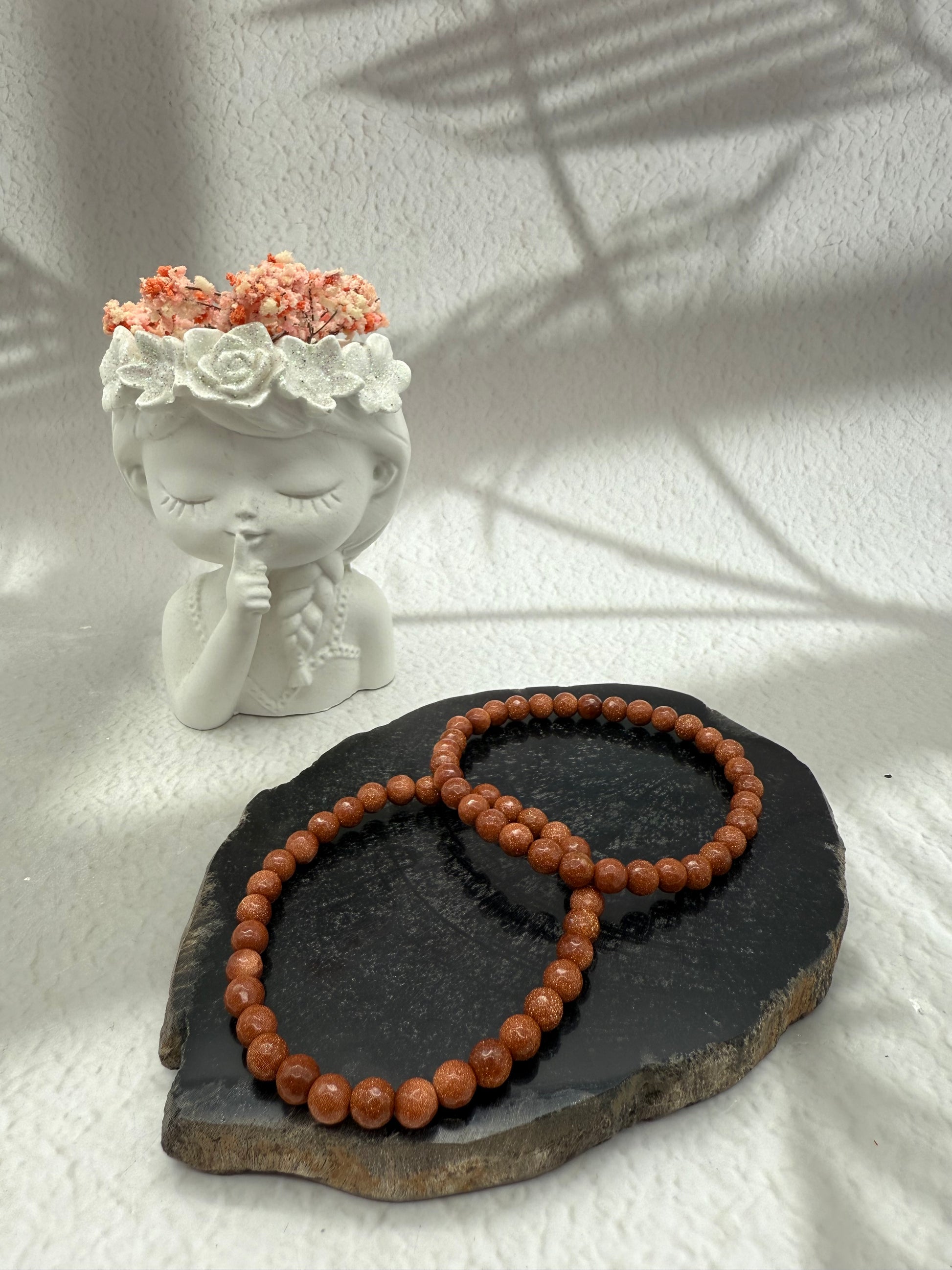 Dieses Armband vereint die energetische Wirkung des Goldflusses mit stilvollem Design: facettierte 6 mm Perlen schimmern elegant mit goldenen Glitzereffekten und setzen funkelnde Akzente. Auf einem elastischen Gummi aufgezogen, passt es sich flexibel jedem Handgelenk an und lässt sich bequem an- und ablegen.