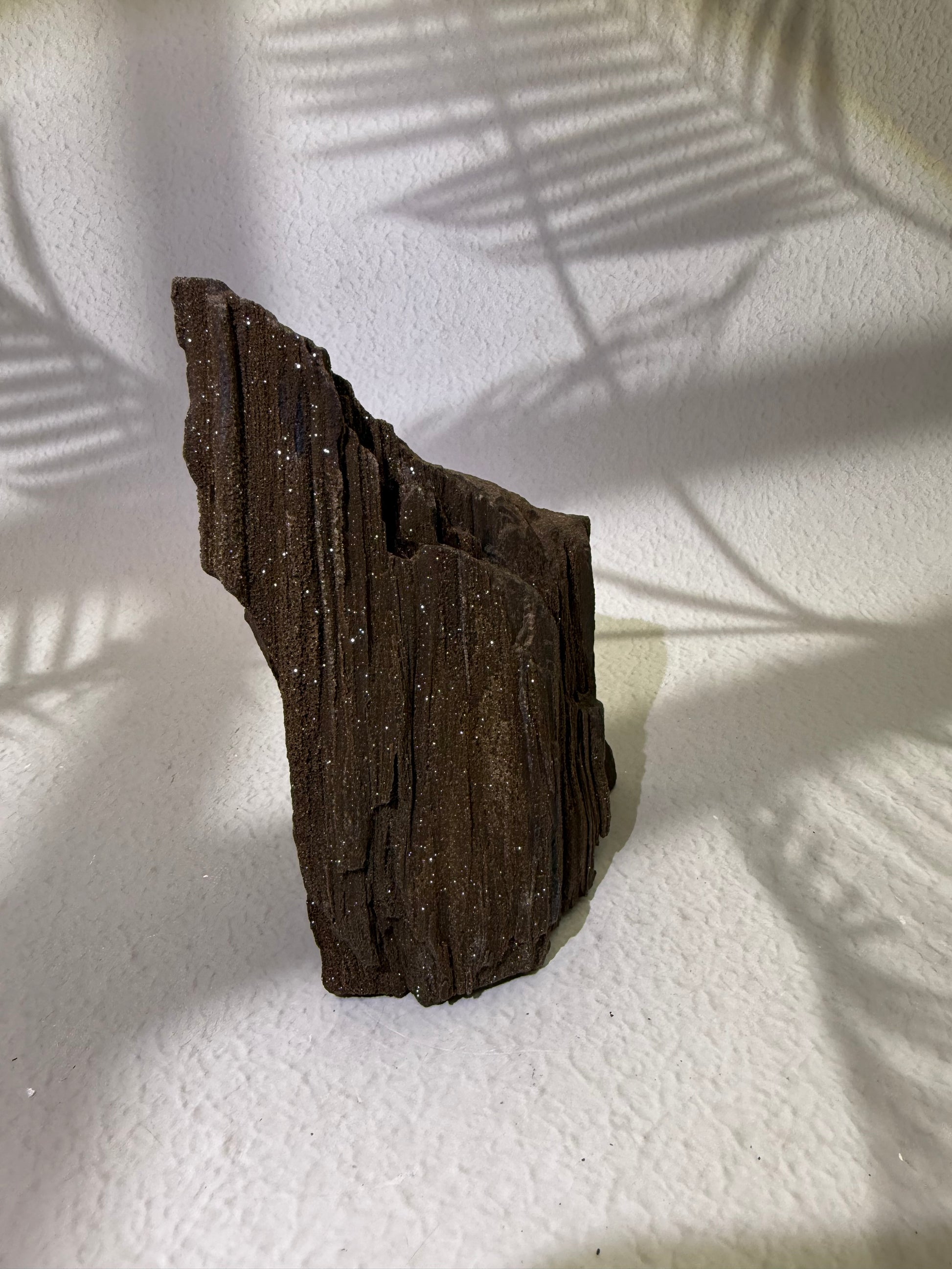 Dieses außergewöhnliche versteinertes Holz, liebevoll „Feenholz“ genannt, zieht mit seinem funkelnden Schimmer und der natürlichen Maserung sofort alle Blicke auf sich. Die einzigartige Struktur und der glitzernde Effekt machen jedes Stück zu einem faszinierenden Unikat – perfekt als dekorativer Blickfang für Wohnraum, Schreibtisch oder als besonderes Sammlerstück.
