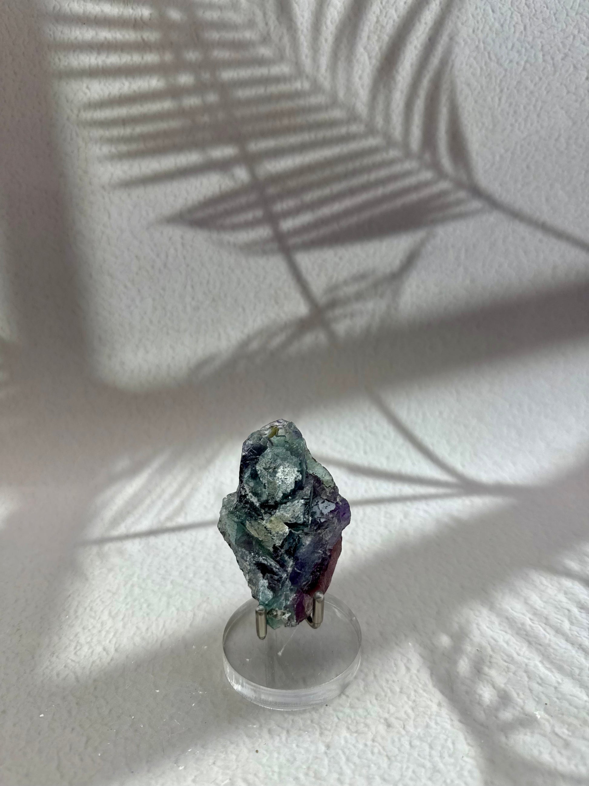 Dieses naturbelassene Fluorit-Rohstück zeigt eine wunderschöne Kombination aus violetten und grünen Farbtönen. Die sanften Farbverläufe und die natürliche Kristallstruktur machen jedes Stück zu einem einzigartigen Naturstein. Durch seine besondere Farbgebung ist dieser Fluorit nicht nur ein dekorativer Blickfang, sondern auch ein beliebter Begleiter für energetische Anwendungen.