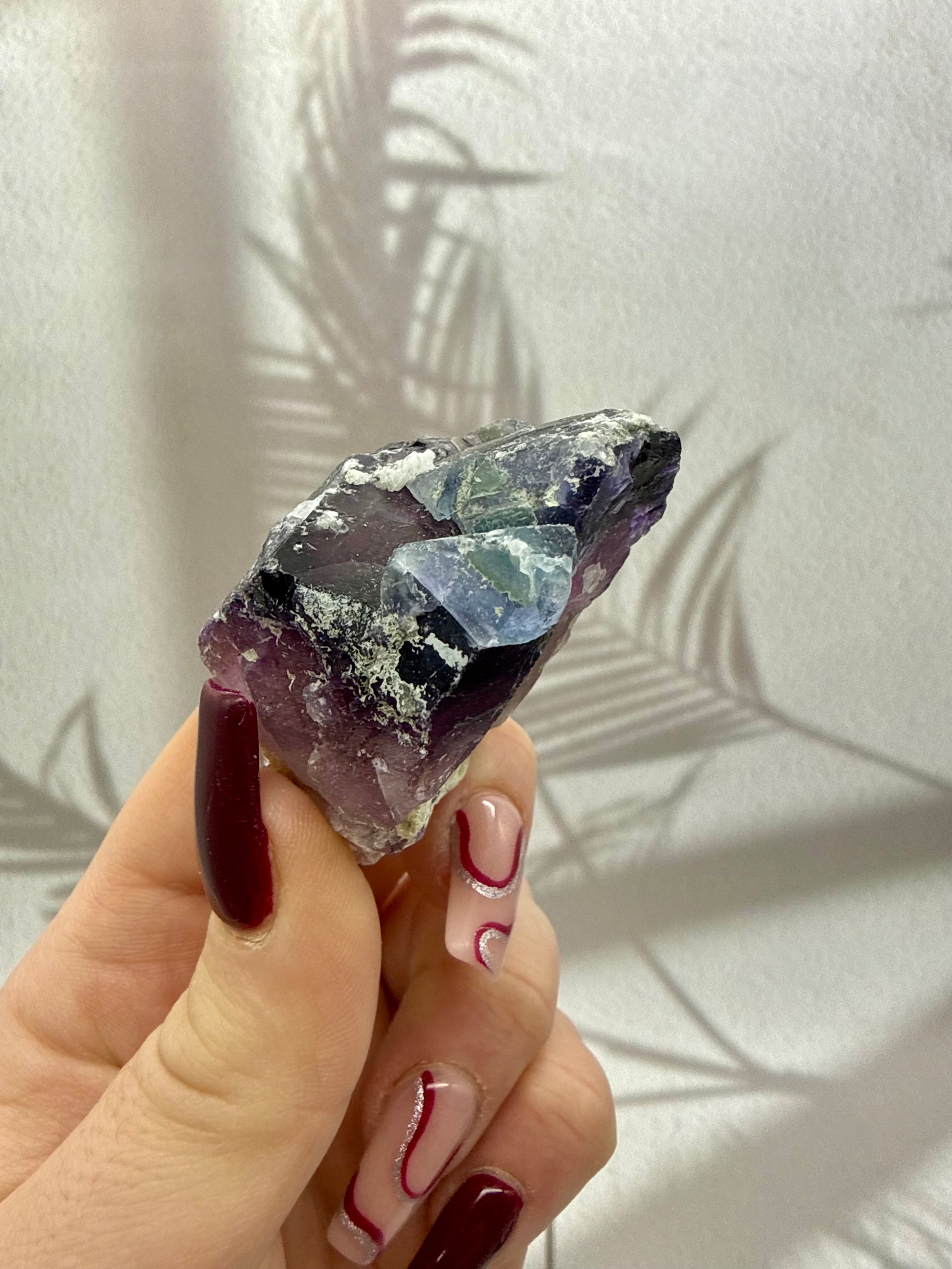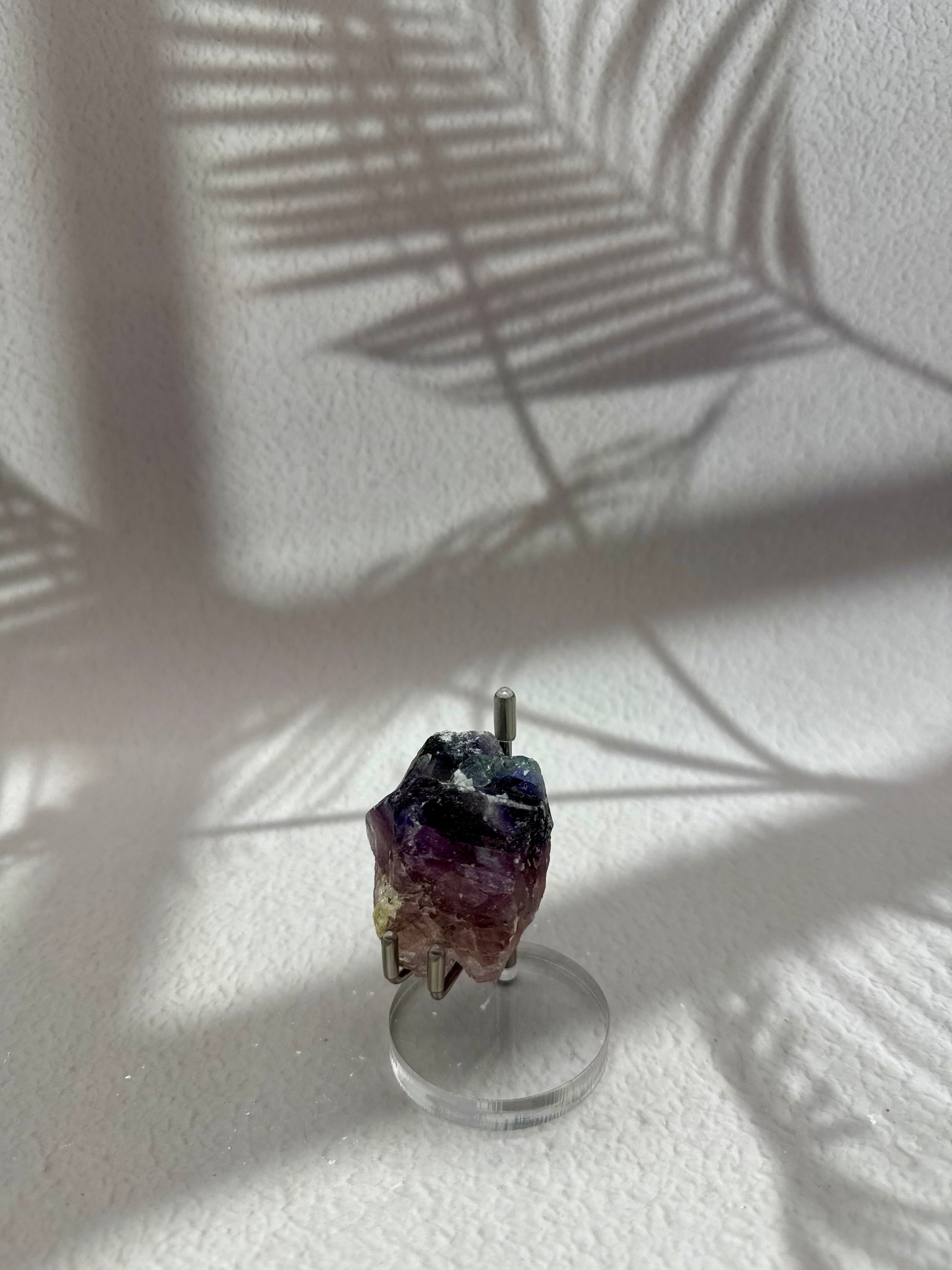 Dieses naturbelassene Fluorit-Rohstück zeigt eine wunderschöne Kombination aus violetten und grünen Farbtönen. Die sanften Farbverläufe und die natürliche Kristallstruktur machen jedes Stück zu einem einzigartigen Naturstein. Durch seine besondere Farbgebung ist dieser Fluorit nicht nur ein dekorativer Blickfang, sondern auch ein beliebter Begleiter für energetische Anwendungen.