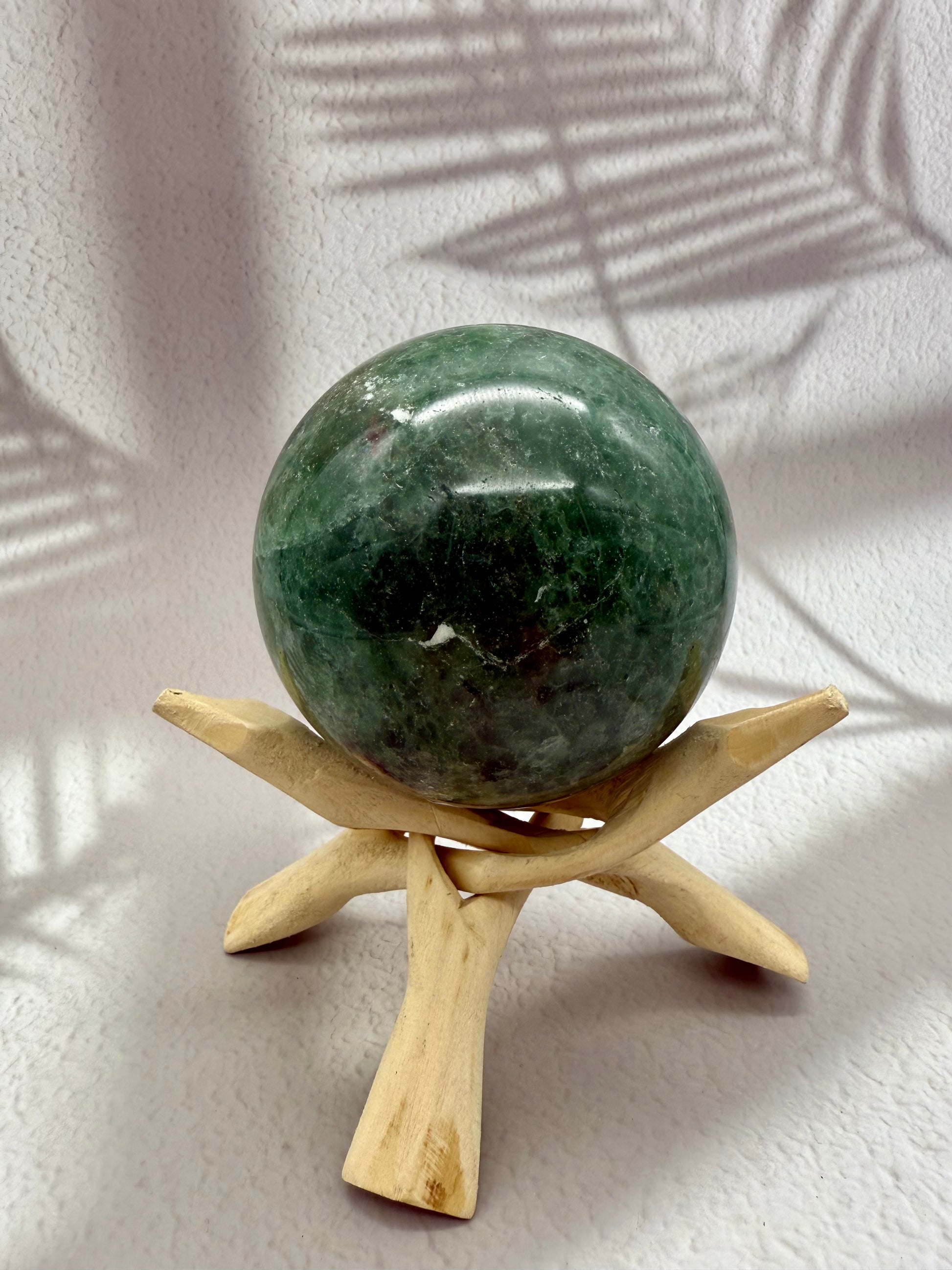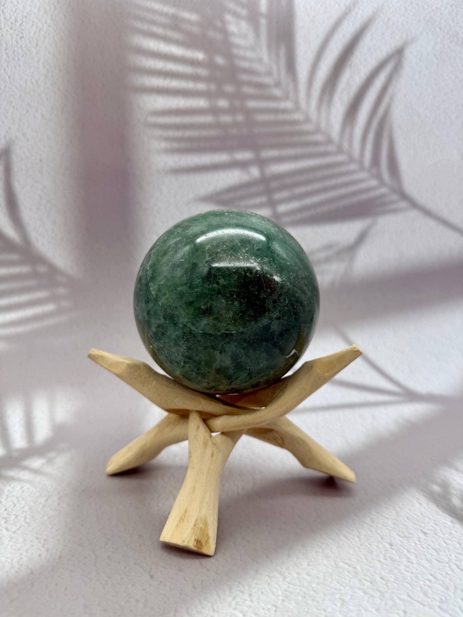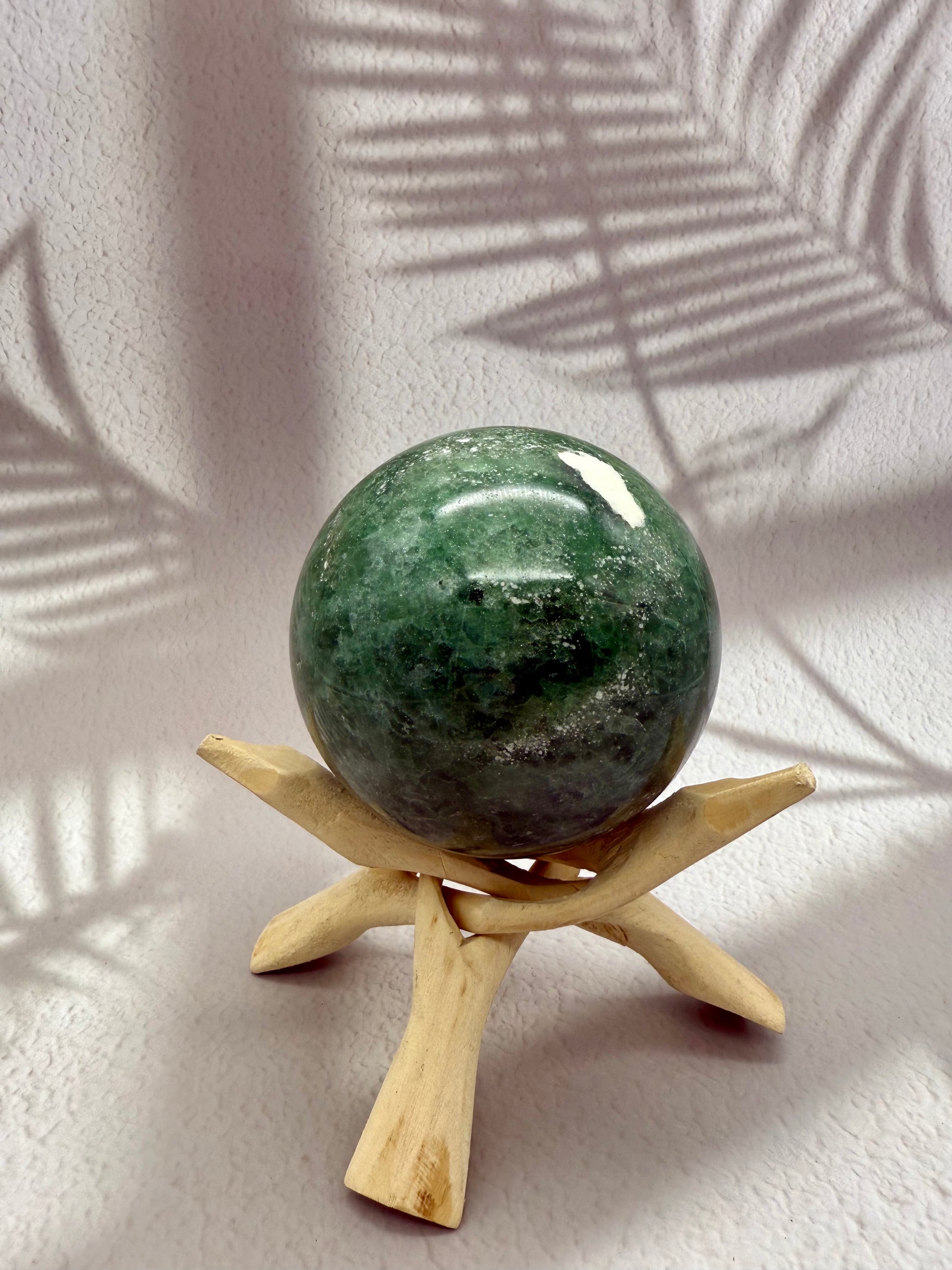 Fuchsit gilt als Stein der Heilung, Regeneration und Herzensenergie. Er soll dabei helfen, emotionale Blockaden zu lösen, innere Balance zu stärken und das Herz für Mitgefühl und Selbstliebe zu öffnen. In Kugelform verstärkt sich diese sanfte Energie und verbreitet harmonische Schwingungen – ideal für Wohnräume, Schlafzimmer oder Meditationsplätze.