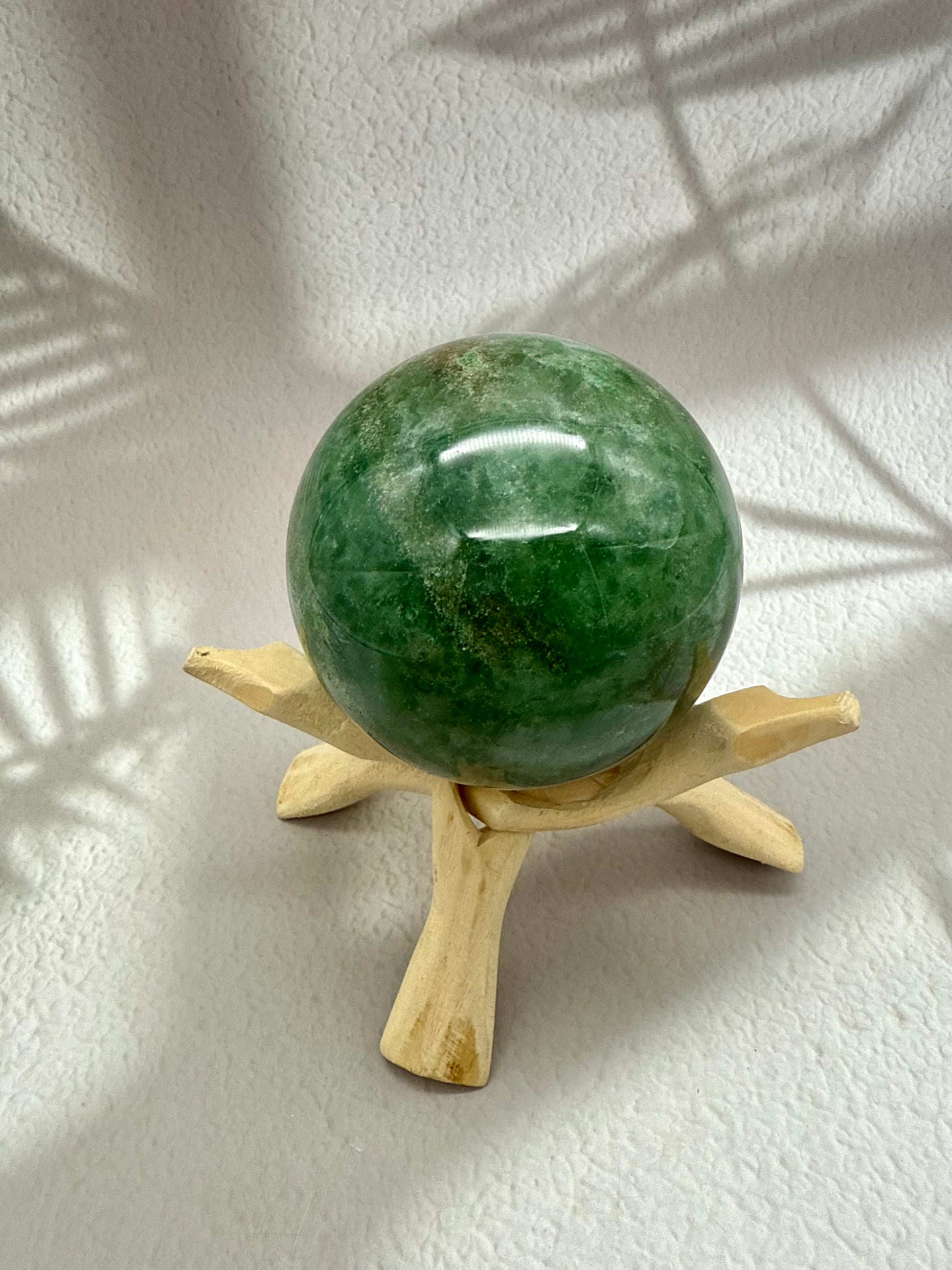 Fuchsit gilt als Stein der Heilung, Regeneration und Herzensenergie. Er soll dabei helfen, emotionale Blockaden zu lösen, innere Balance zu stärken und das Herz für Mitgefühl und Selbstliebe zu öffnen. In Kugelform verstärkt sich diese sanfte Energie und verbreitet harmonische Schwingungen – ideal für Wohnräume, Schlafzimmer oder Meditationsplätze.