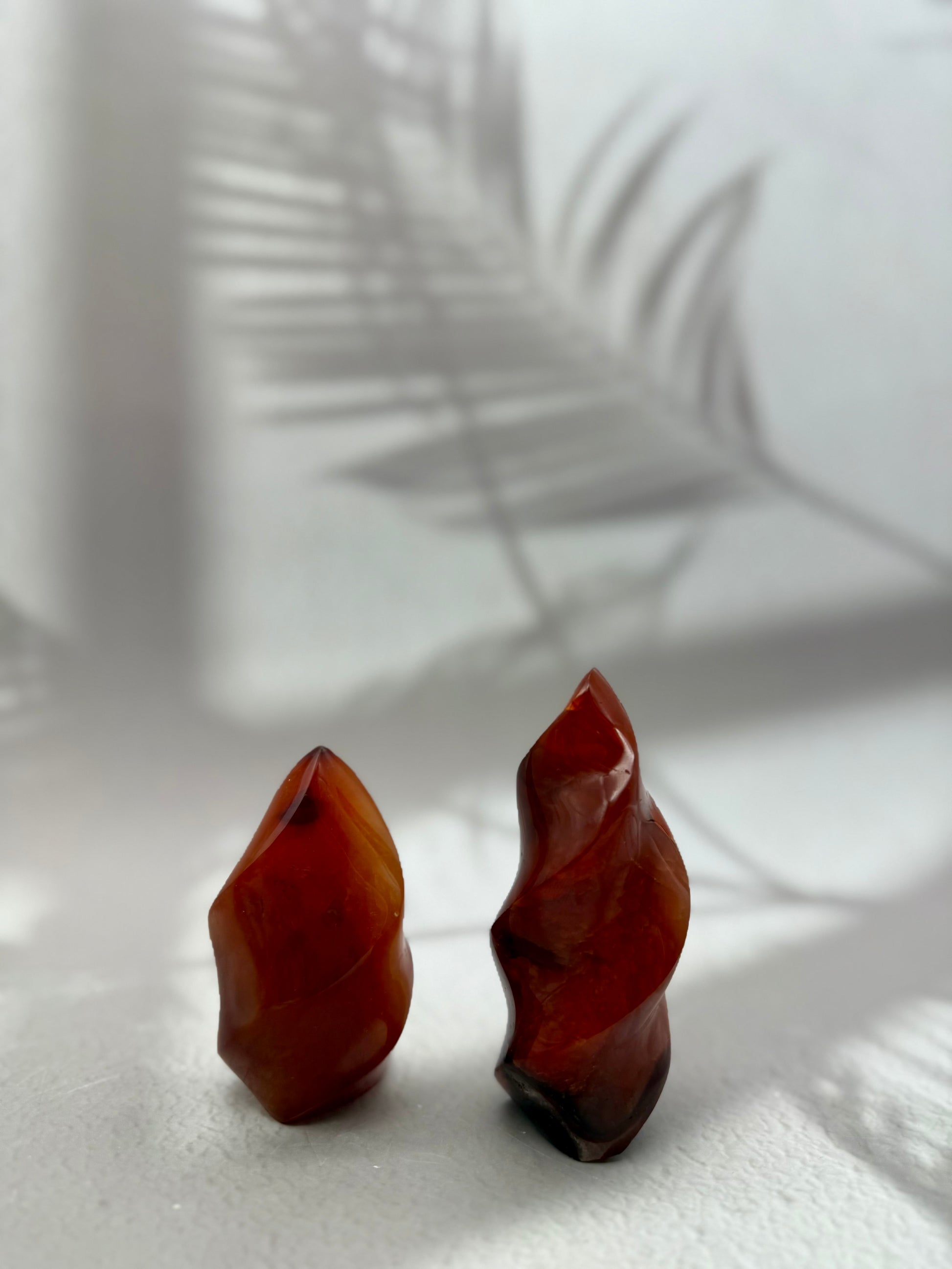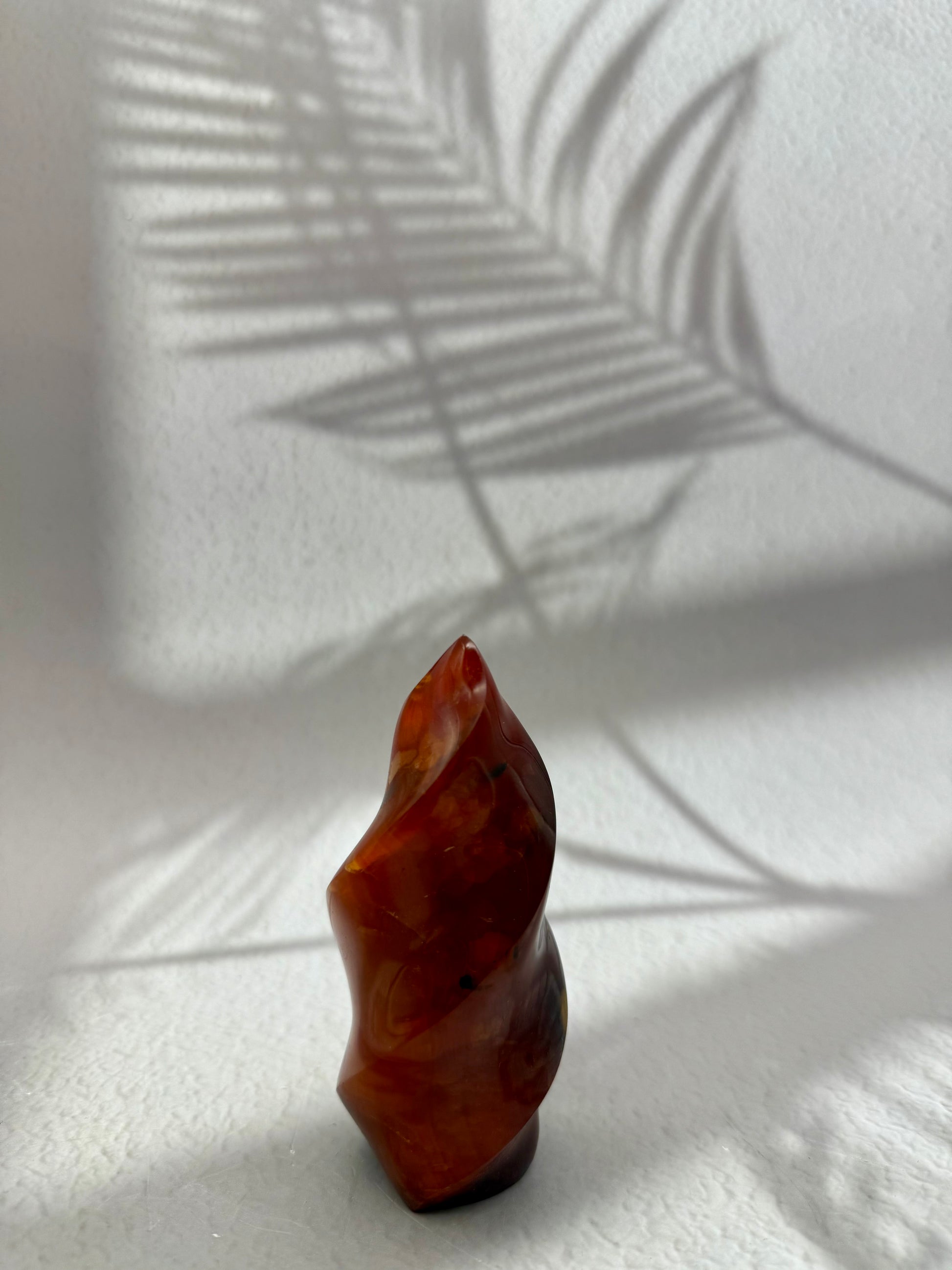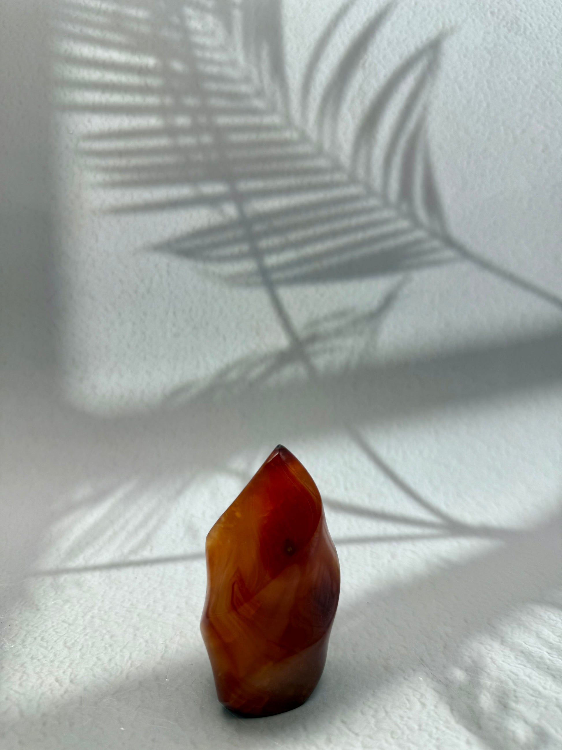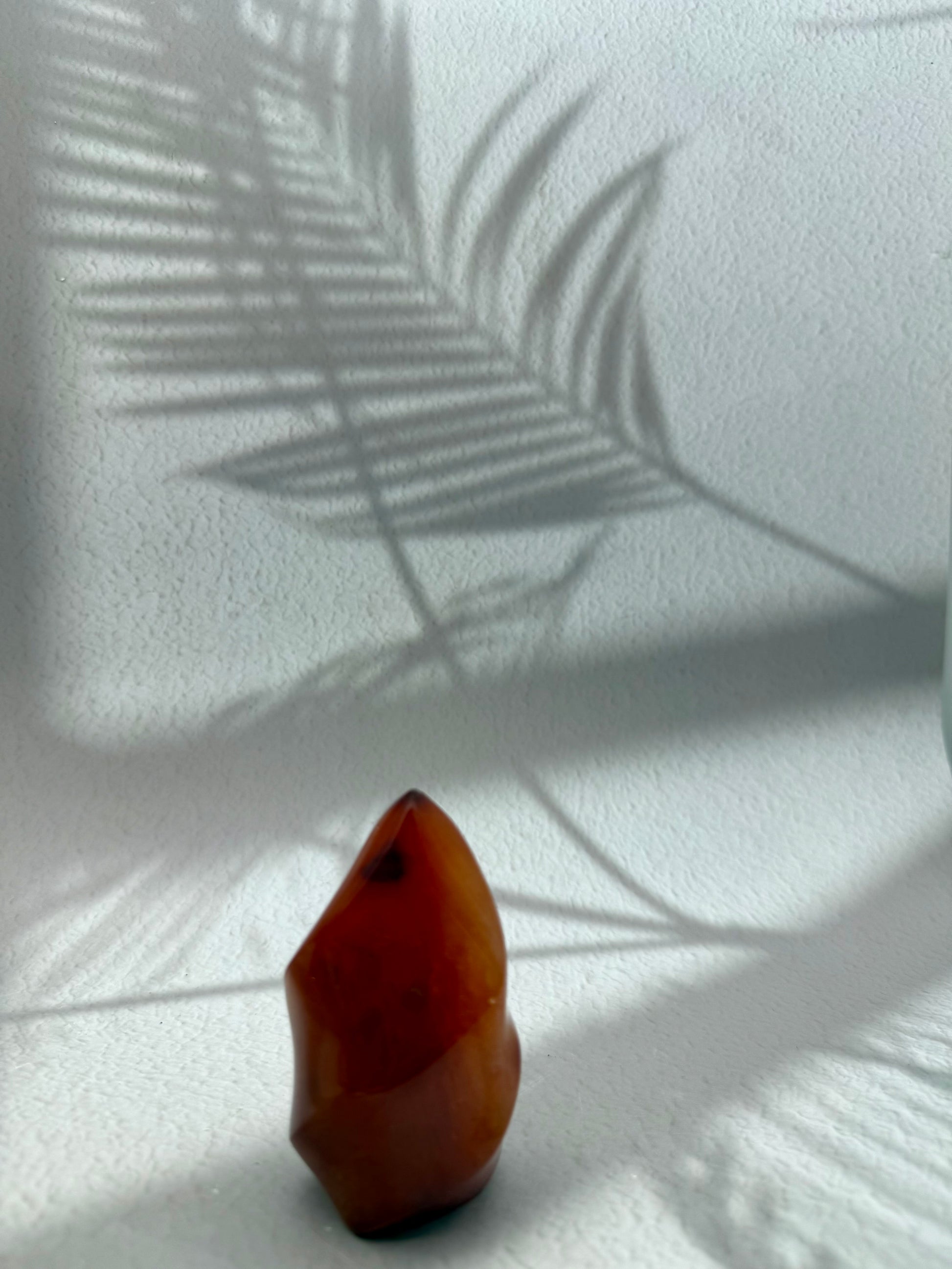 Karneol gilt als Stein der Lebenskraft, Motivation und Kreativität. In Flammenform symbolisiert er Energie, Antrieb und Freude – perfekt, um Räume mit Wärme, Vitalität und positiver Stimmung zu erfüllen.