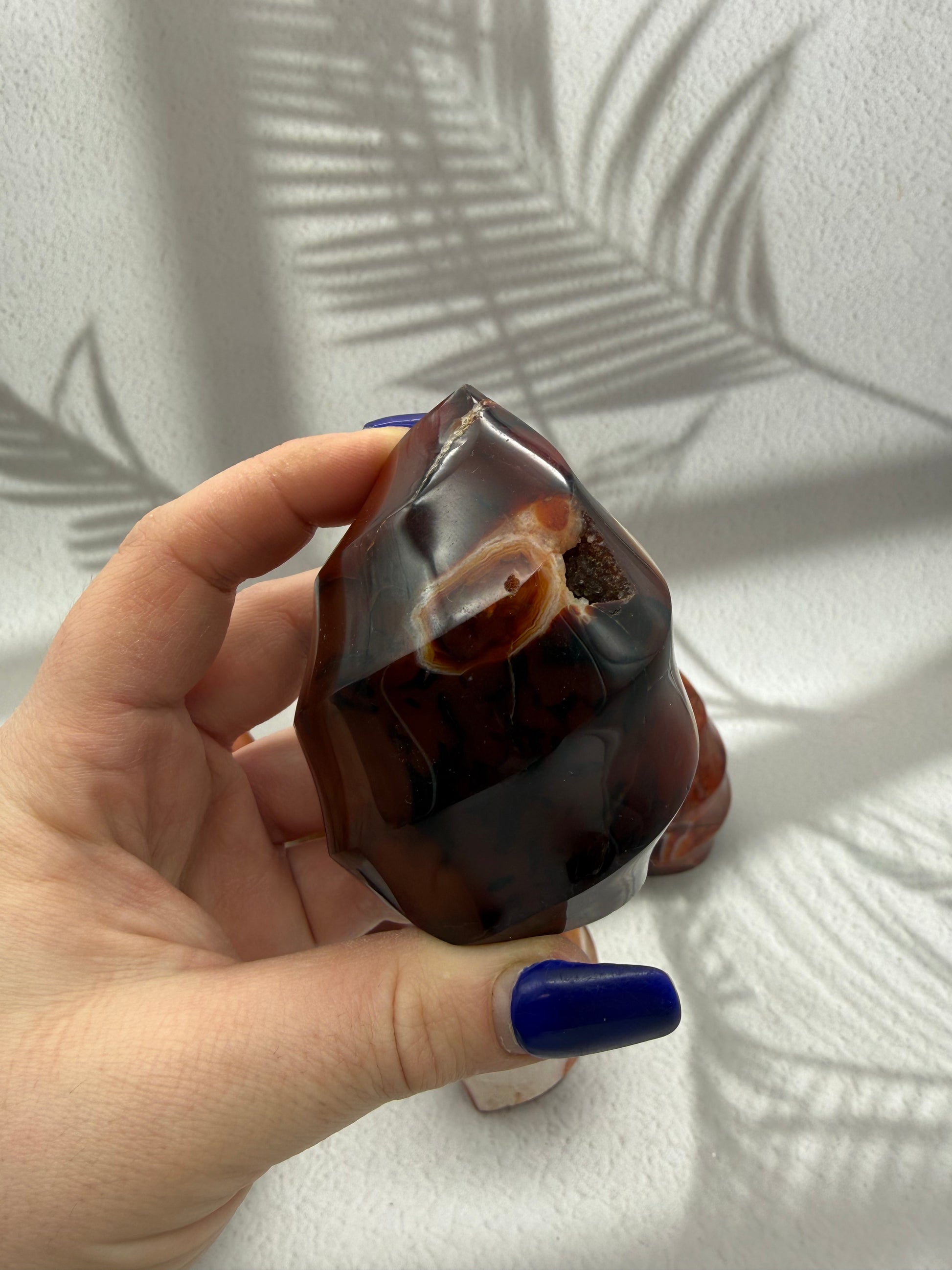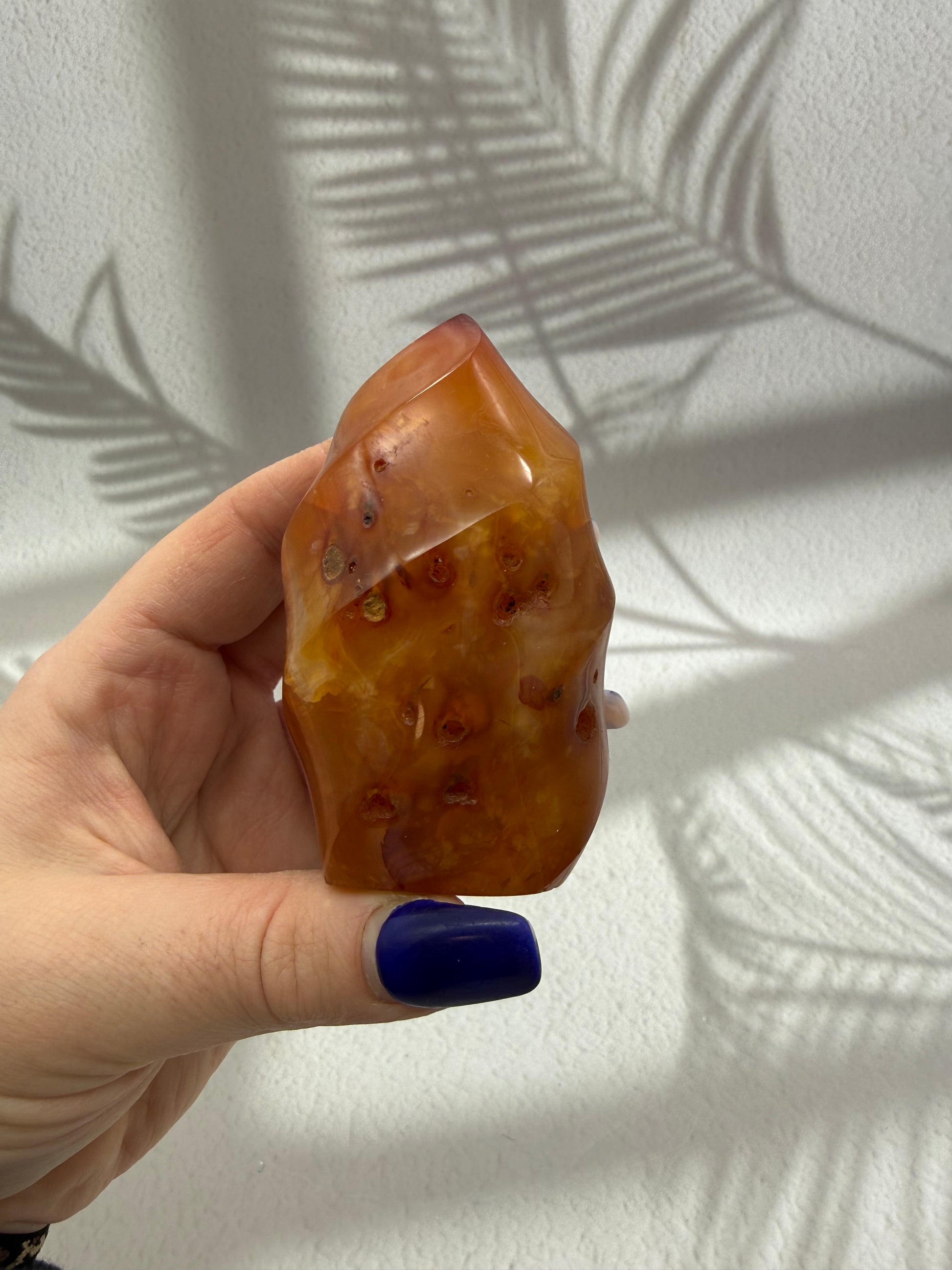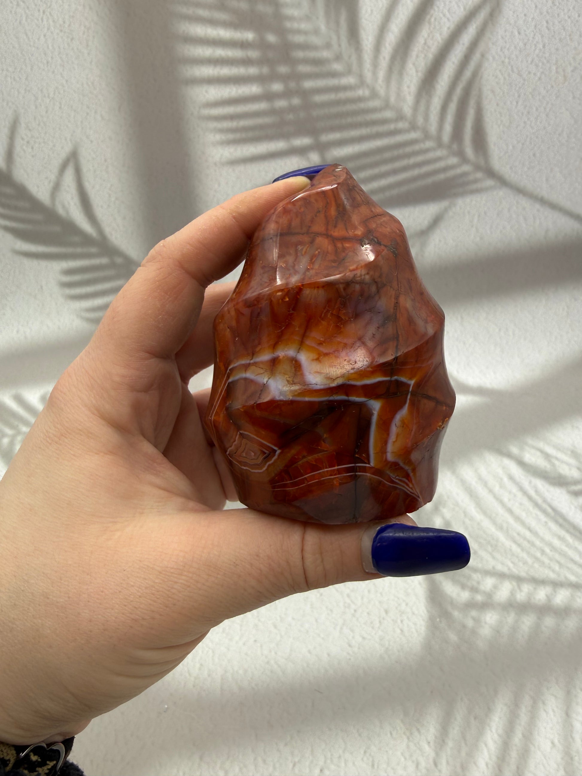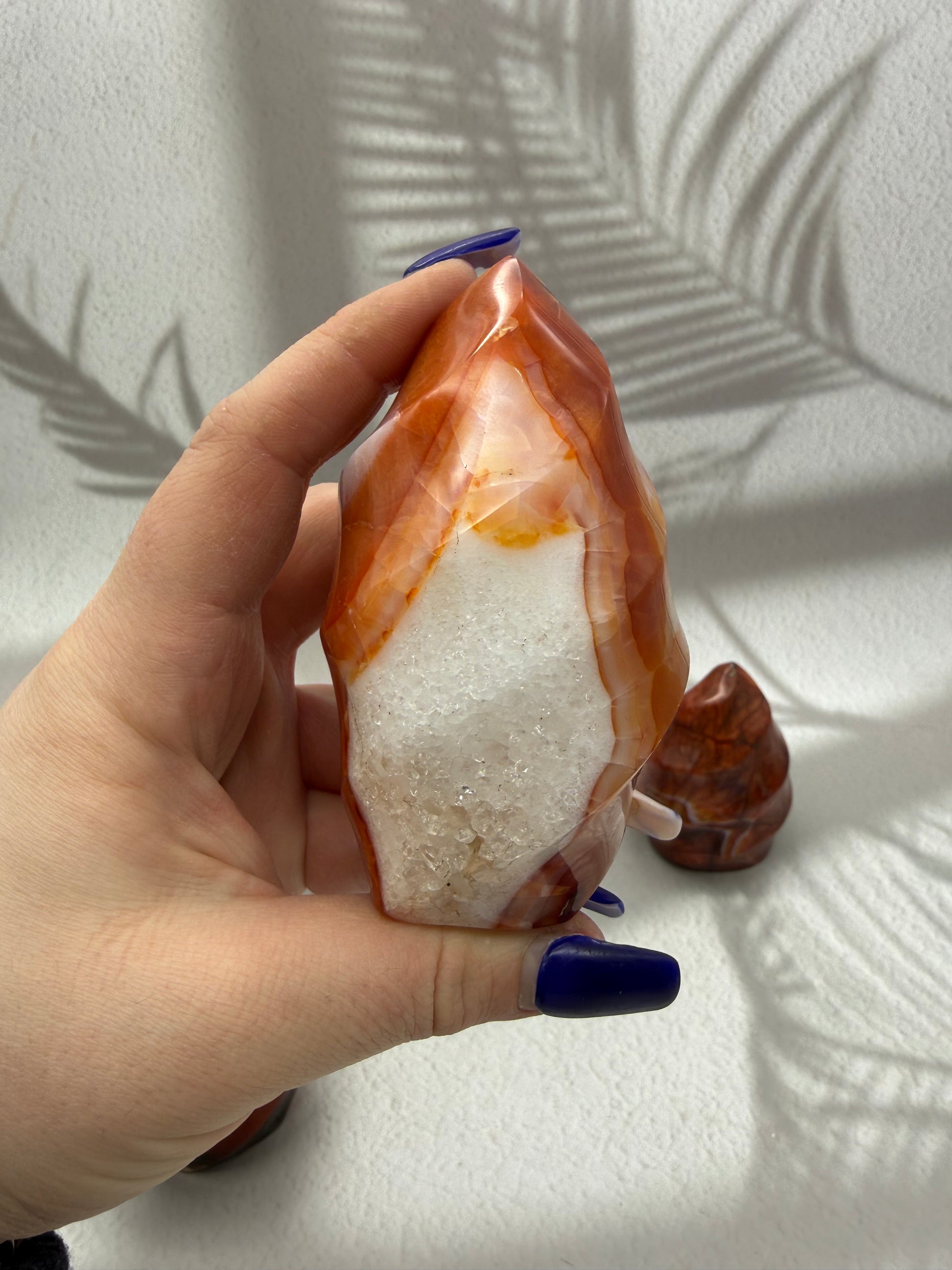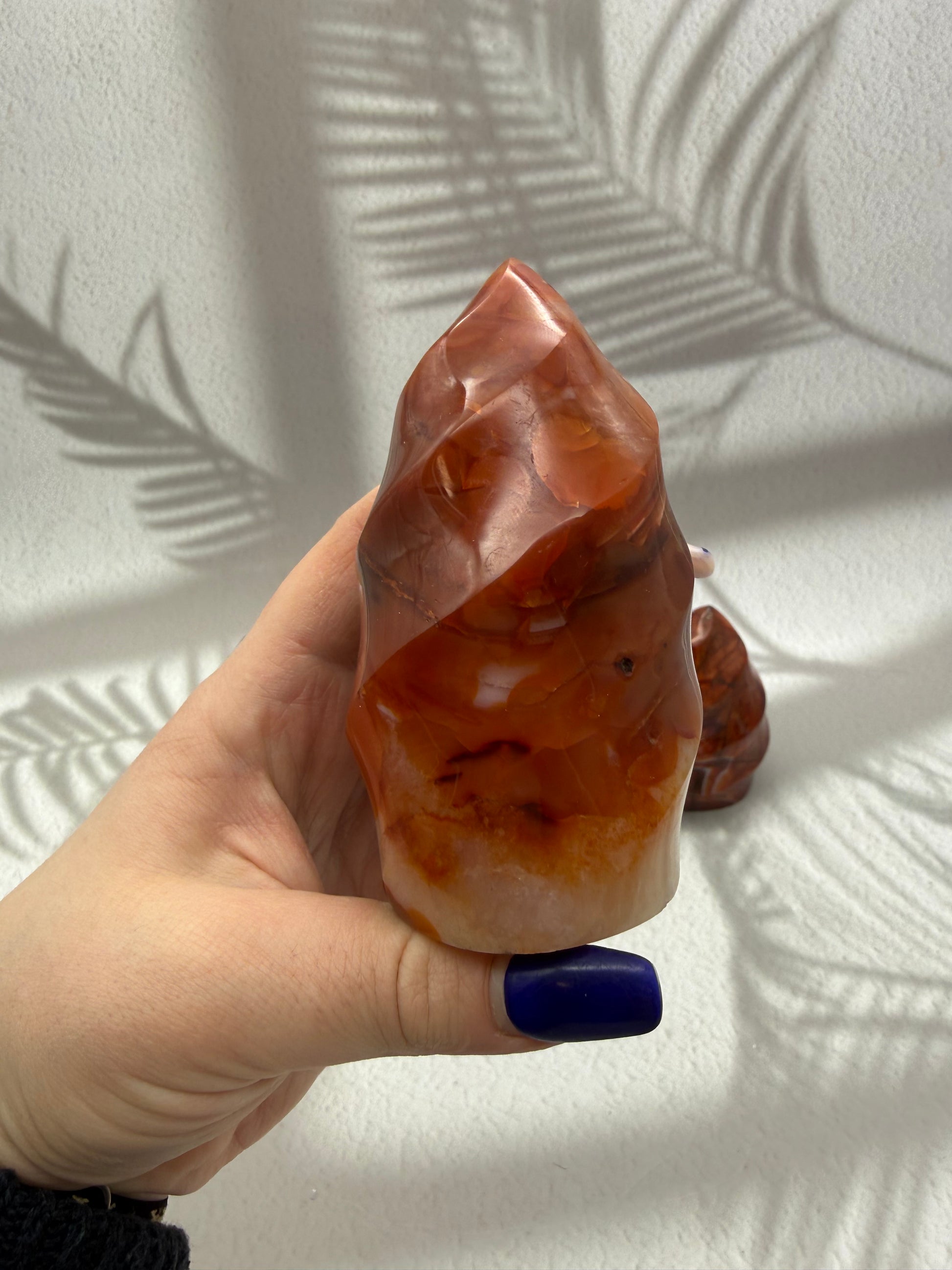 Karneol gilt als Stein der Vitalität, Motivation und Lebensfreude. In Flammenform symbolisiert er innere Stärke, Tatkraft und einen aktivierenden Energiefluss, der Mut fördert, Selbstvertrauen stärkt und neue Impulse schenkt – ideal für Phasen des Neubeginns oder zur täglichen energetischen Unterstützung.