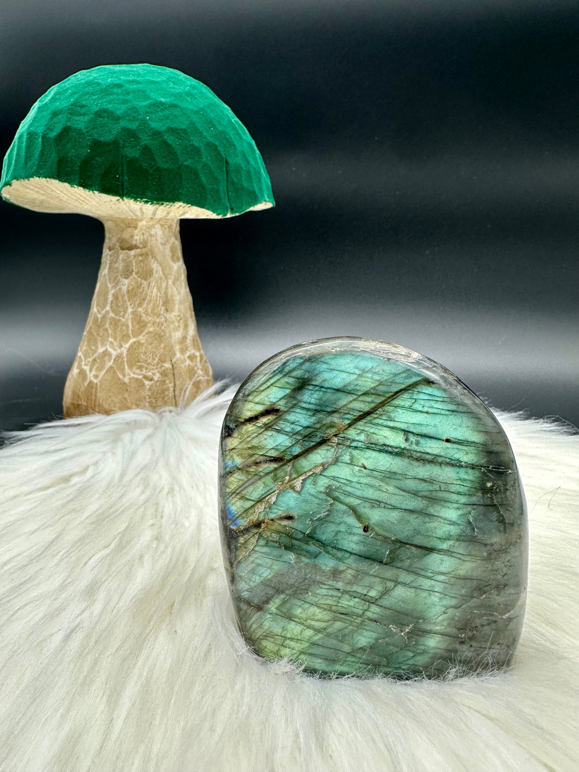 Labradorit gilt als Stein der Intuition, Transformation und energetischen Abgrenzung. Er schützt vor negativen Einflüssen, fördert die spirituelle Entwicklung und hilft, verborgene Potenziale ans Licht zu bringen. Besonders in Zeiten des Wandels wirkt er unterstützend und stärkend.