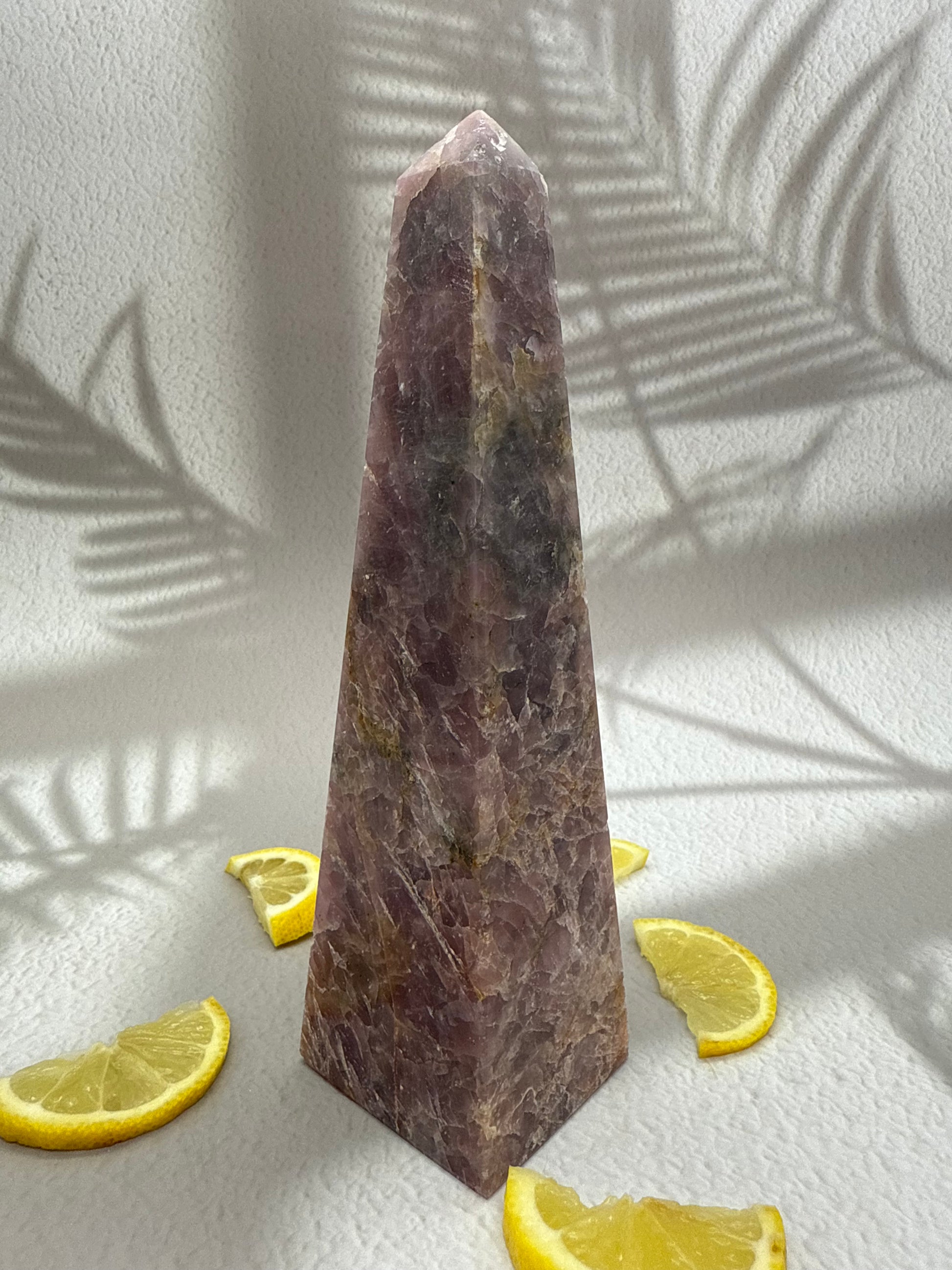 Hinweis: Jeder Lepidolith-Turm ist ein einzigartiges Naturprodukt – Farbe, Struktur und Form können variieren und machen jedes Stück zu einem unverwechselbaren Unikat.