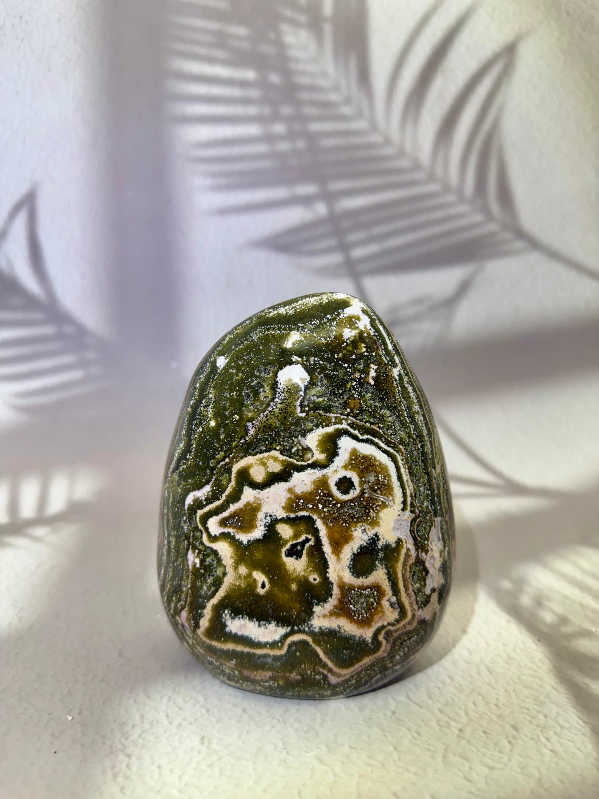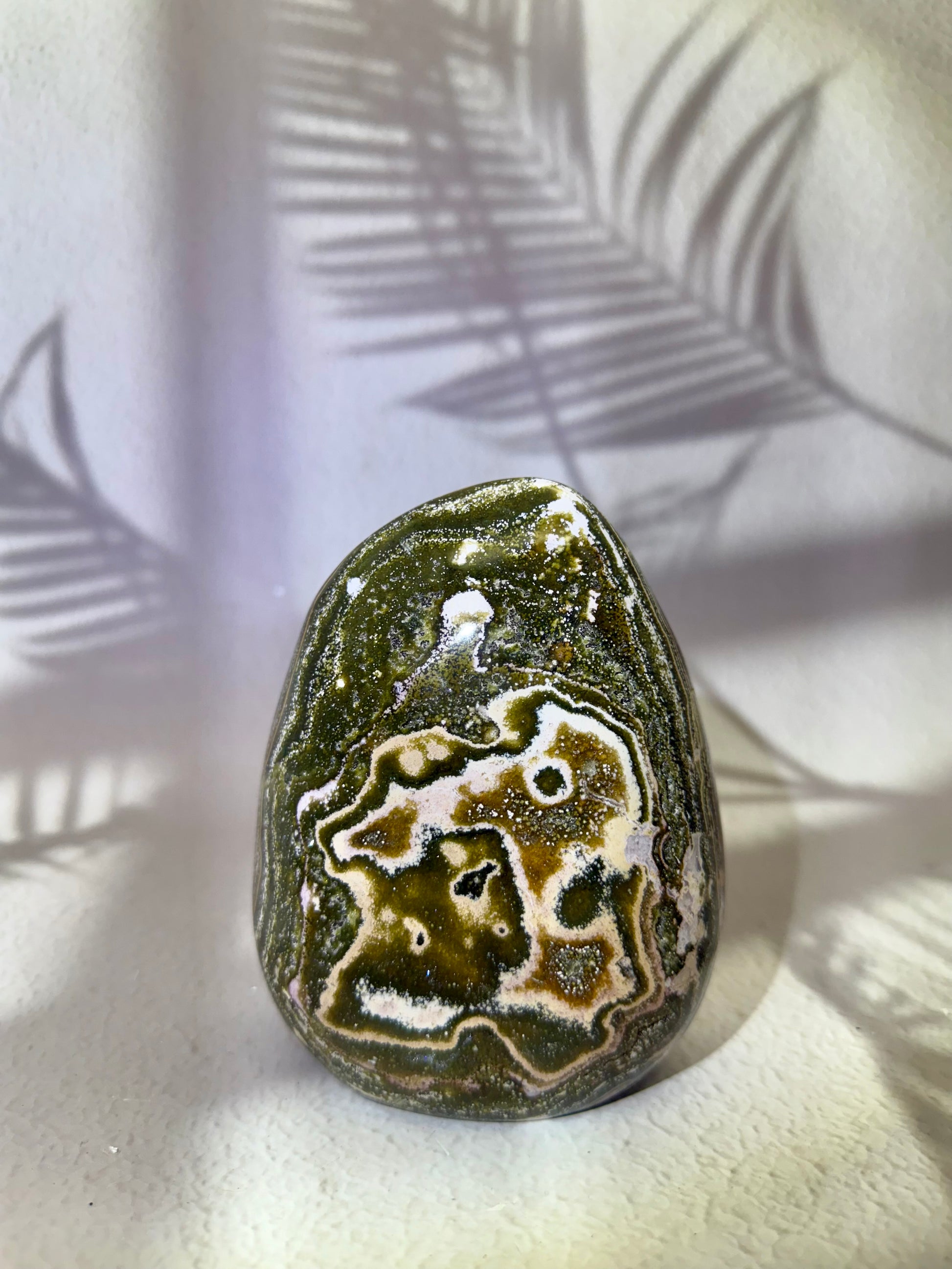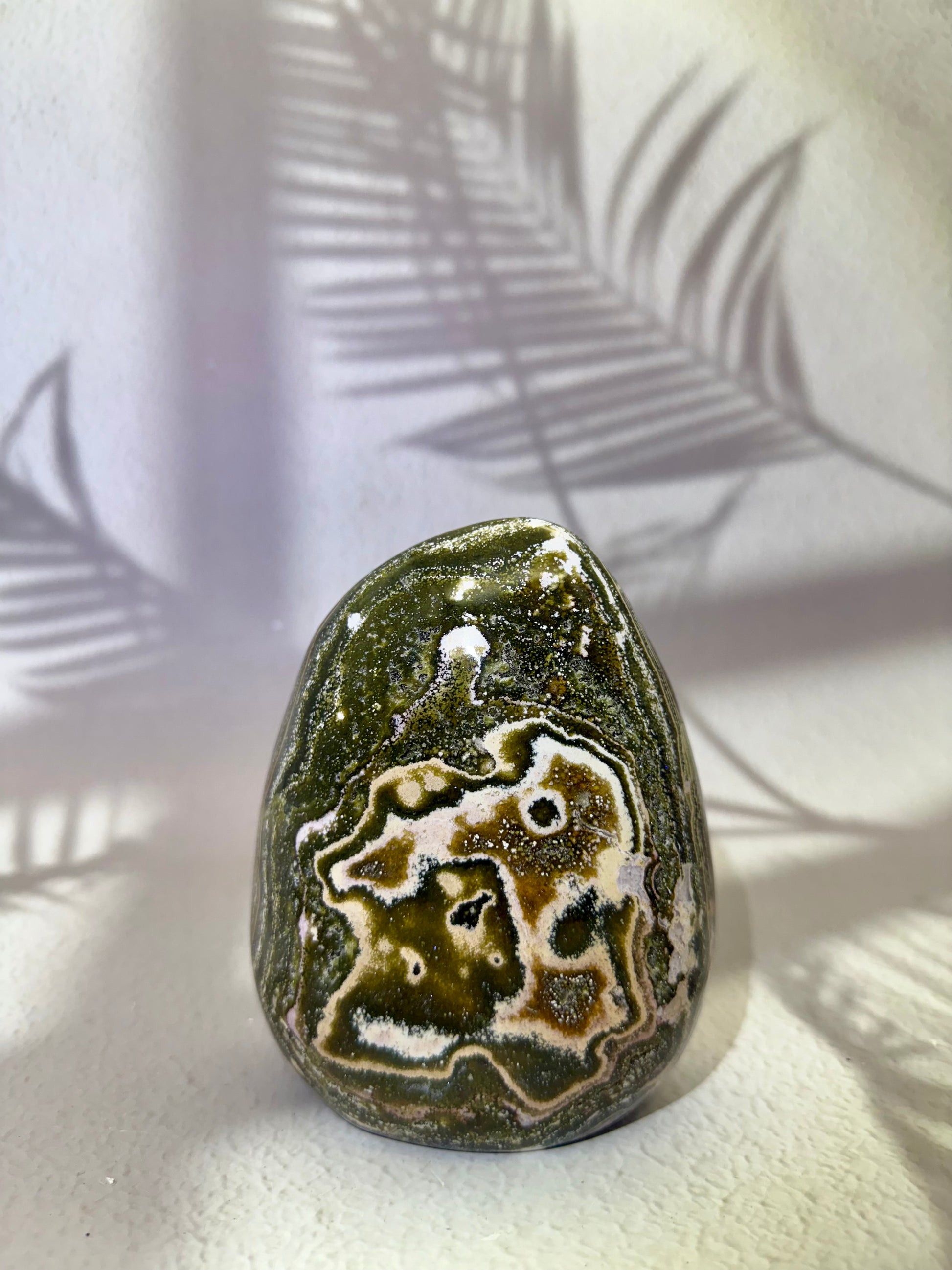 Ocean Jaspis gilt als Stein der Erdung, Ruhe und Harmonie. In dieser Freiform mit funkelnder Druse entfaltet er seine positive Energie besonders wirkungsvoll – ideal für Wohnräume, Arbeitsplätze, Meditationsbereiche oder als bezauberndes Geschenk.