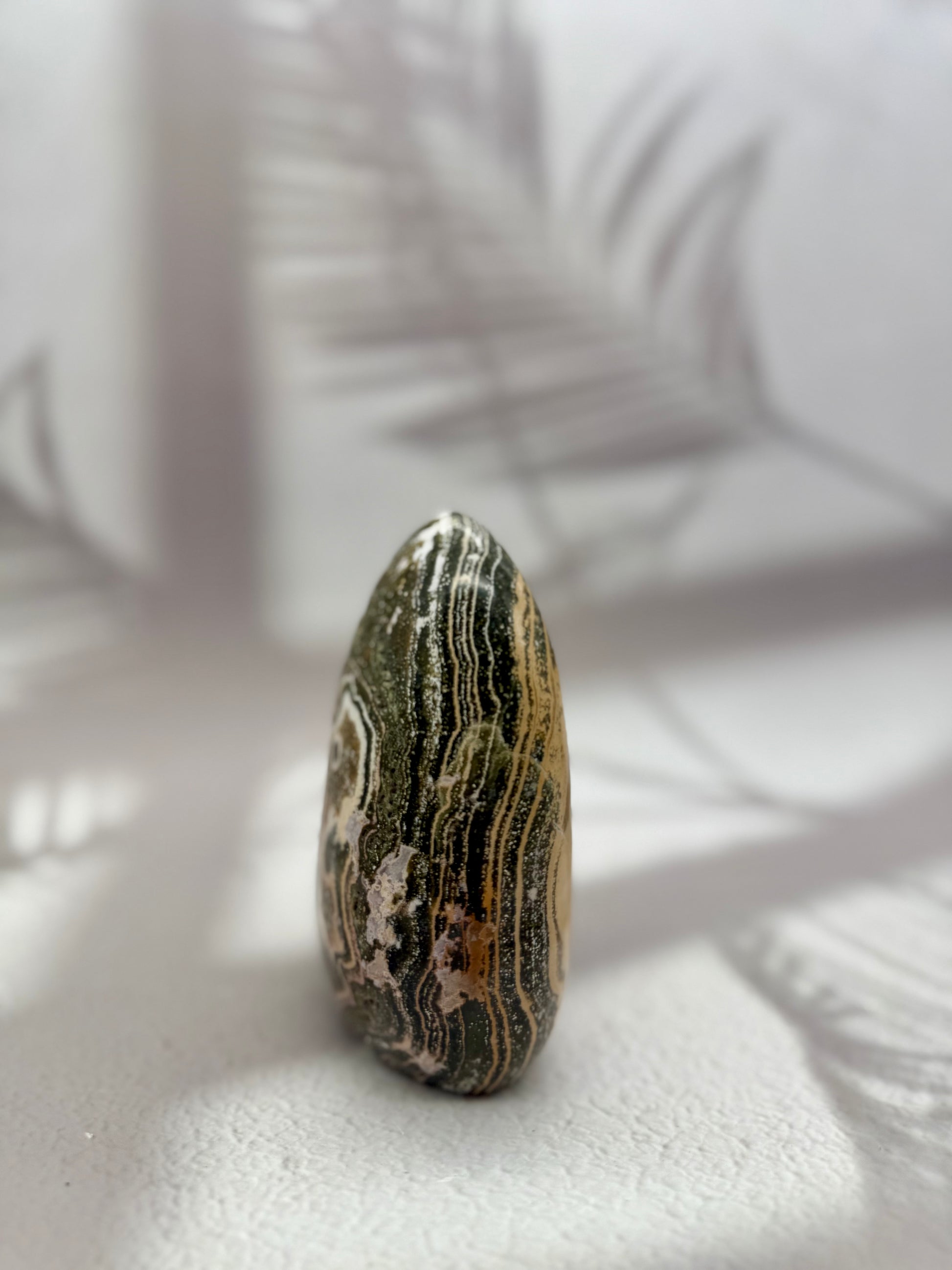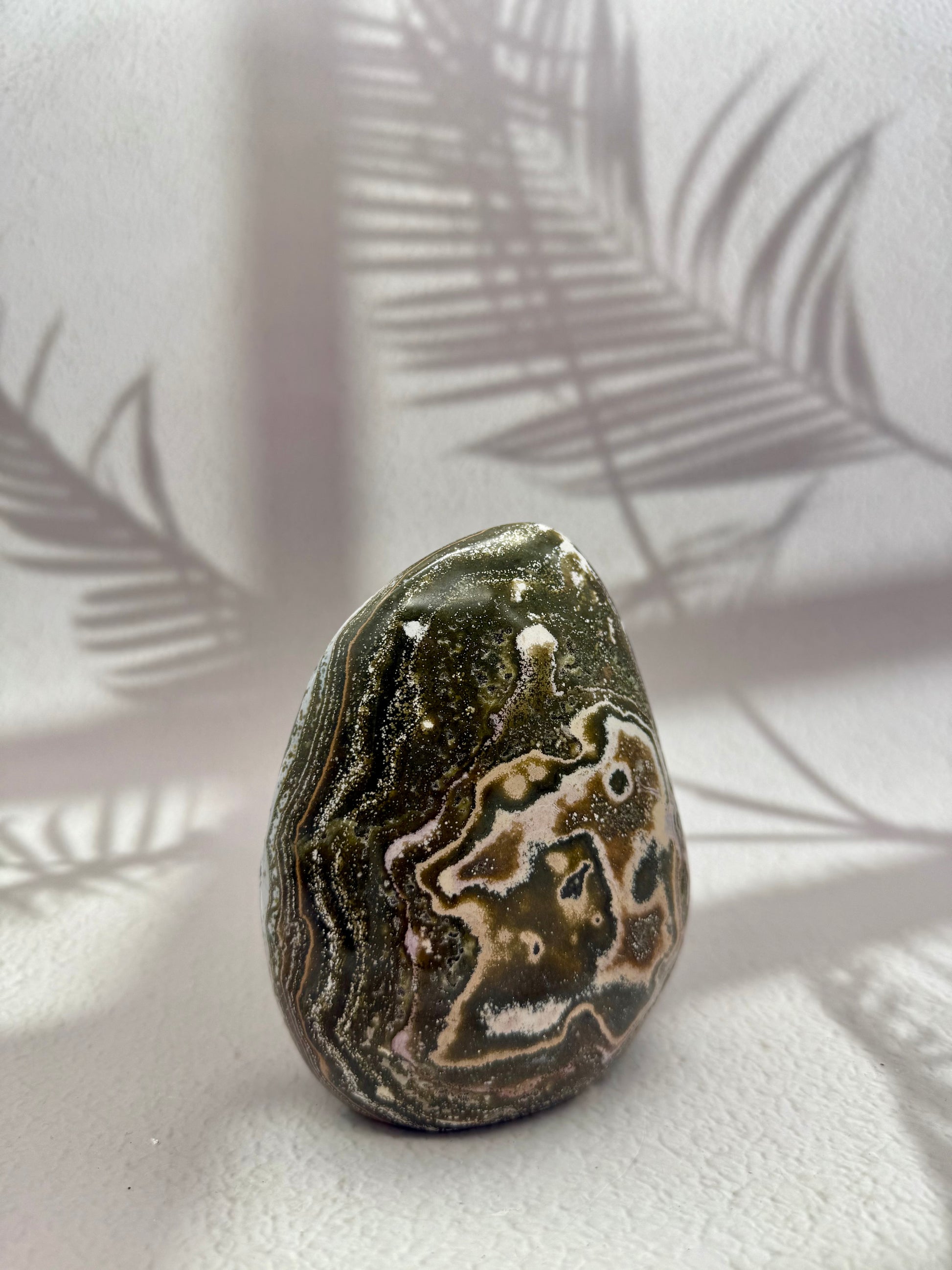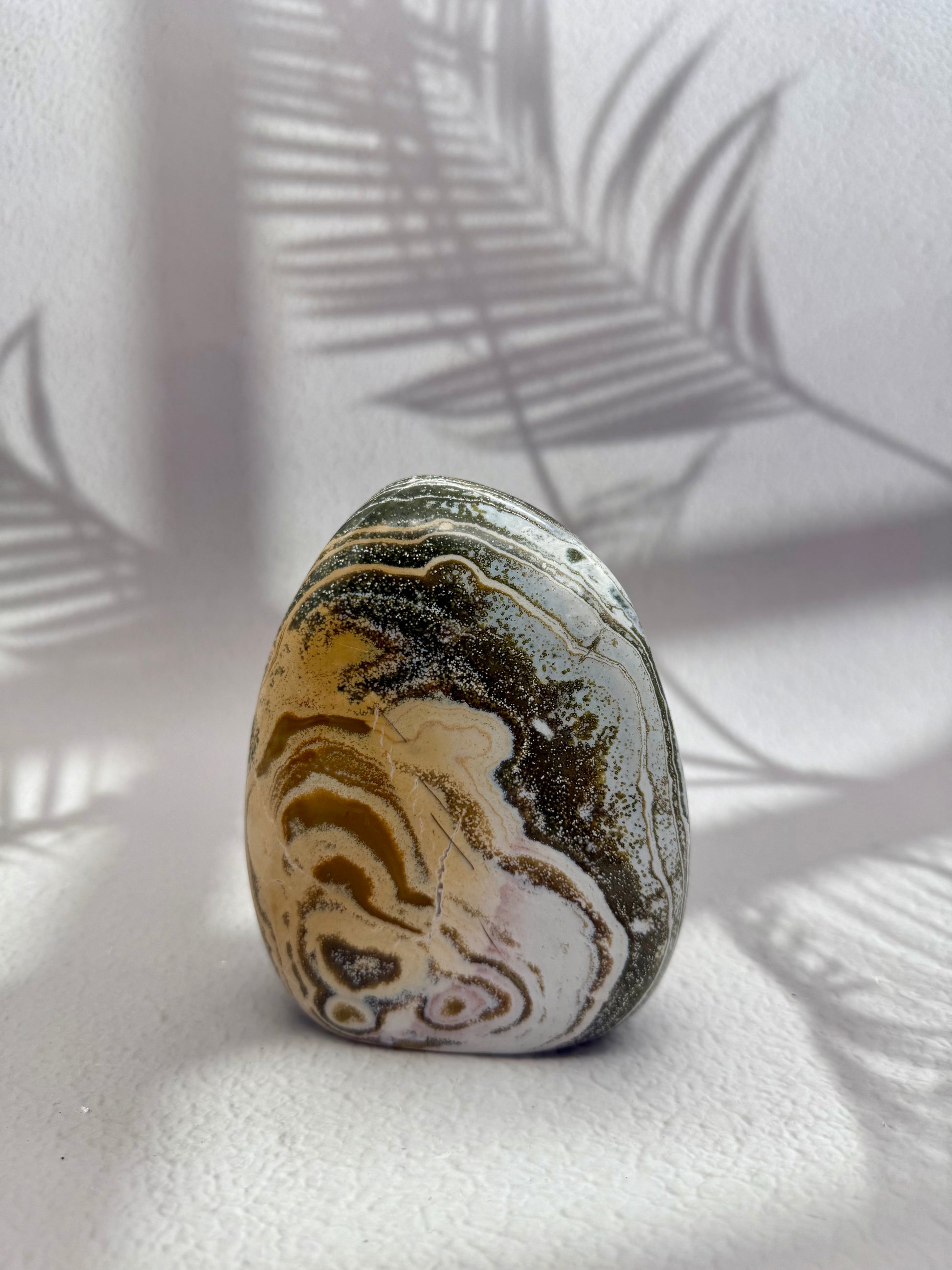 Ocean Jaspis gilt als Stein der Erdung, Ruhe und Harmonie. In dieser Freiform mit funkelnder Druse entfaltet er seine positive Energie besonders wirkungsvoll – ideal für Wohnräume, Arbeitsplätze, Meditationsbereiche oder als bezauberndes Geschenk.