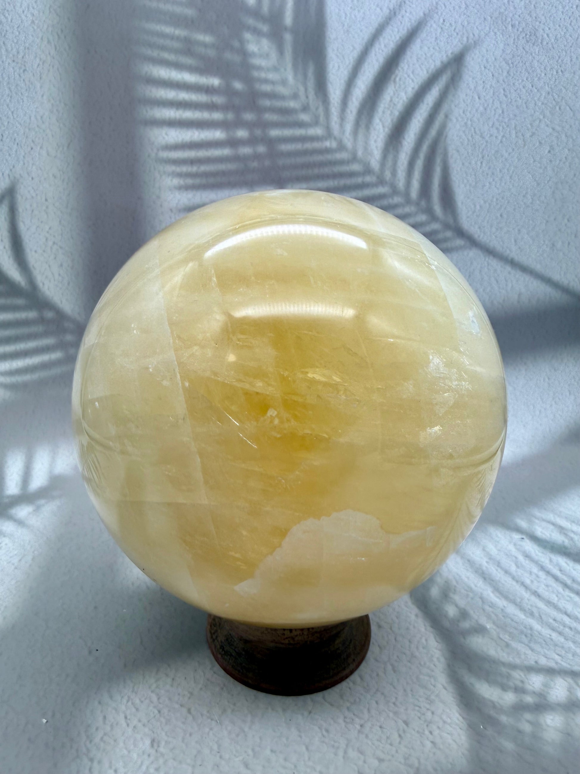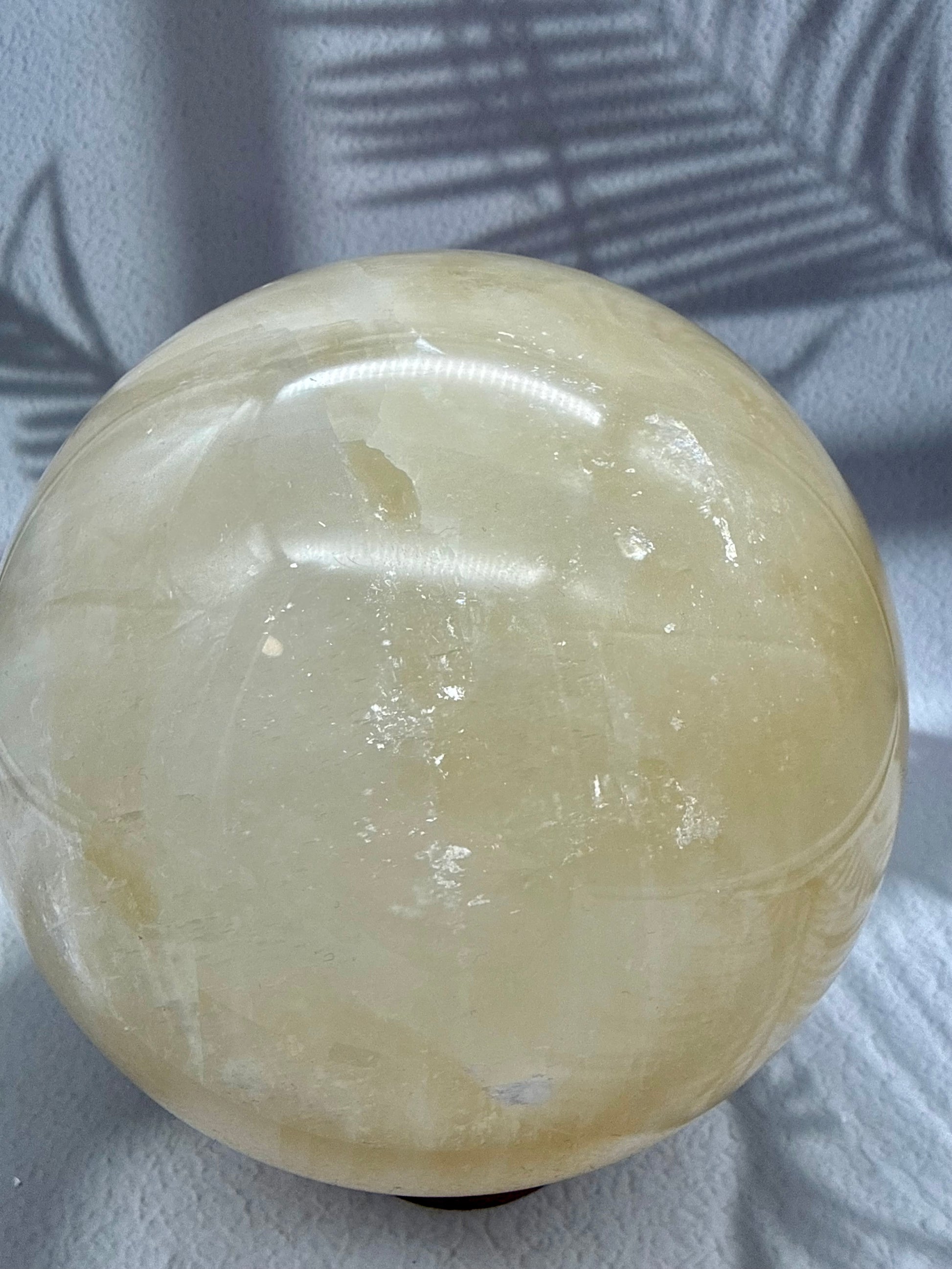 Orangencalcit Kugel – Regenbogenreflexe im Licht | 6,4 kg