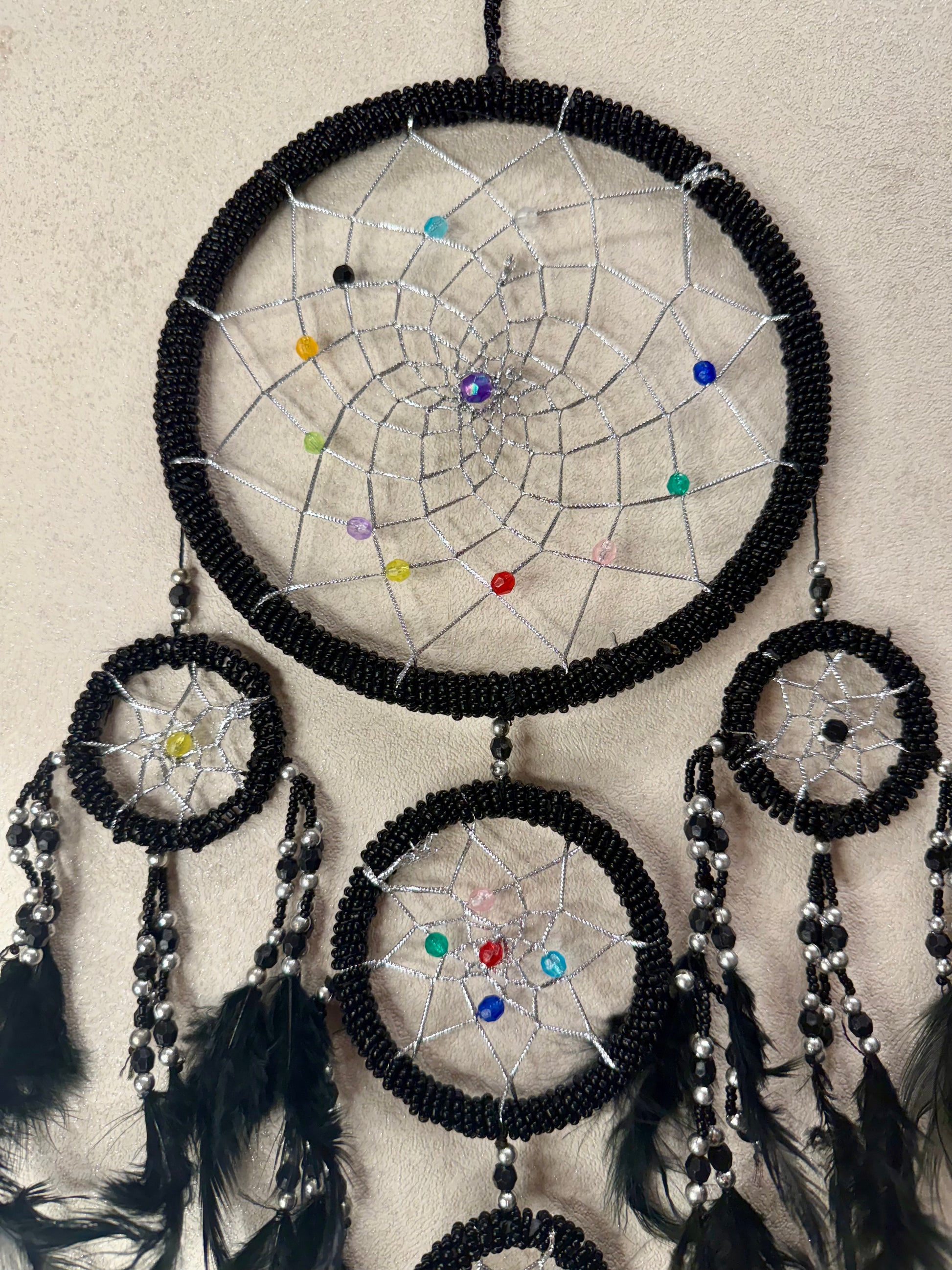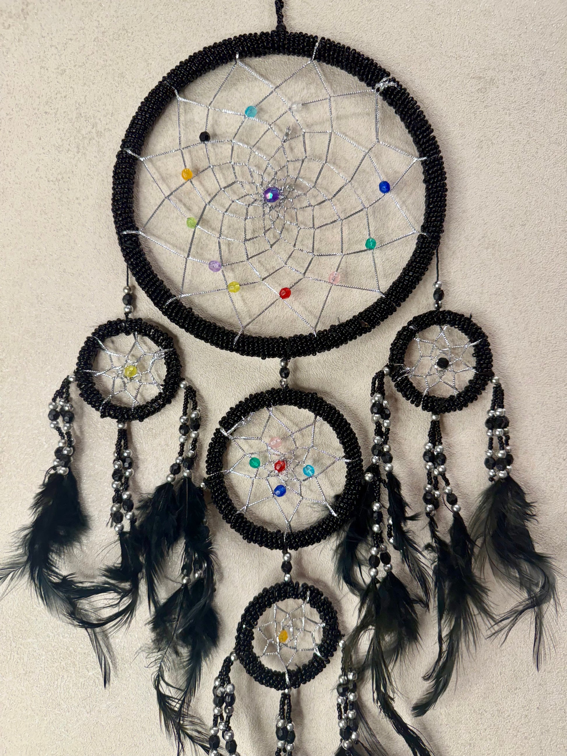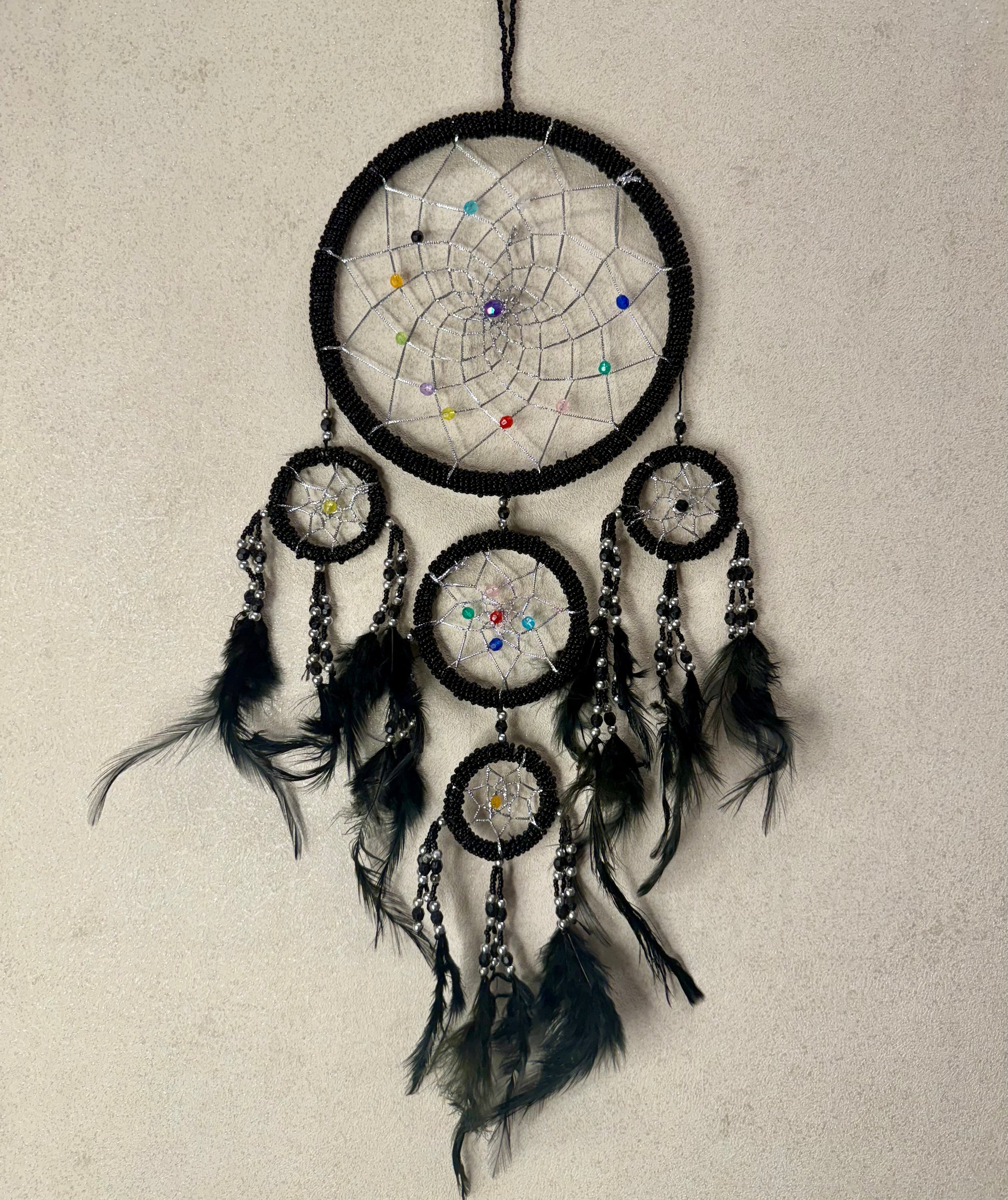 Traumfänger „Schwarzes Schutzlicht“ – Handgefertigt mit Perlen, Federn & Liebe