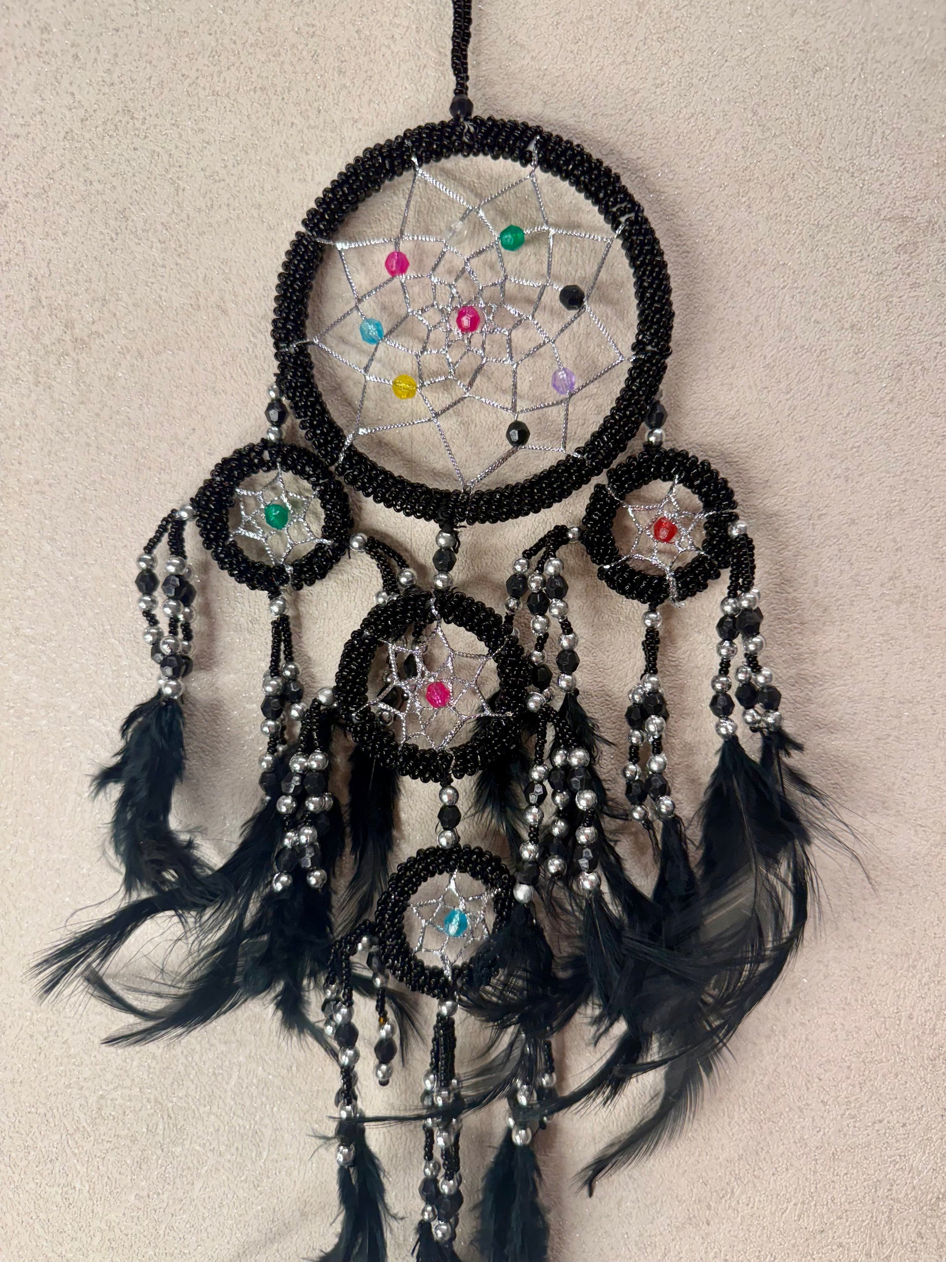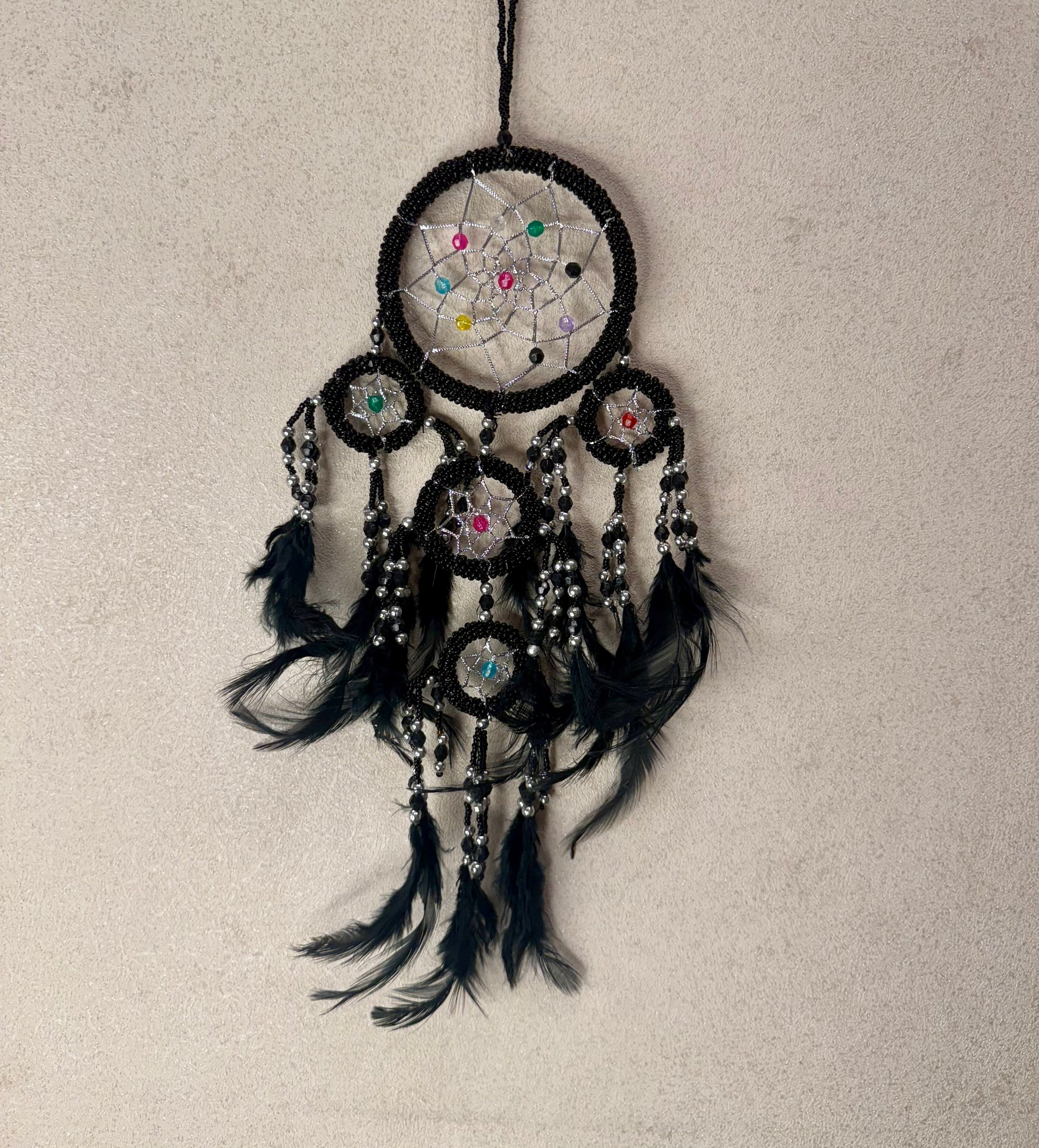 Traumfänger „Schwarzes Schutzlicht“ – Handgefertigt mit Perlen, Federn & Liebe