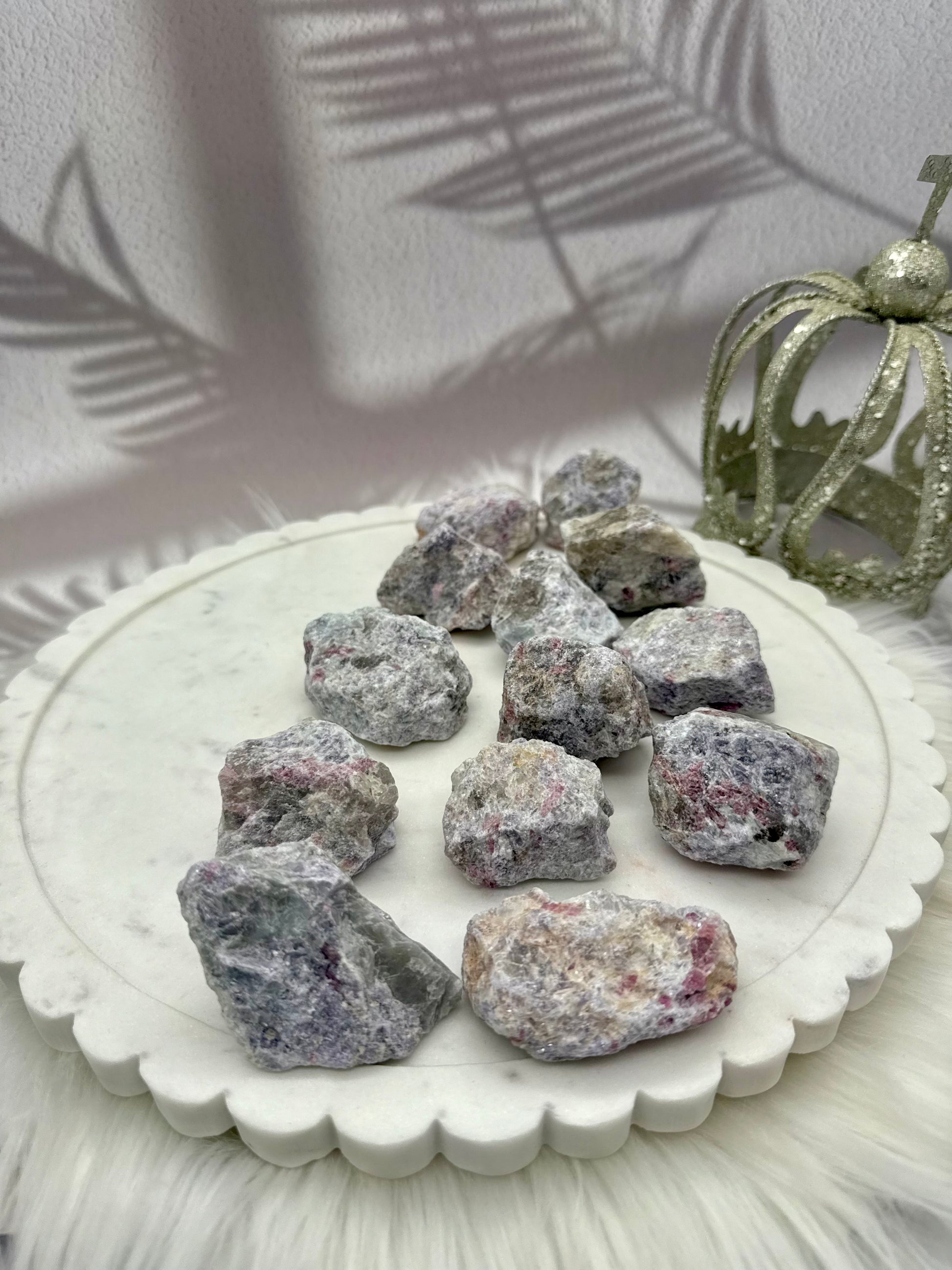 Lieferumfang: Du erhältst einen von uns ausgewählten Rohstein Pinker Turmalin in Lepidolith zur Wasserenergetisierung.