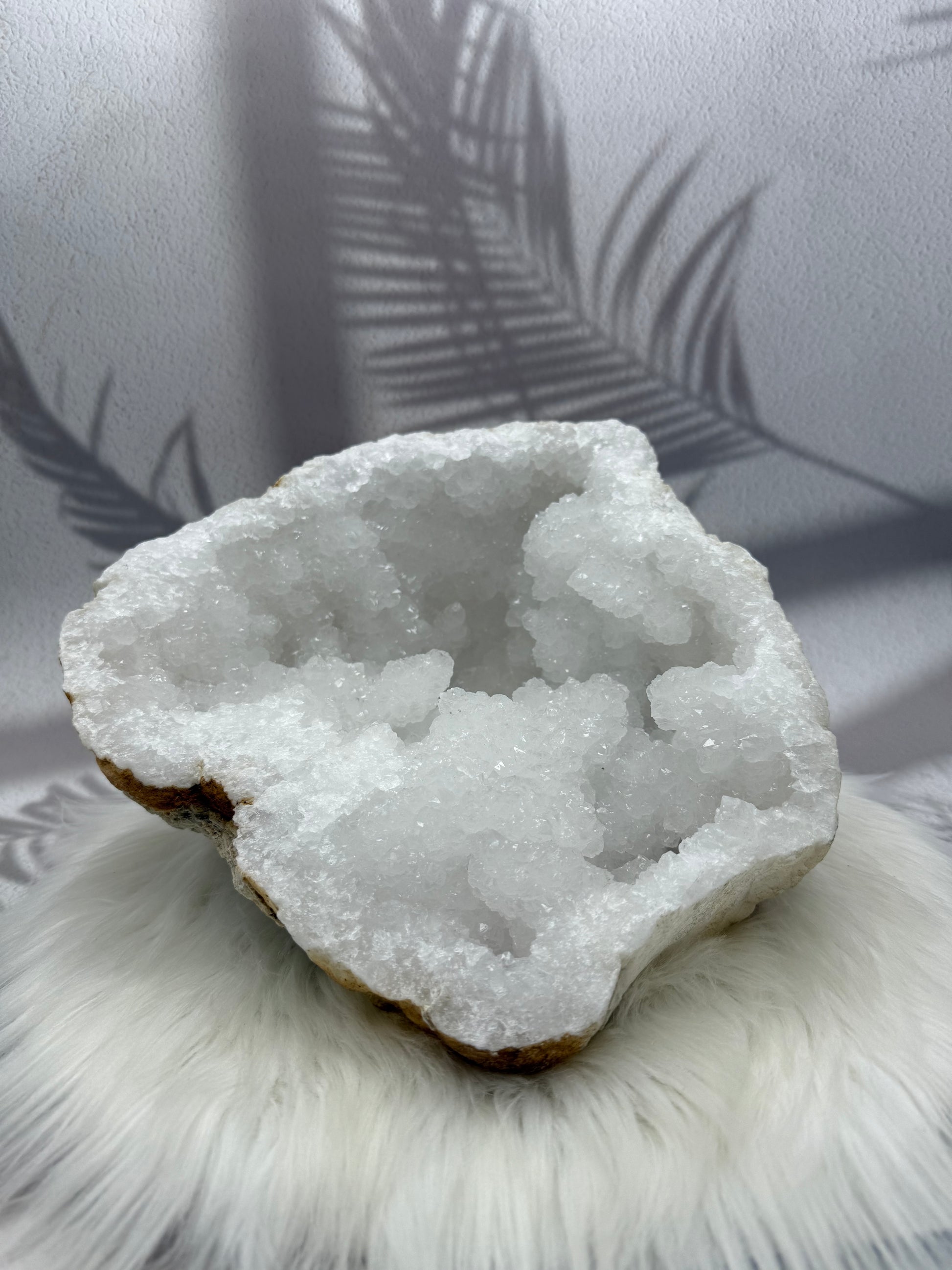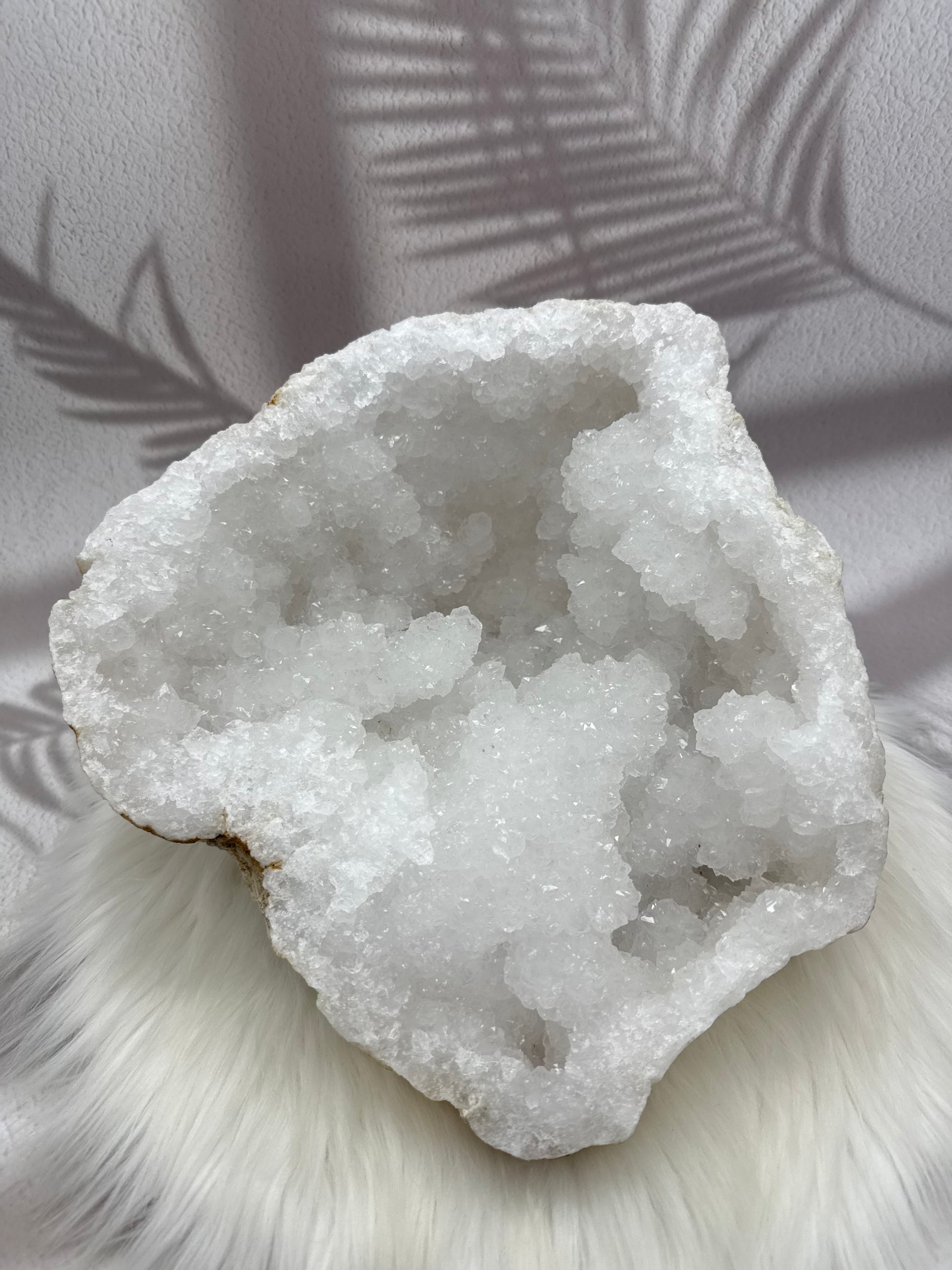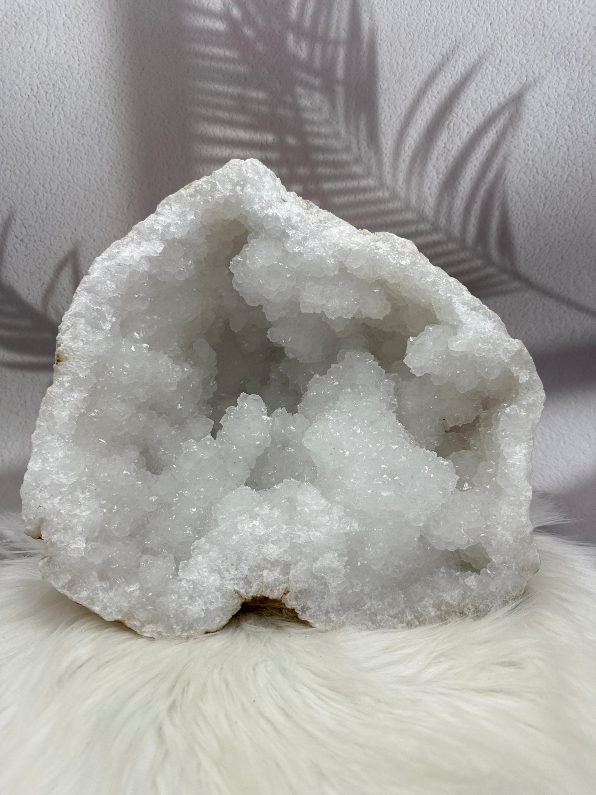 Bergkristall, die klare Form des Quarzes, gilt als „Meister-Heilkristall“. Er steht für Klarheit, Kraftverstärkung und Reinheit. In Drusenform verstärkt er die Energien anderer Steine, reinigt sie und verbreitet gleichzeitig eine kraftvolle, harmonische Schwingung – ideal für Wohnräume, Praxisräume, spirituelle Orte oder als Blickfang in einer Sammlung.