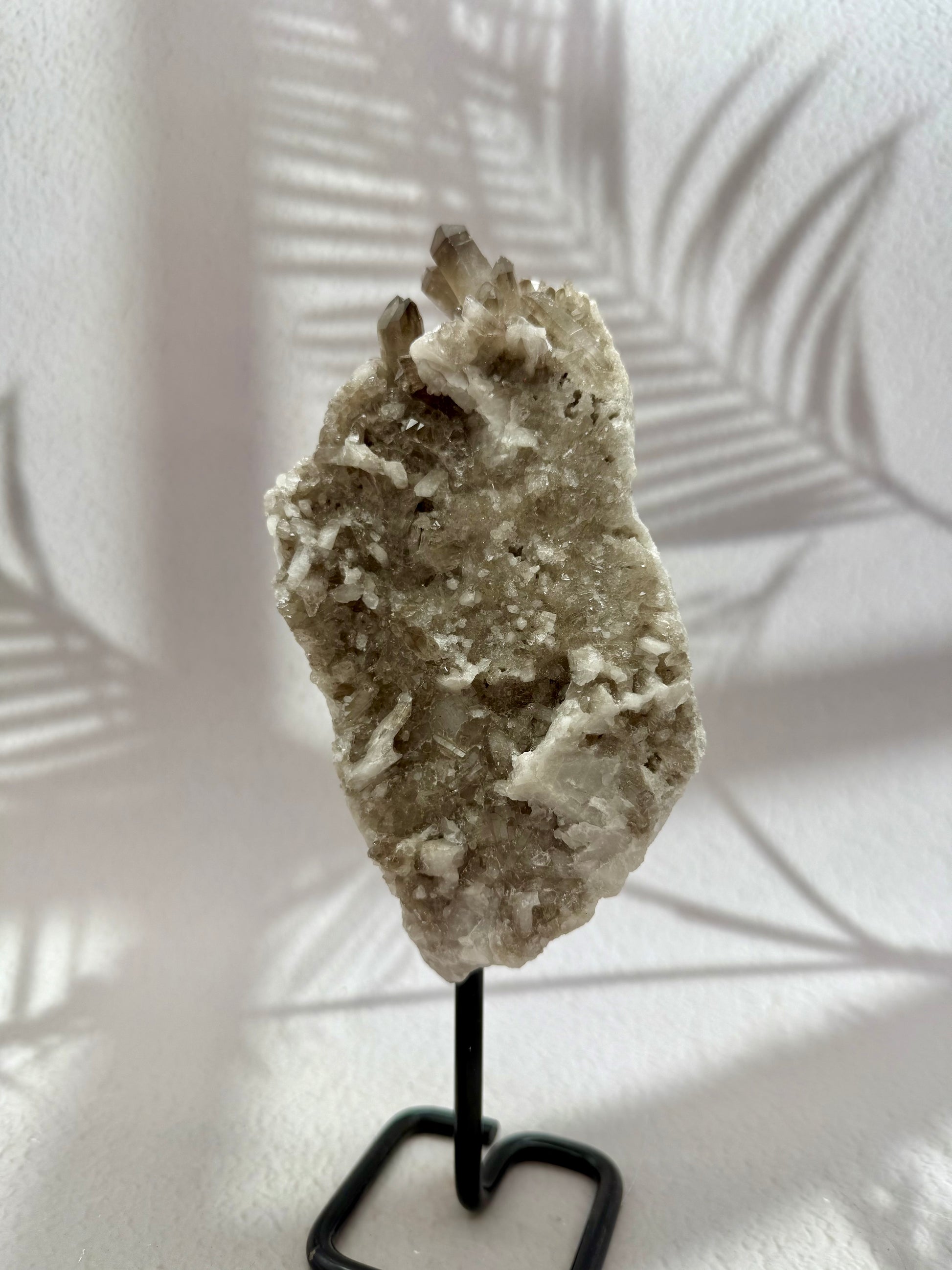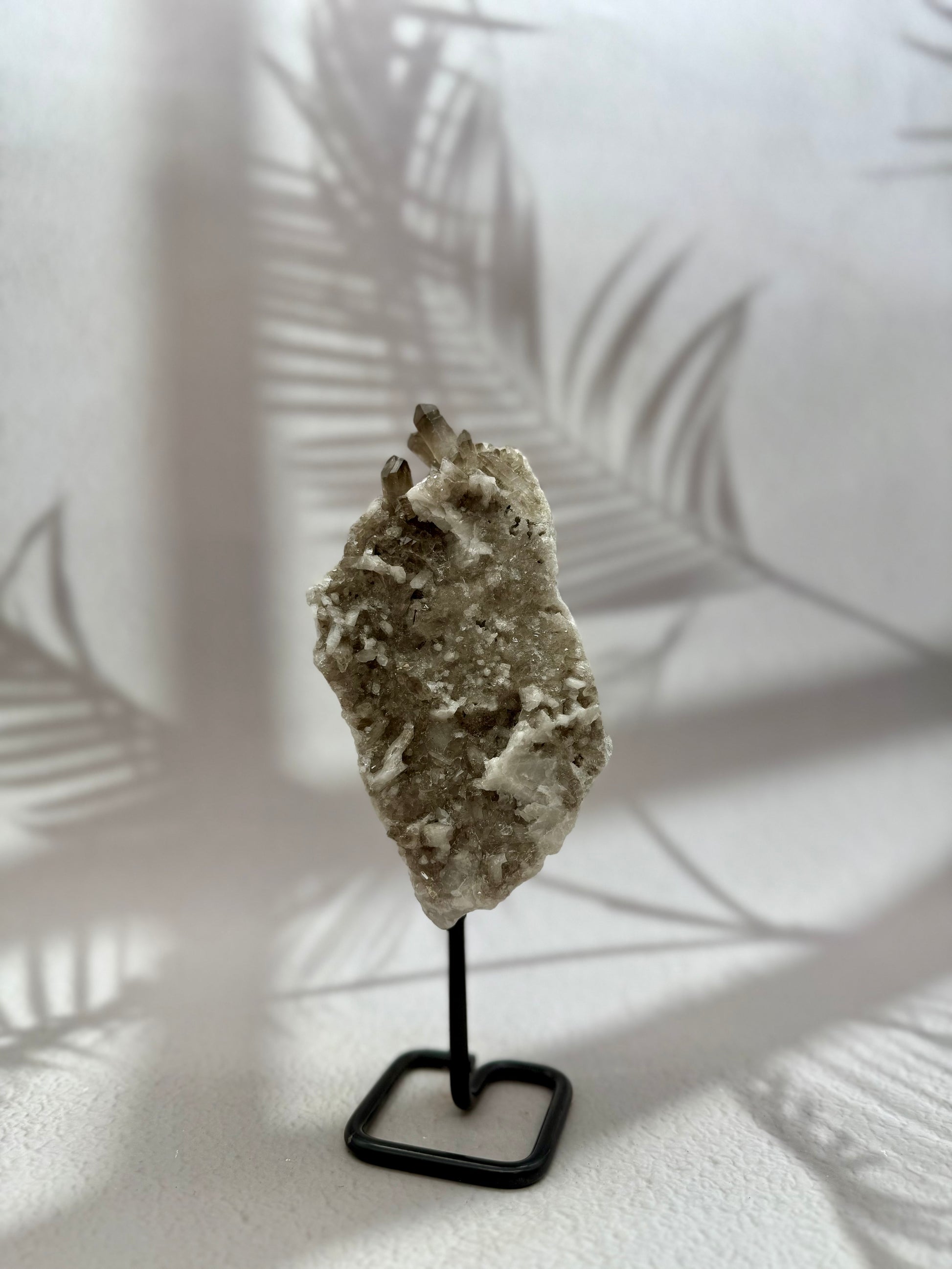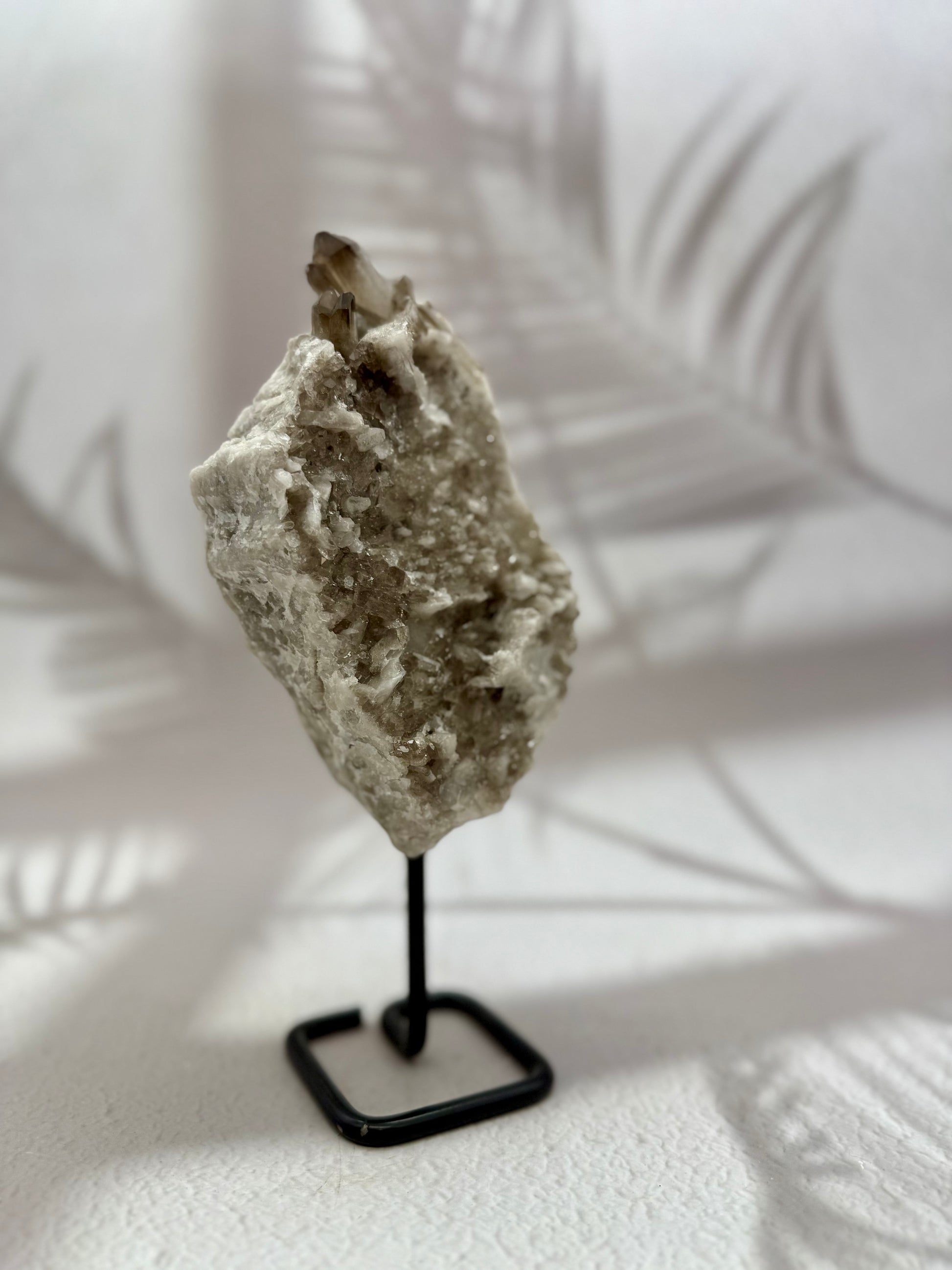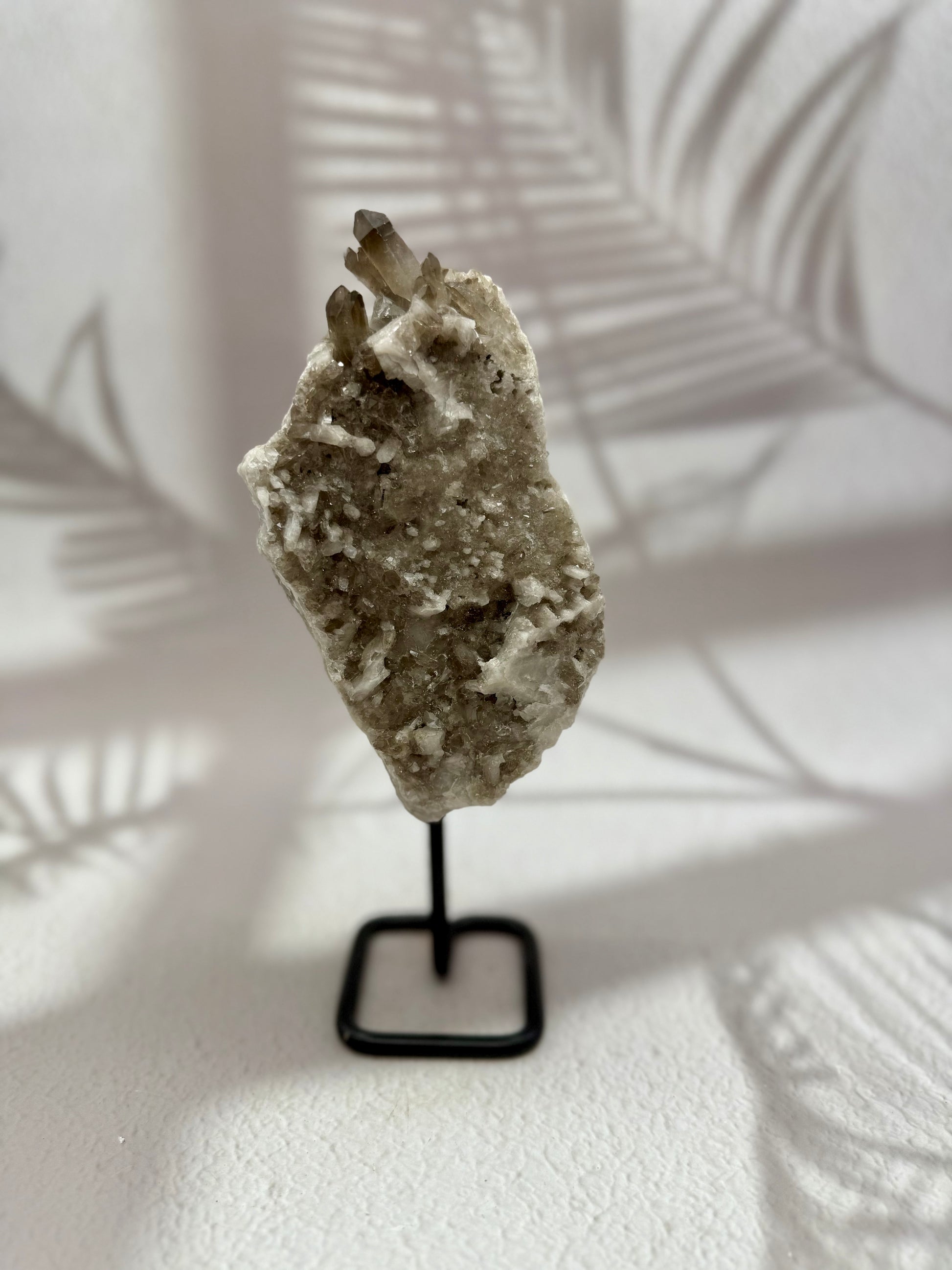 Dieser edle Rauchquarz auf einem stabilen Metallständer vereint natürliche Schönheit mit kraftvoller Energie. Die rauchig-braune Farbgebung verleiht dem Kristall eine geheimnisvolle Tiefe, während seine klare Struktur zeitlose Eleganz ausstrahlt. Auf dem Ständer präsentiert, wird er zu einem dekorativen Highlight und einem starken energetischen Begleiter zugleich.