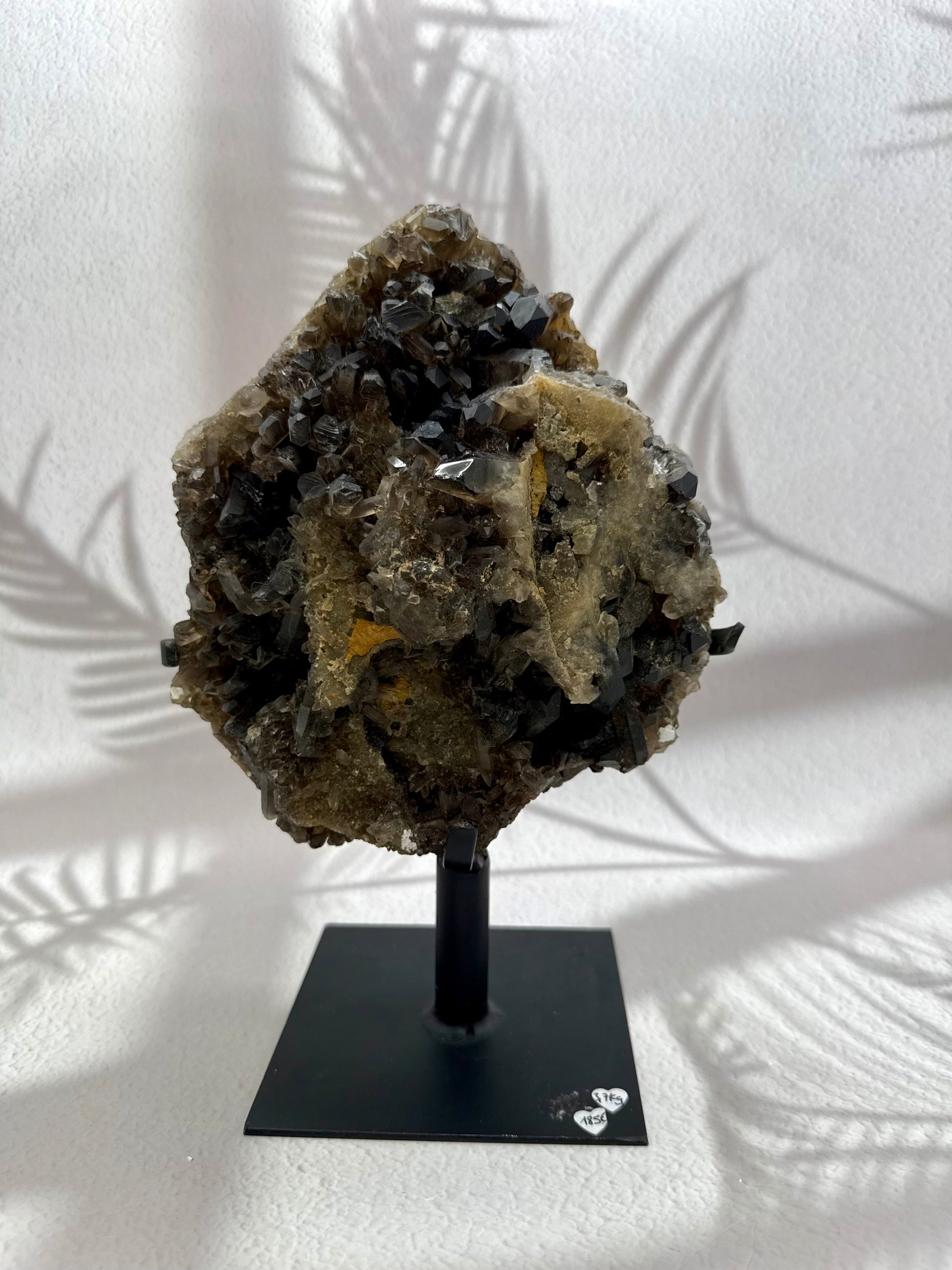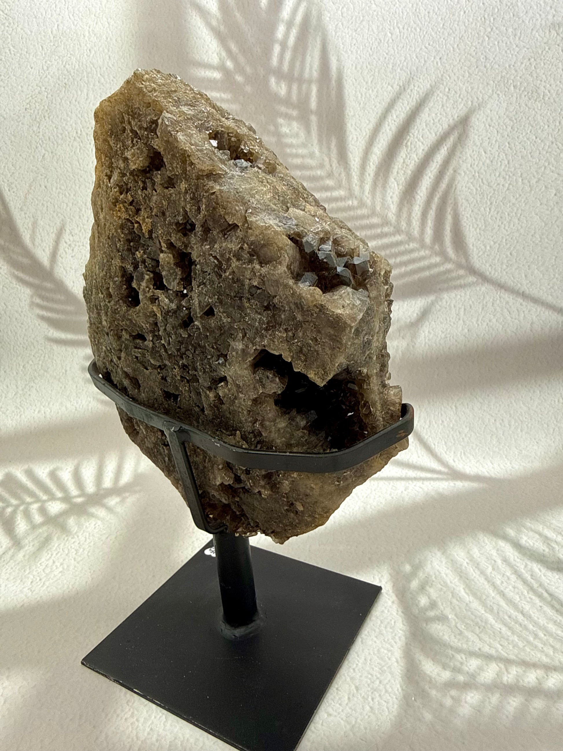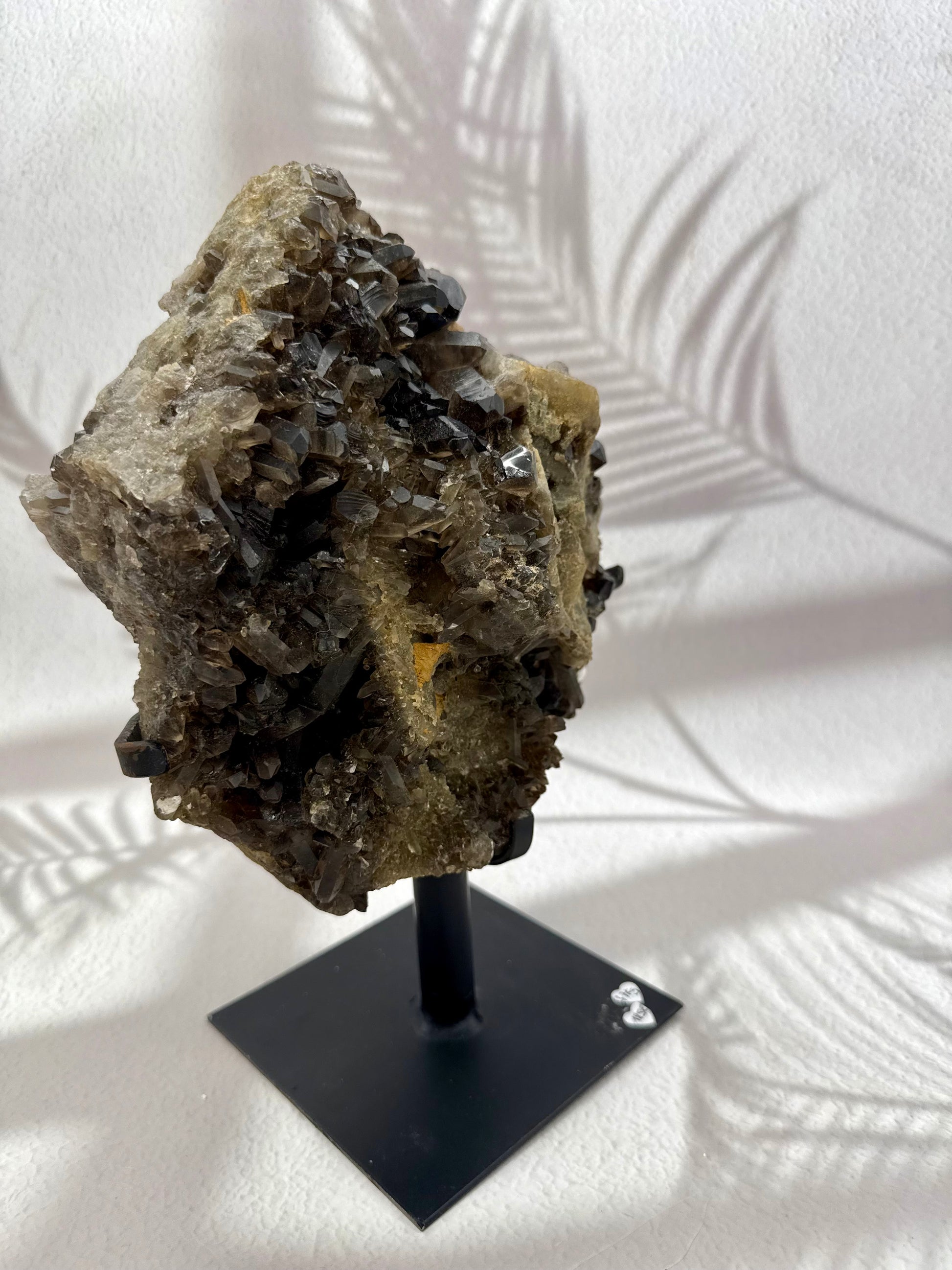 Rauchquarzdruse auf Ständer – Dunkle Eleganz & natürliche Kristallvielfalt