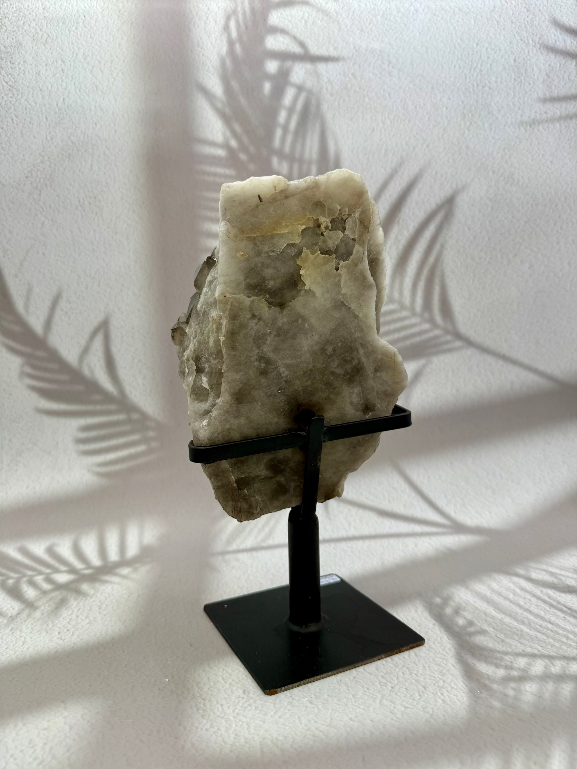 Dieser edle Rauchquarz auf einem stabilen Metallständer vereint natürliche Schönheit mit kraftvoller Energie. Die rauchig-braune Farbgebung verleiht dem Kristall eine geheimnisvolle Tiefe, während seine klare Struktur zeitlose Eleganz ausstrahlt. Auf dem Ständer präsentiert, wird er zu einem dekorativen Highlight und einem starken energetischen Begleiter zugleich.