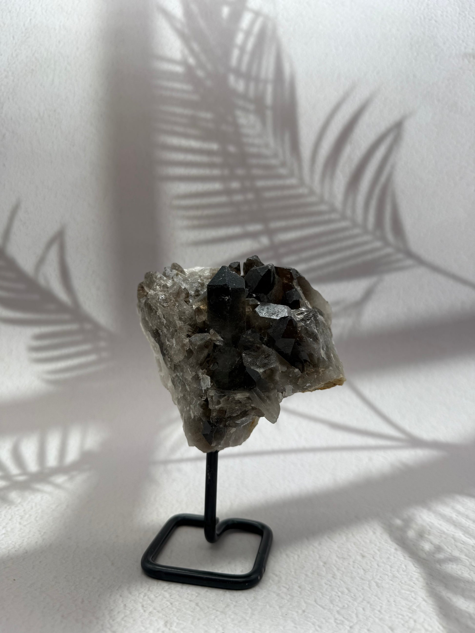 Rauchquarz auf Ständer – Schutz & Erdung in eleganter Form