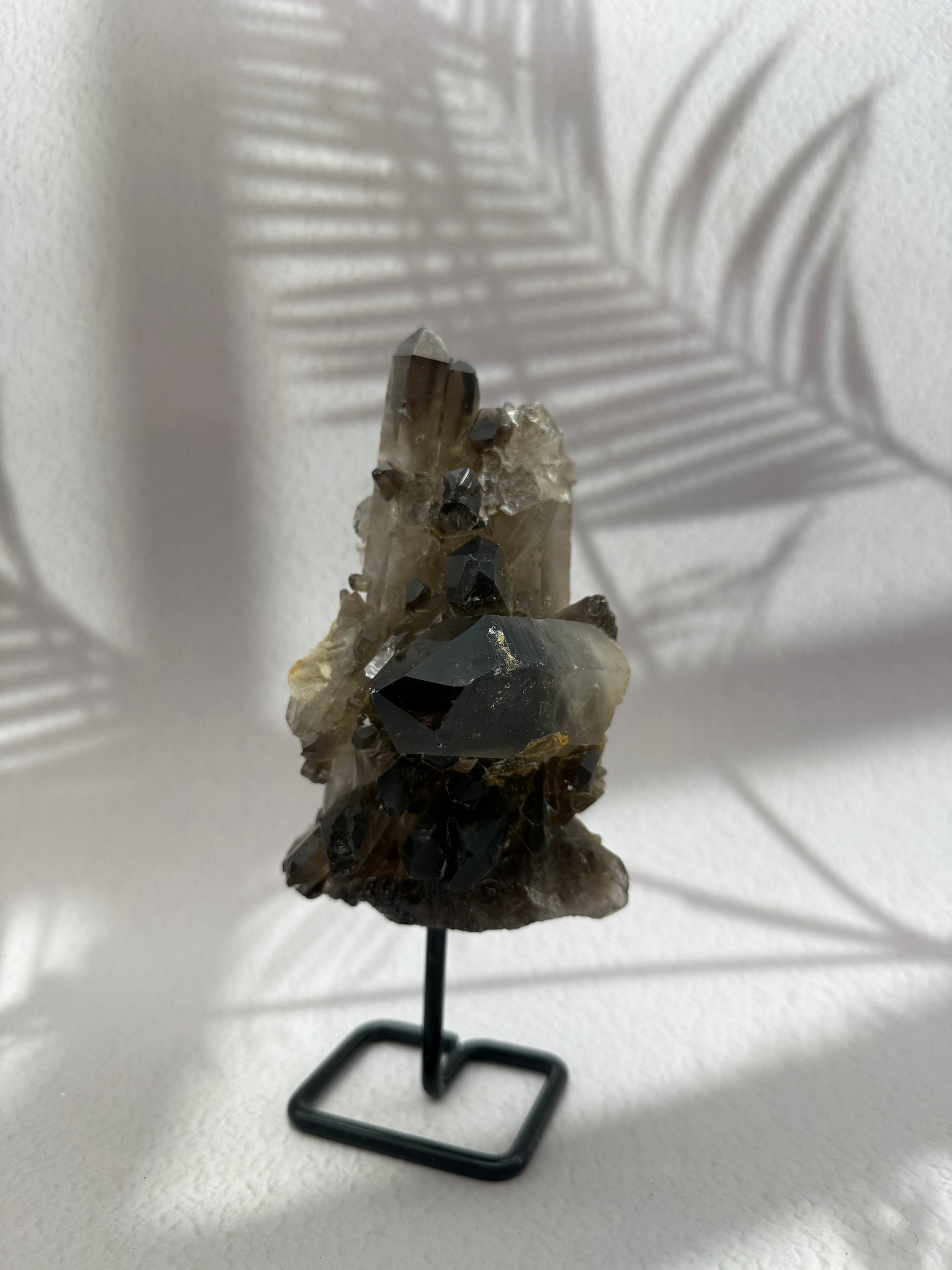 Rauchquarz auf Ständer – Schutz & Erdung in eleganter Form