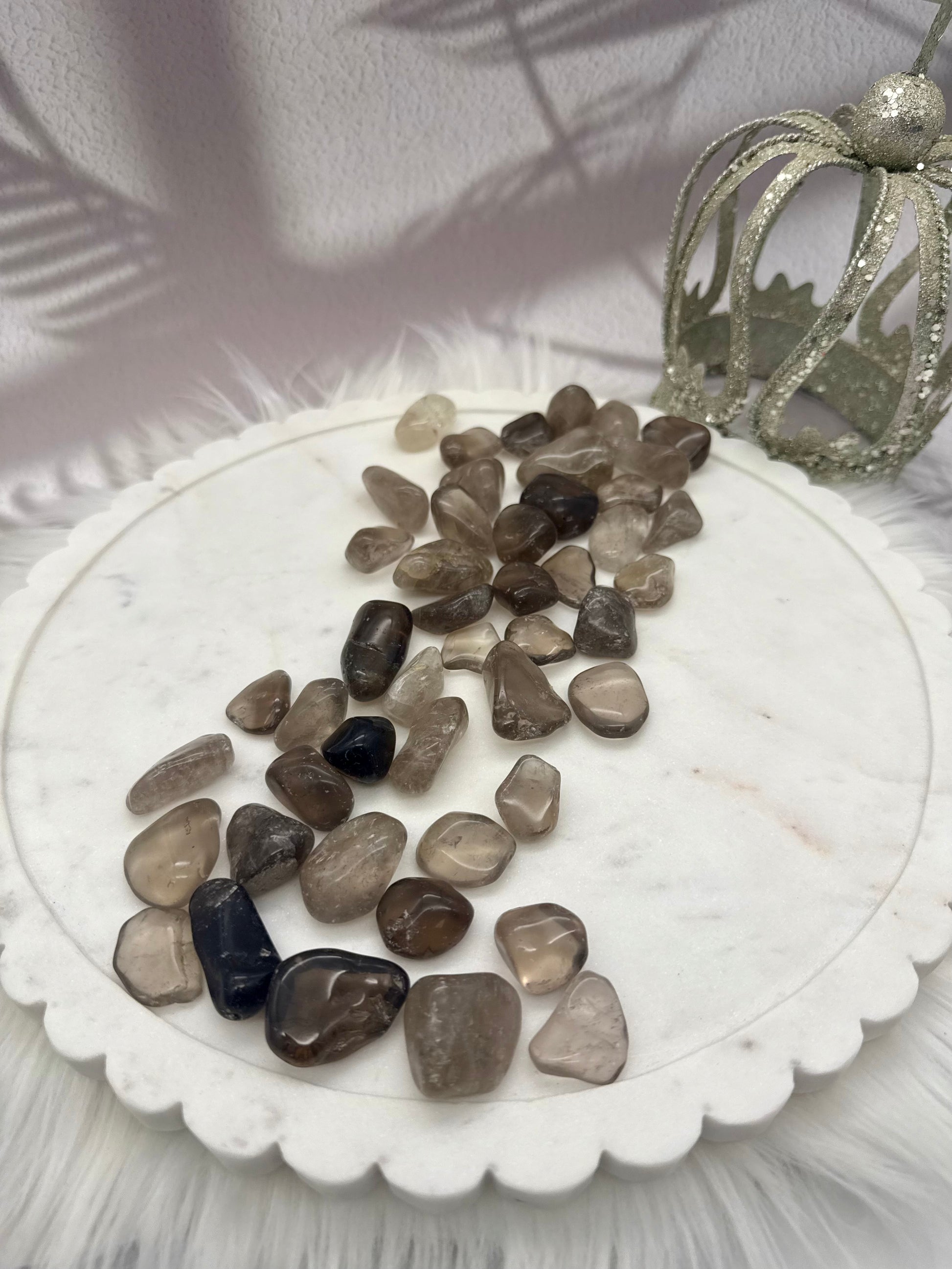 Lieferumfang: Du erhältst einen von uns ausgewählten Rauchquarz-Trommelstein, handschmeichelnd glatt poliert.