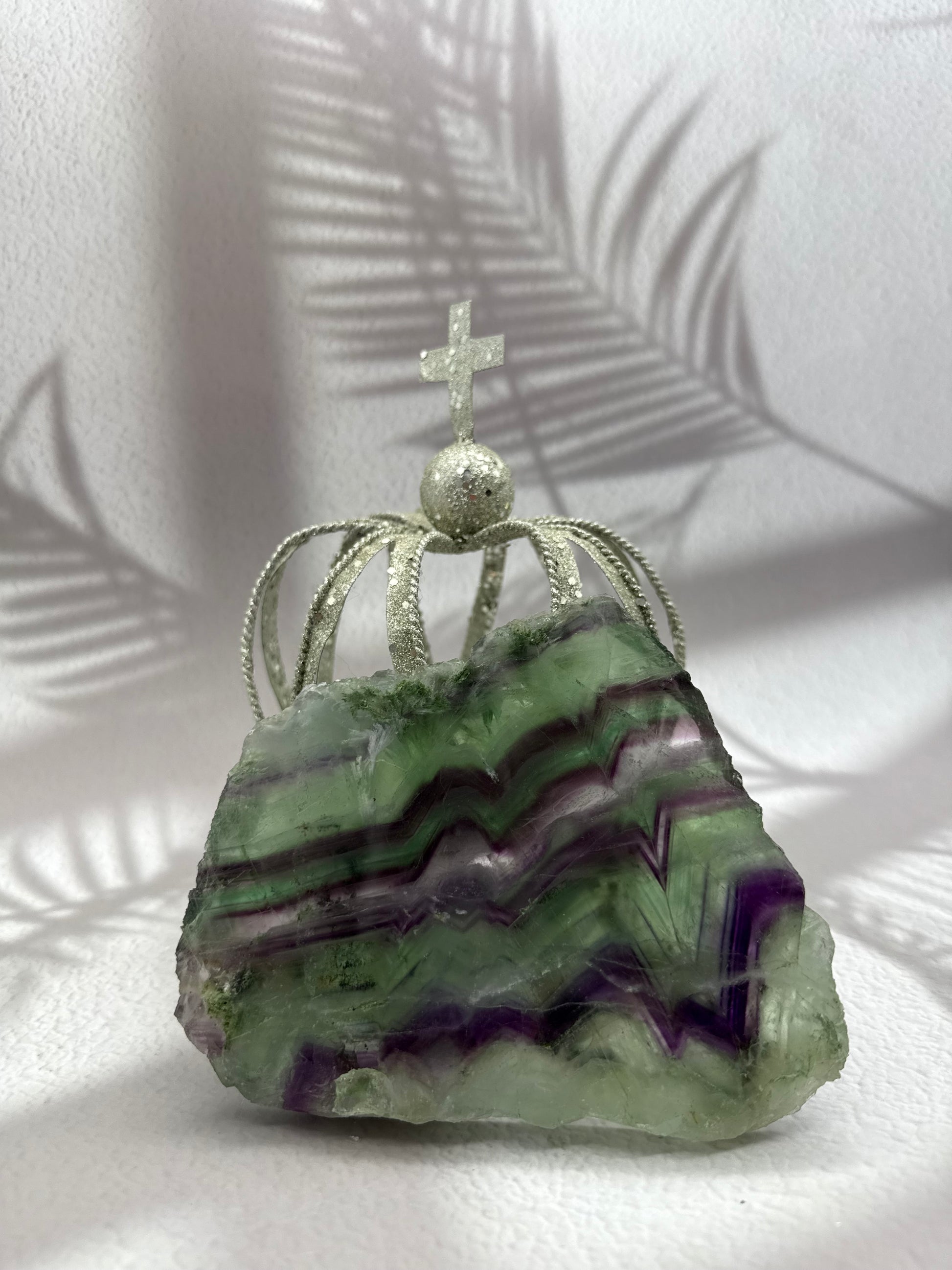 Diese wunderschöne Regenbogen-Fluorit-Scheibe begeistert mit ihren intensiven Schichtungen in Grün-, Violett- und Blautönen. Die polierte Oberfläche bringt die Farben besonders klar zur Geltung und macht die Platte zu einem dekorativen Highlight voller Eleganz und Energie. Ob als Schmuckstück für den Raum, als Unterlage für Kristalle oder als Meditationshilfe – sie verbindet Schönheit mit spiritueller Tiefe.
