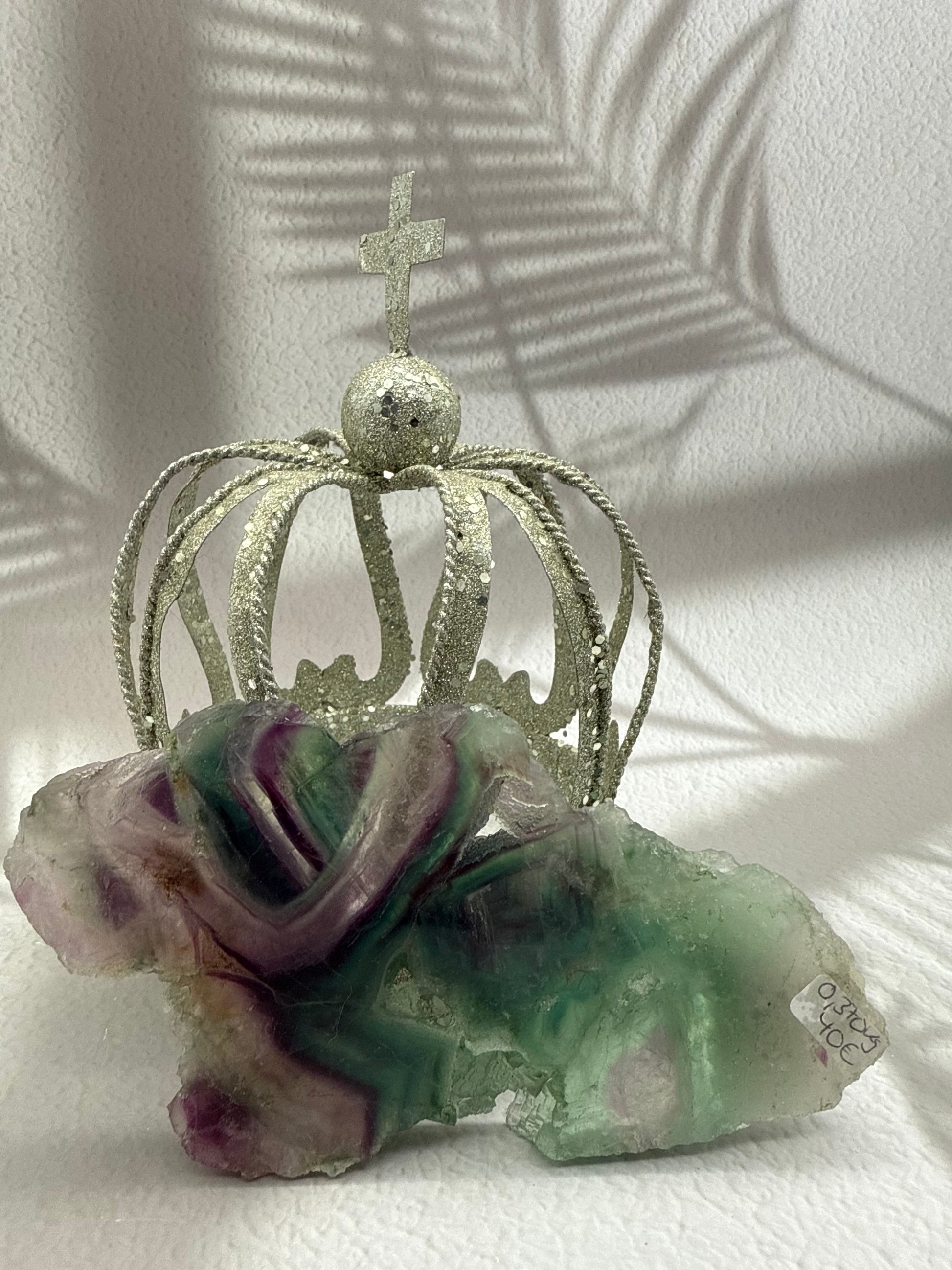 Diese wunderschöne Regenbogen-Fluorit-Scheibe begeistert mit ihren intensiven Schichtungen in Grün-, Violett- und Blautönen. Die polierte Oberfläche bringt die Farben besonders klar zur Geltung und macht die Platte zu einem dekorativen Highlight voller Eleganz und Energie. Ob als Schmuckstück für den Raum, als Unterlage für Kristalle oder als Meditationshilfe – sie verbindet Schönheit mit spiritueller Tiefe.