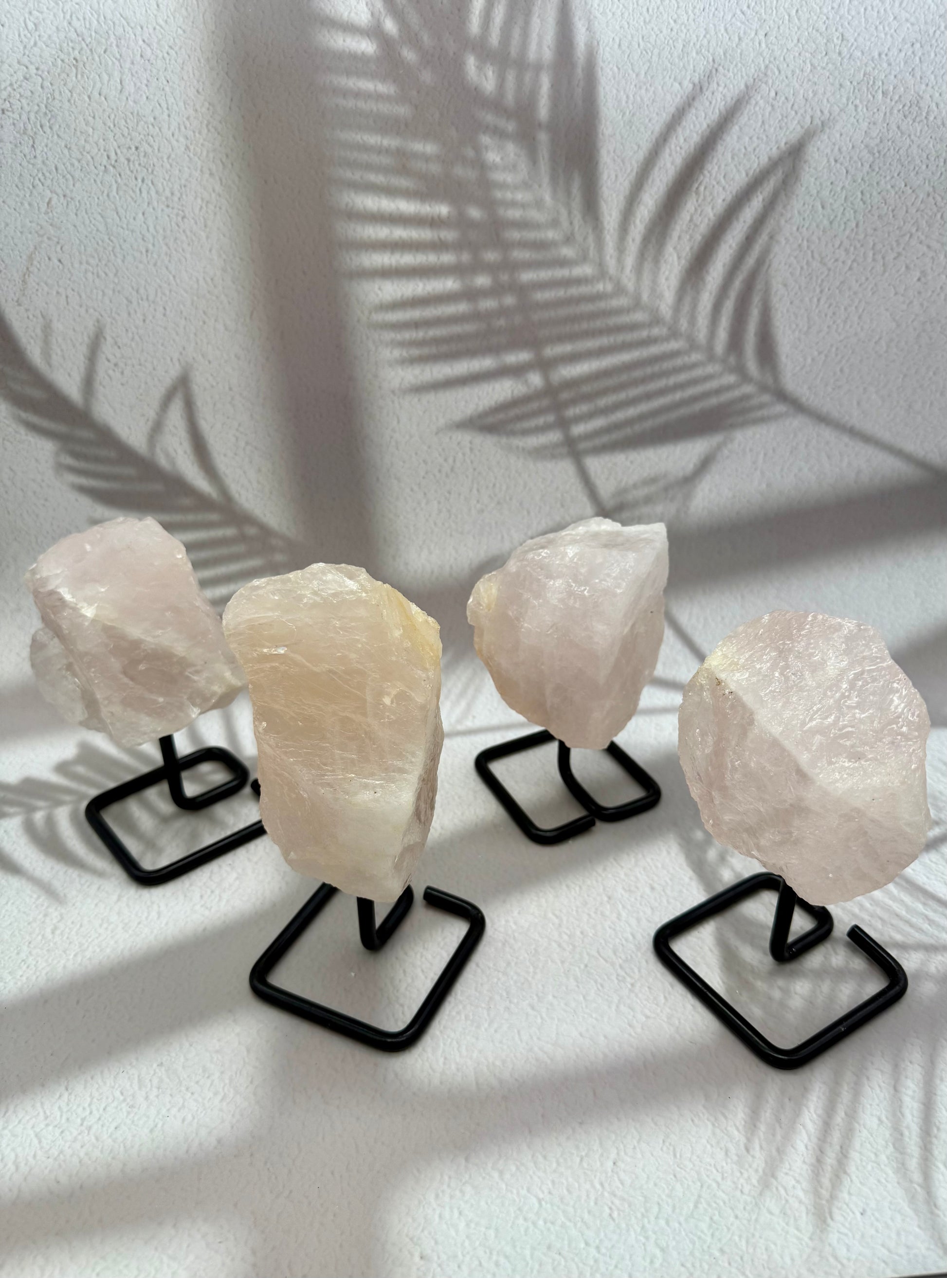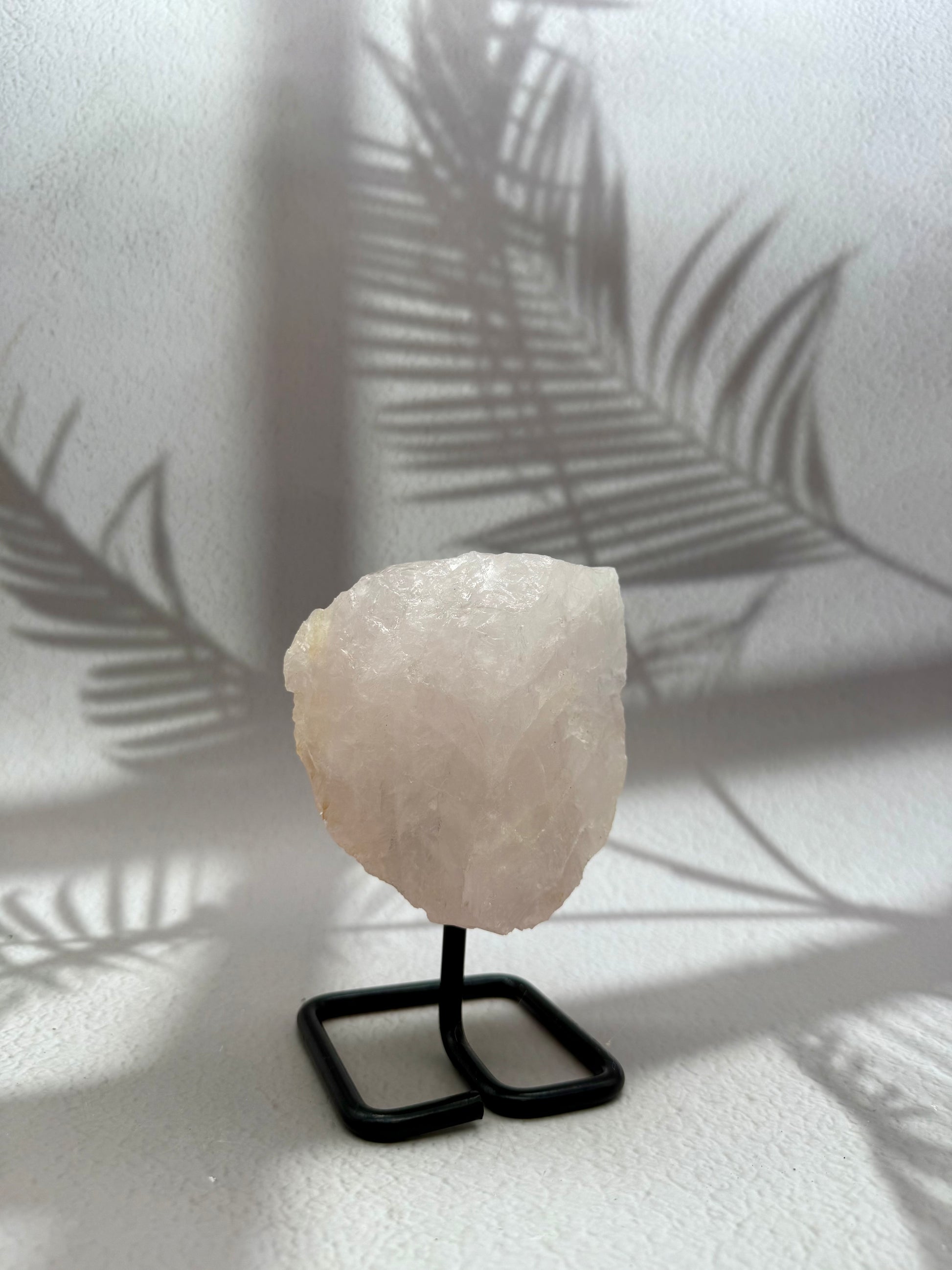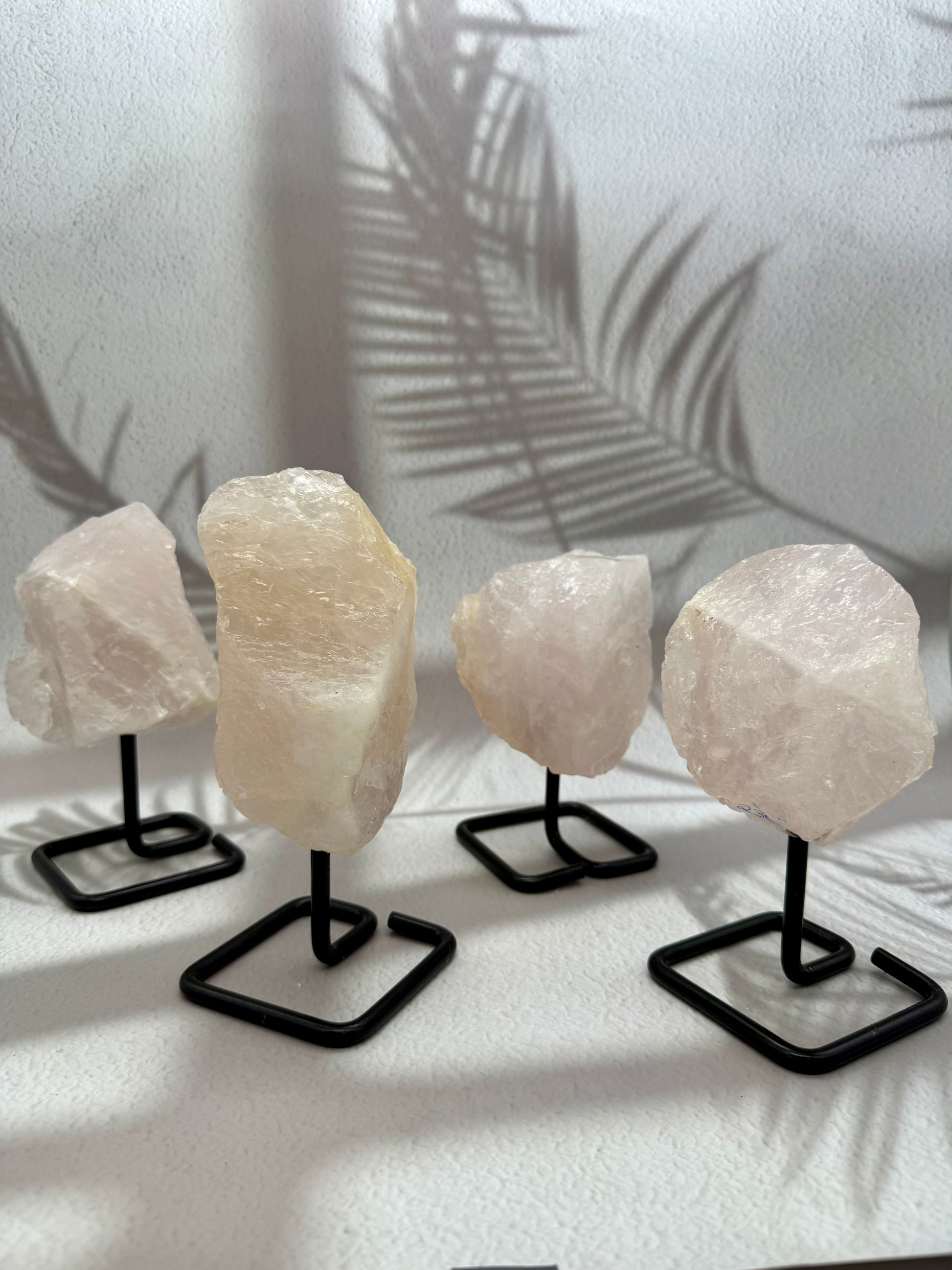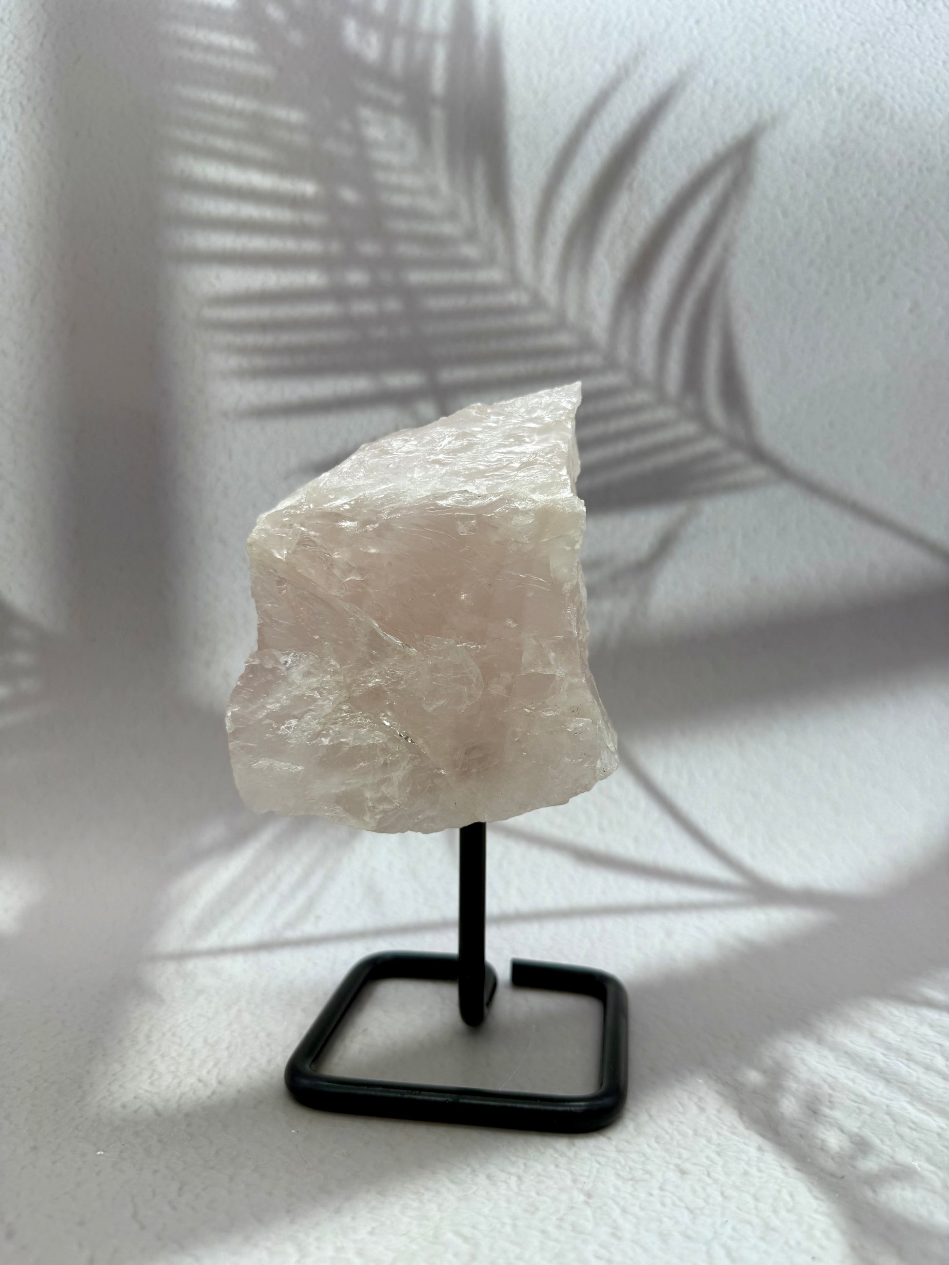Rosenquarz roh auf Ständer – Liebe & Harmonie in natürlicher Schönheit