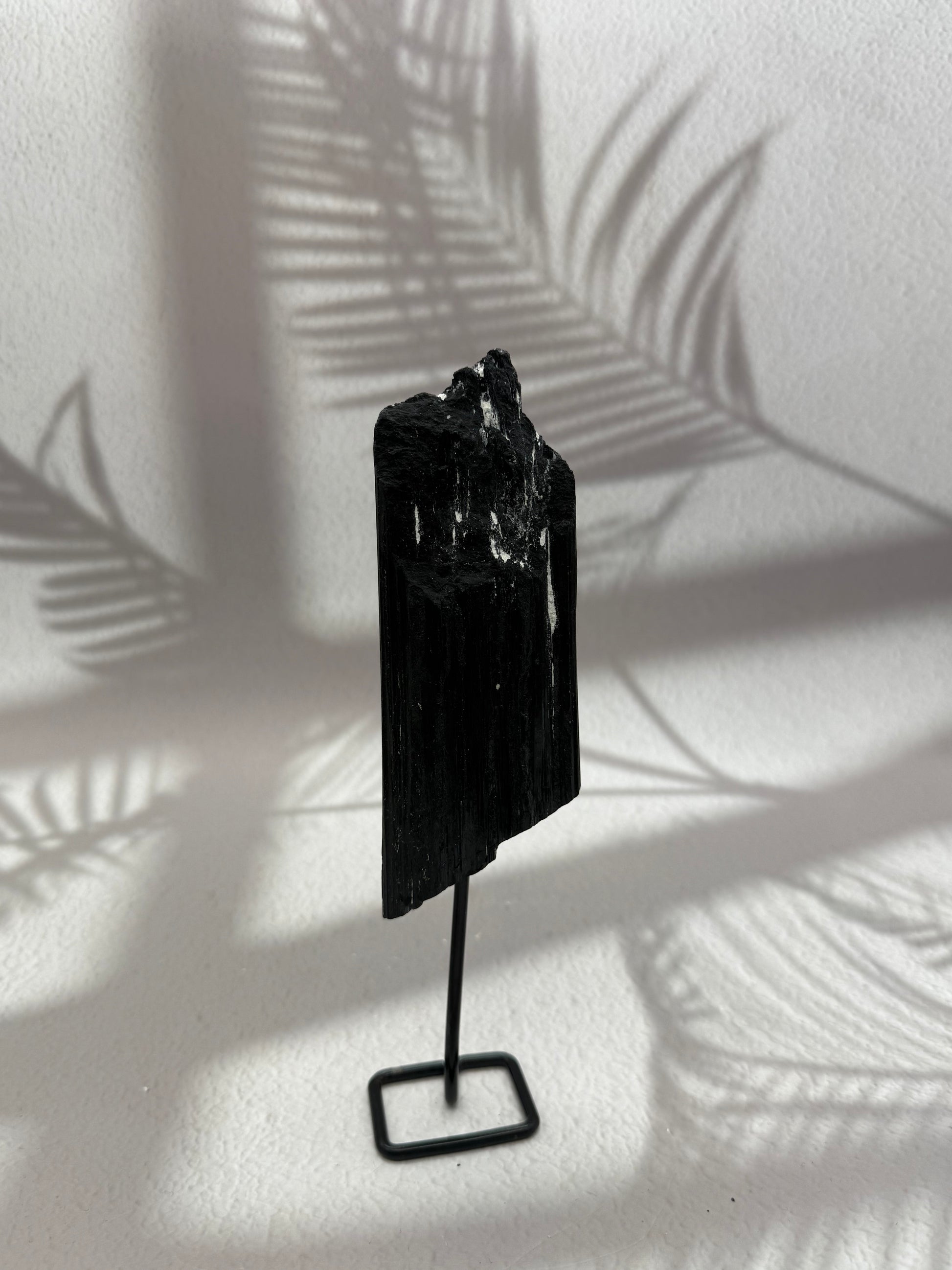 Schwarzer Turmalin roh auf Ständer – Kraftstein für Schutz & Erdung