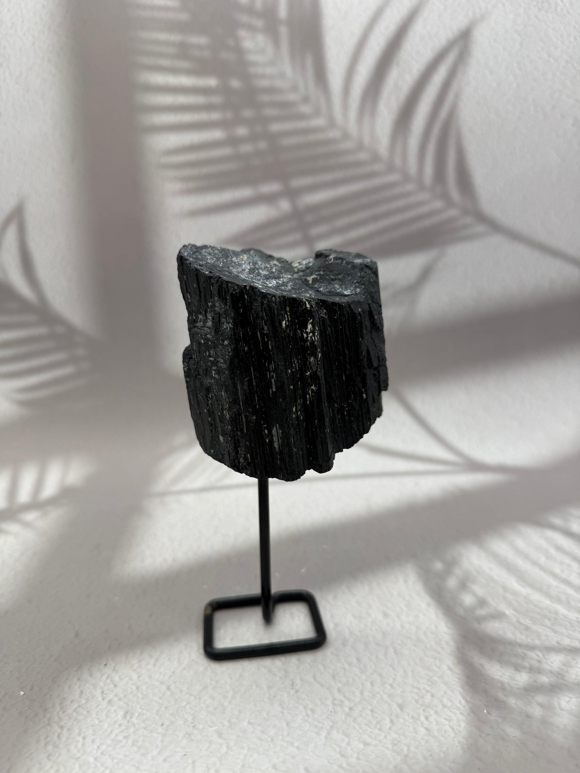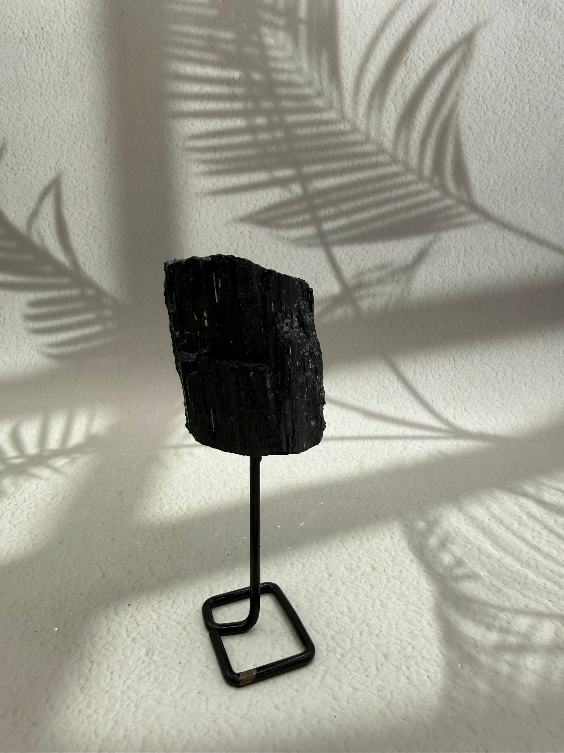 Schwarzer Turmalin roh auf Ständer – Kraftstein für Schutz & Erdung