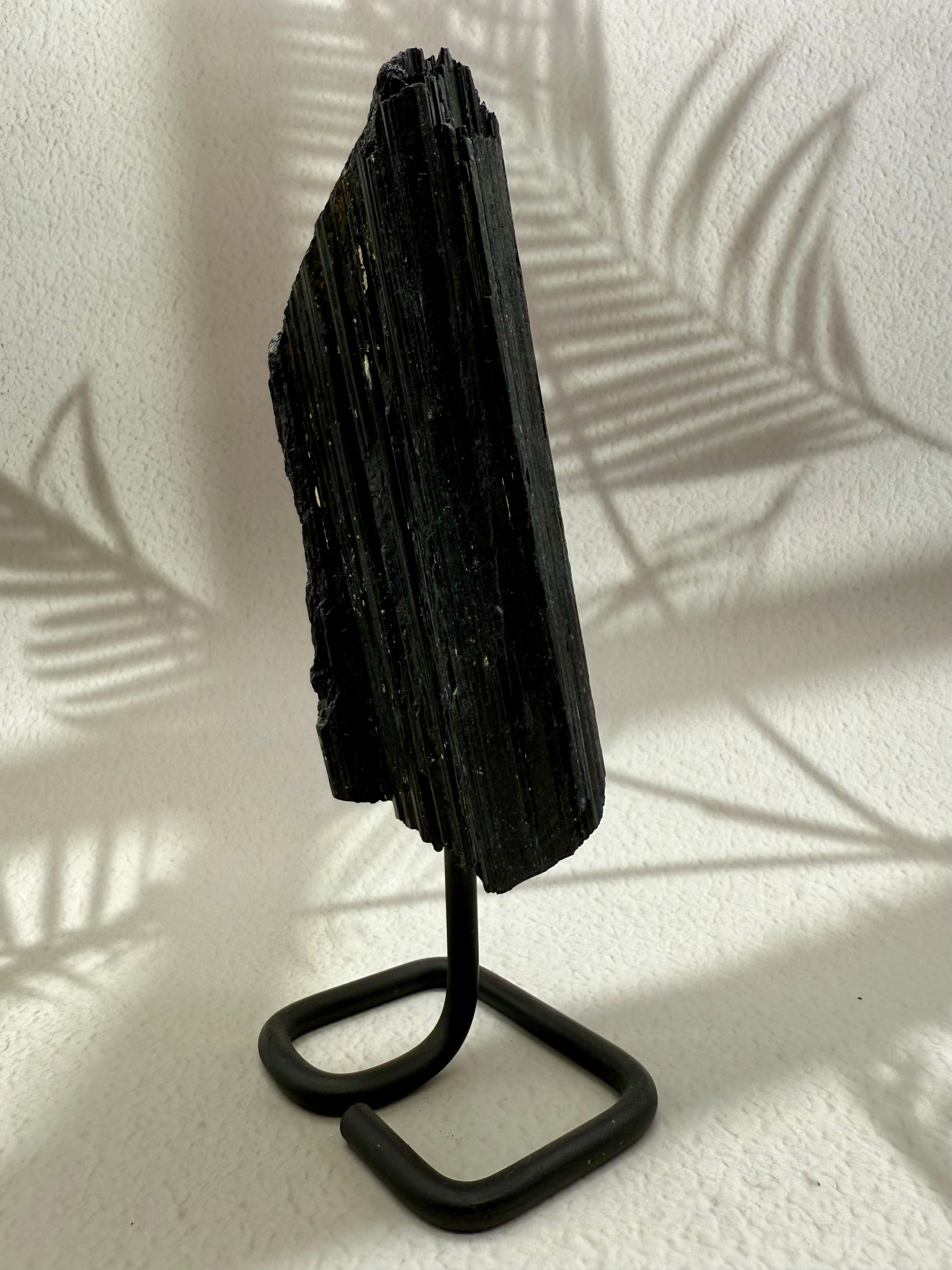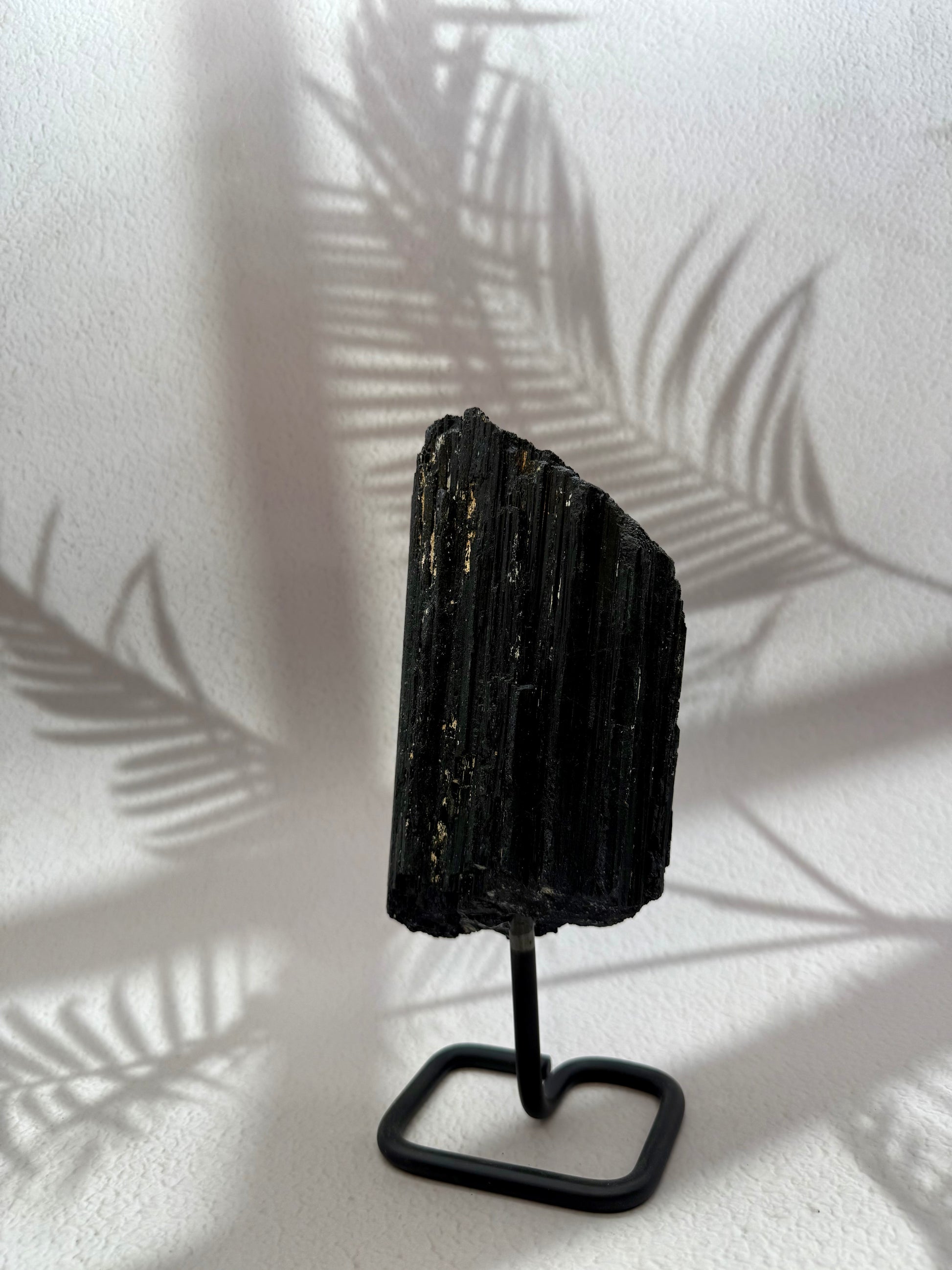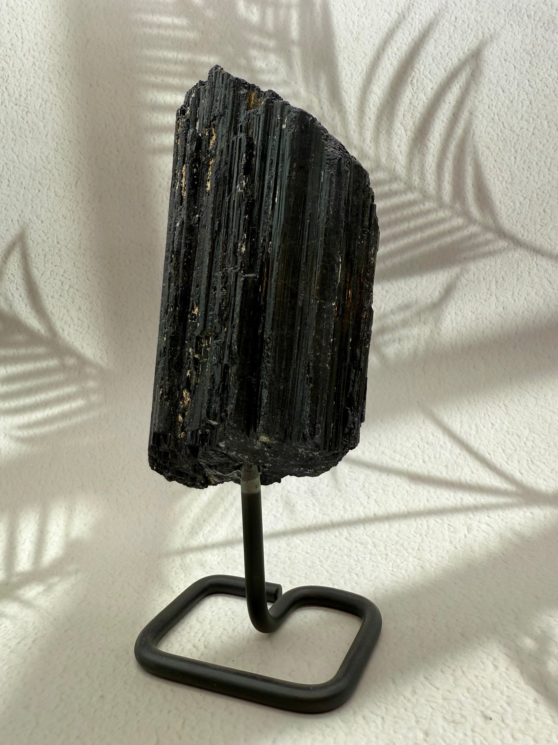 Schwarzer Turmalin auf Ständer – Schutz & Erdung in kraftvoller Form
