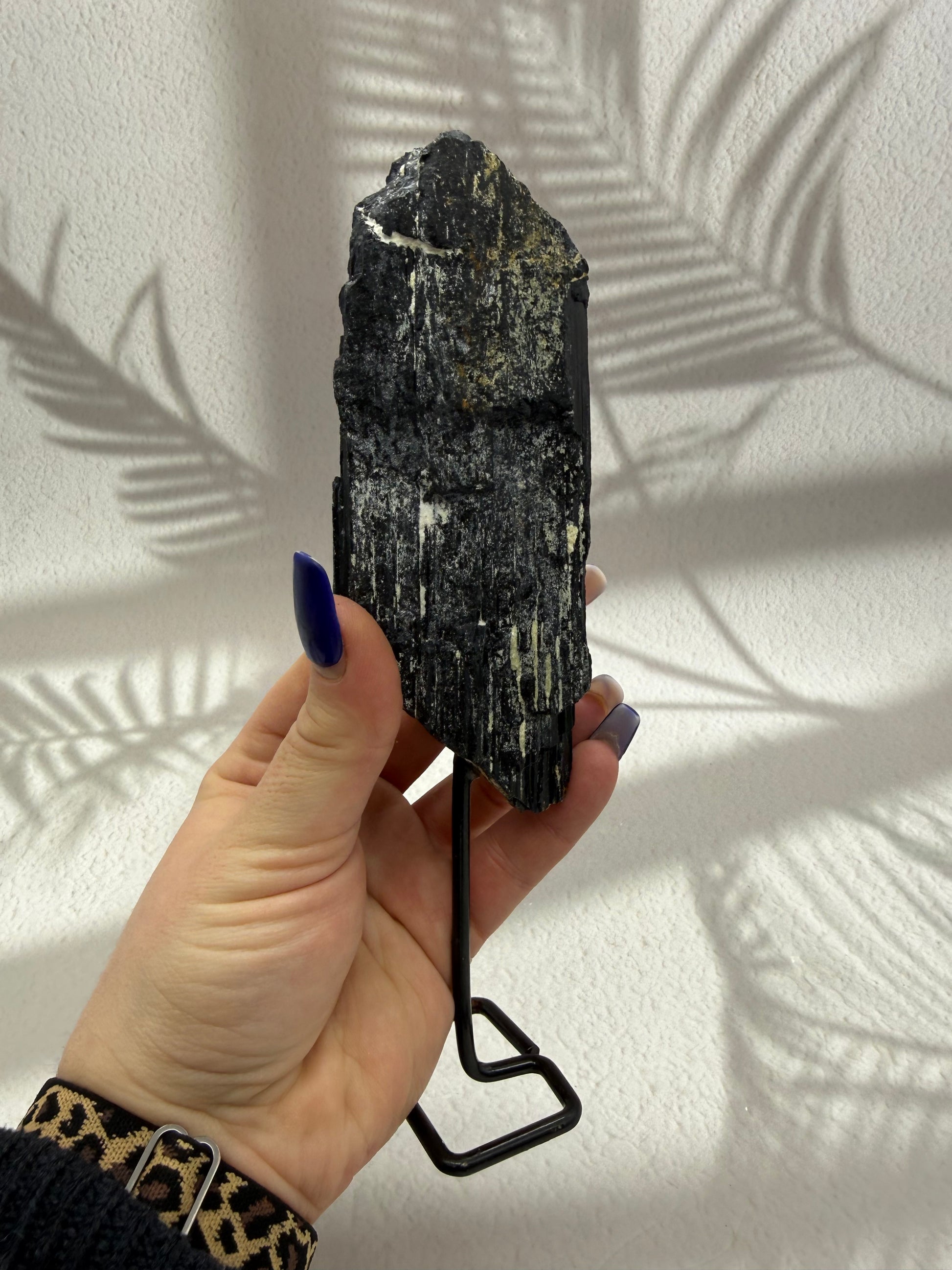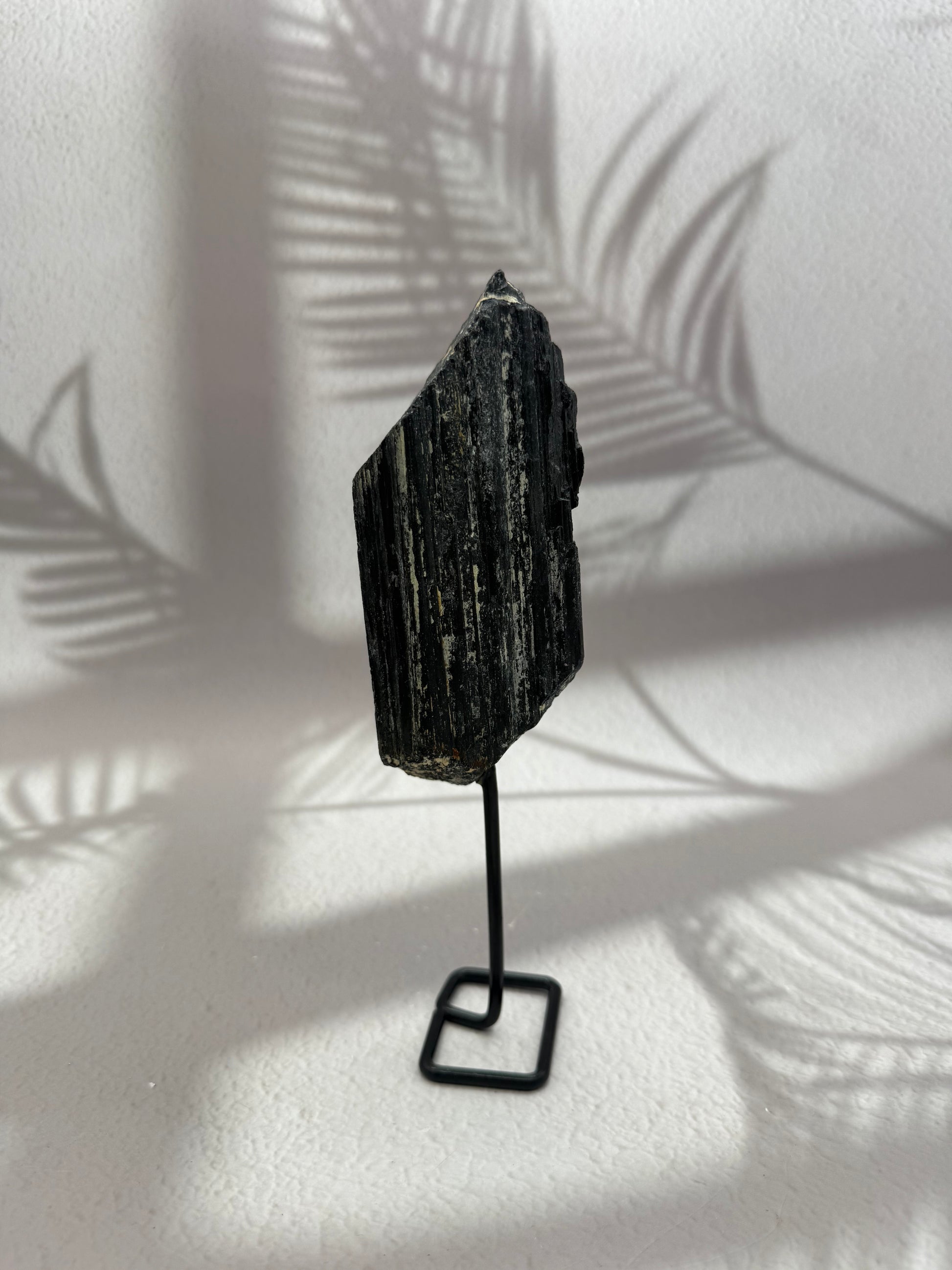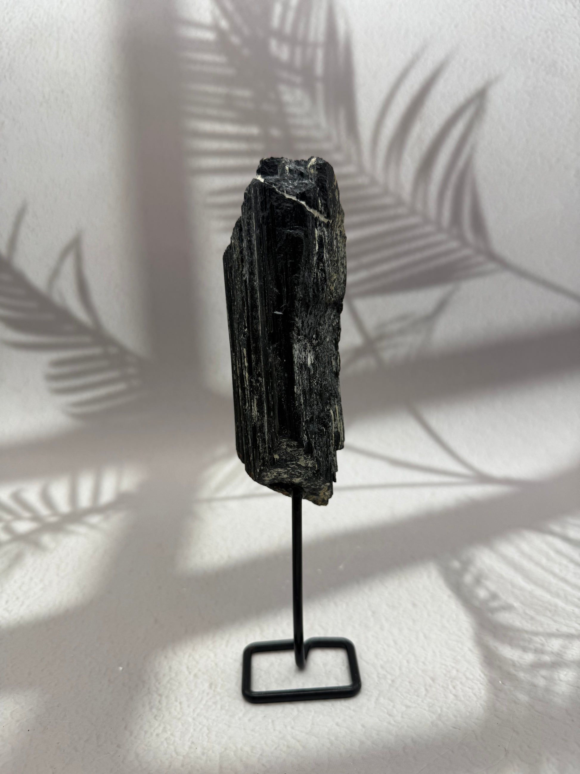 Schwarzer Turmalin roh auf Ständer – Kraftstein für Schutz & Erdung