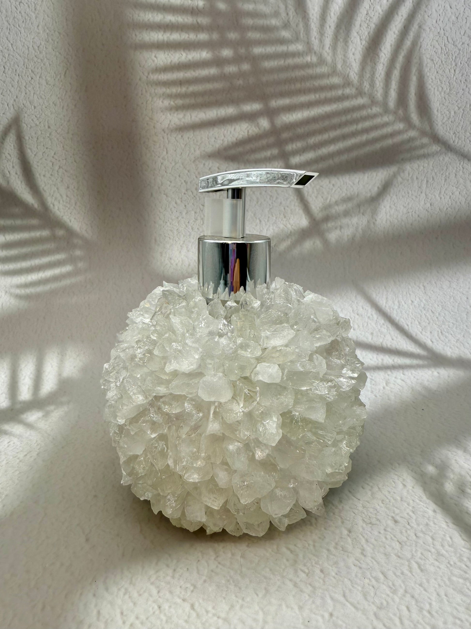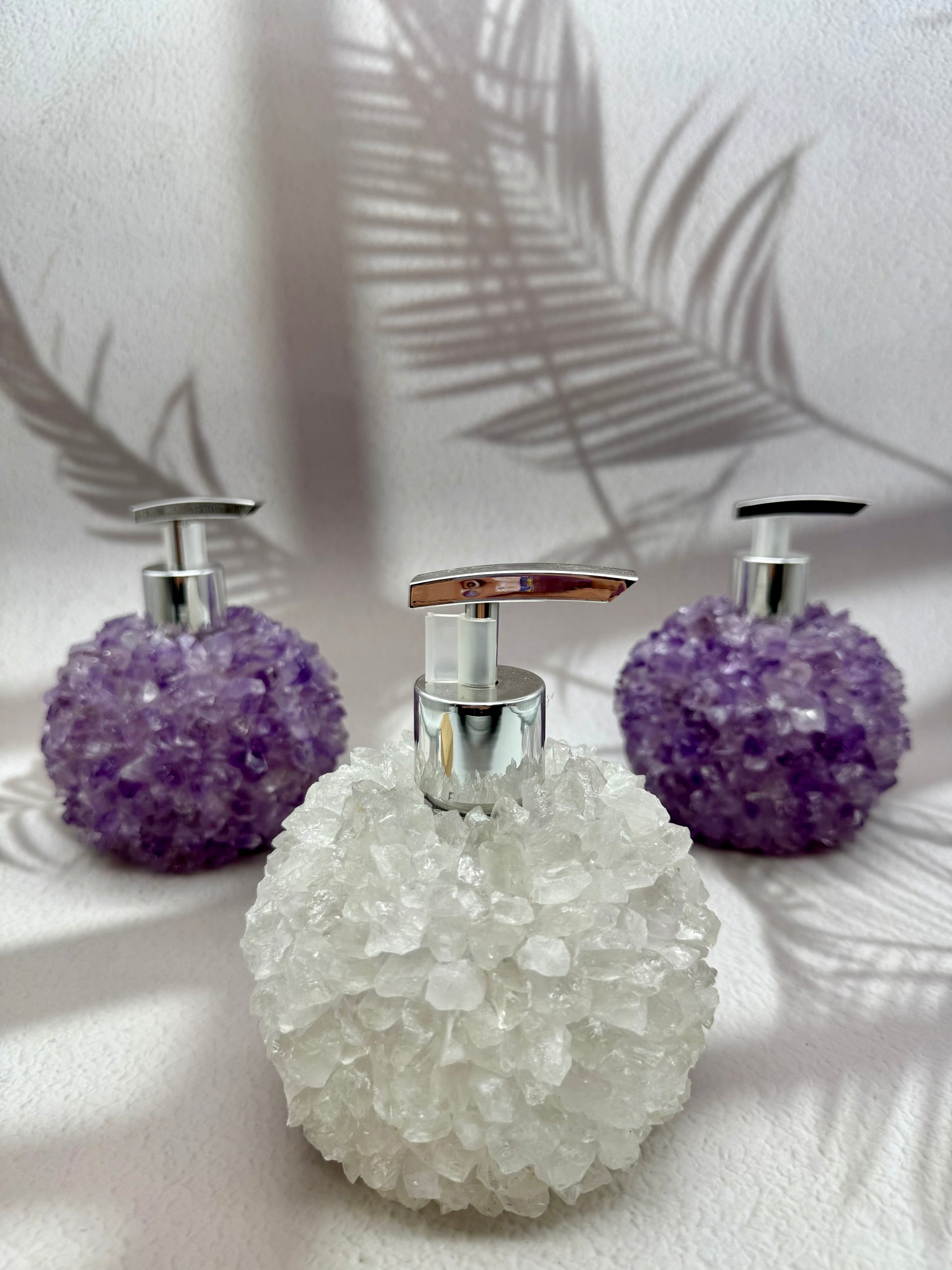 Seifenspender aus Bergkristall-Drusen – Klarheit & Eleganz für dein Bad