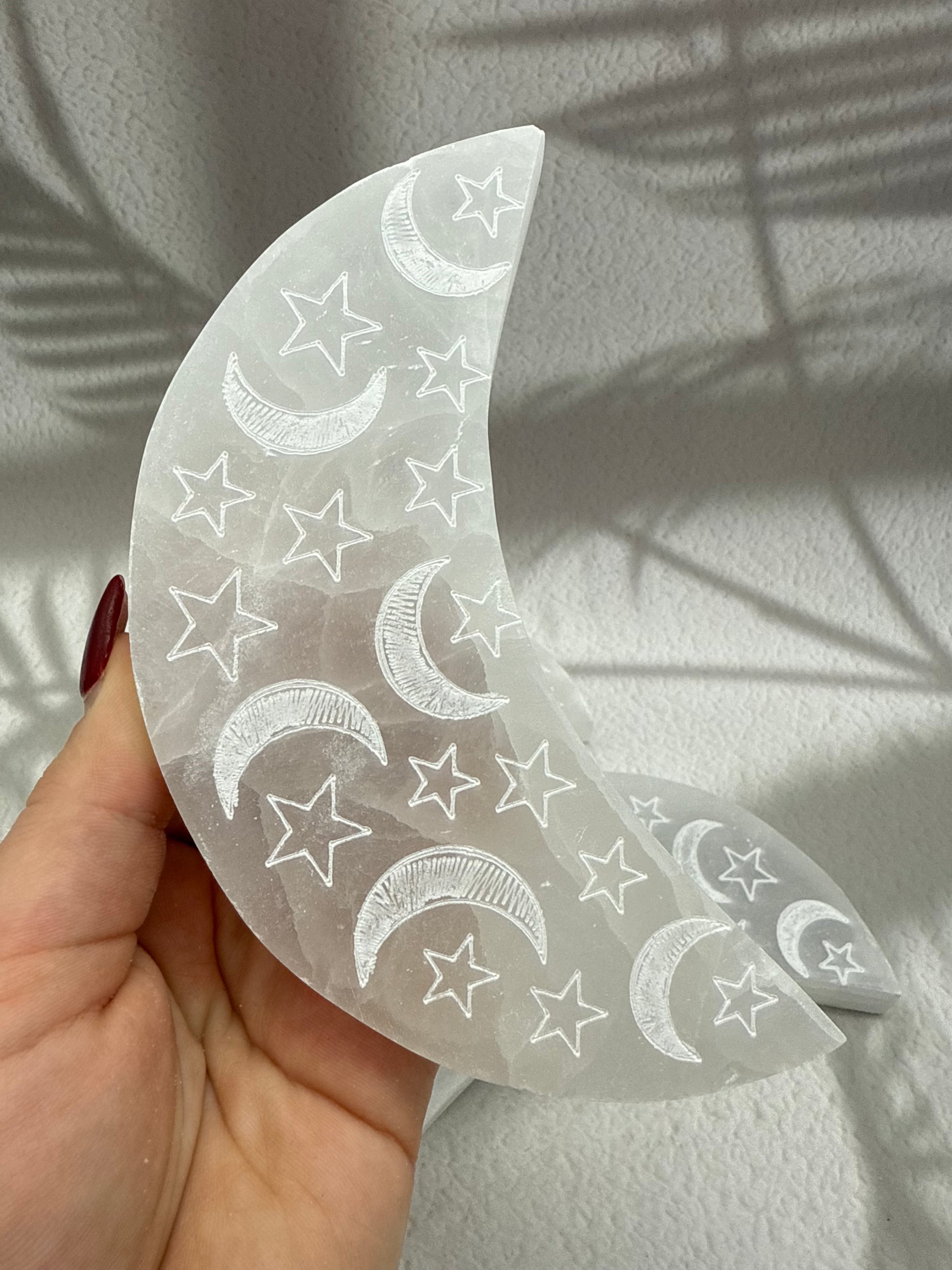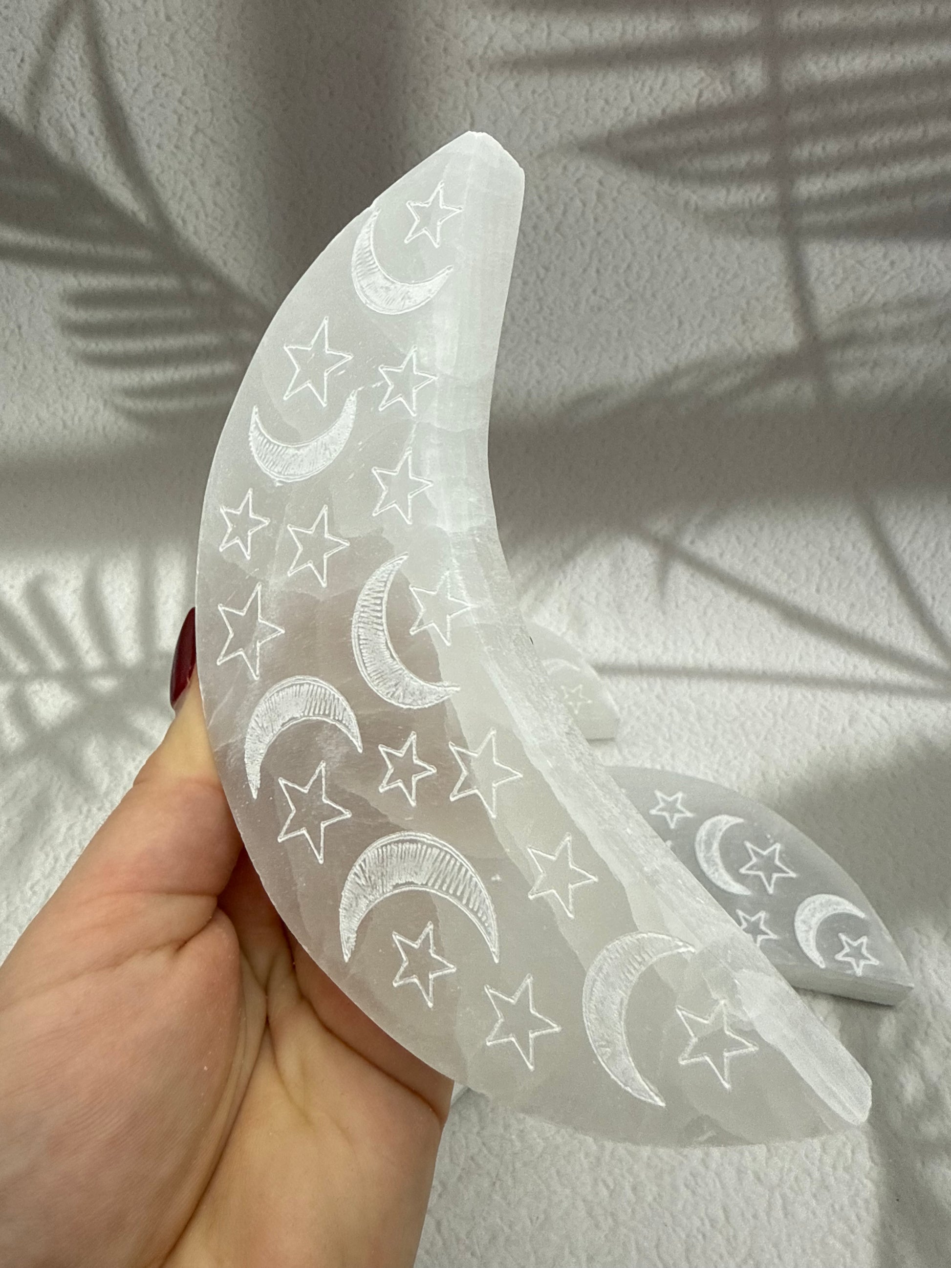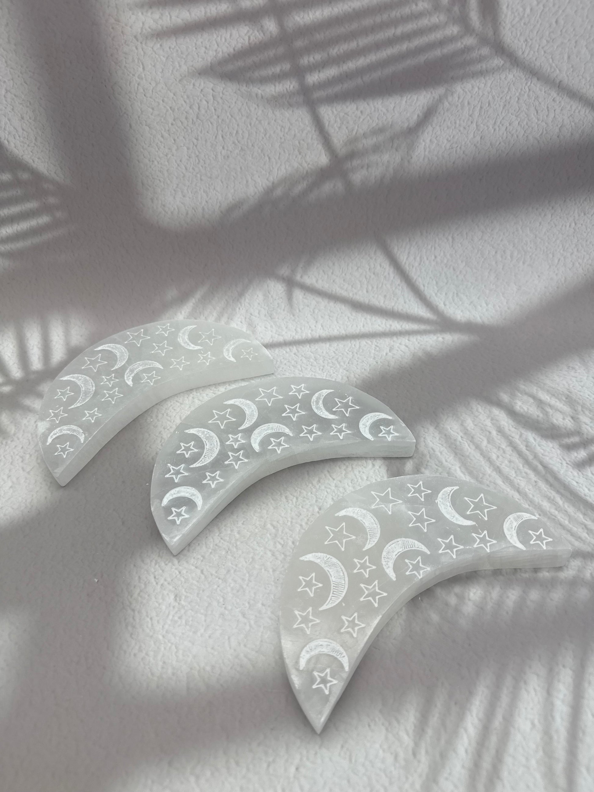 Selenit-Ladeplatte – Mondform – Reinigen, Laden & harmonische Energie