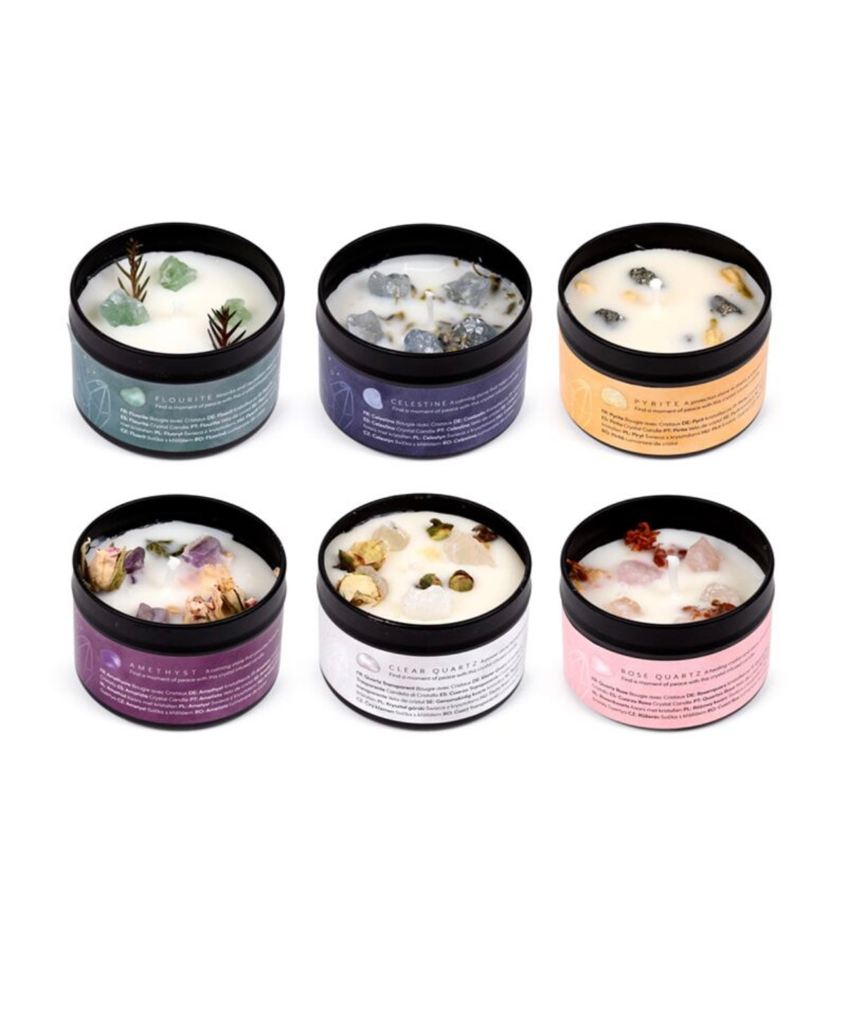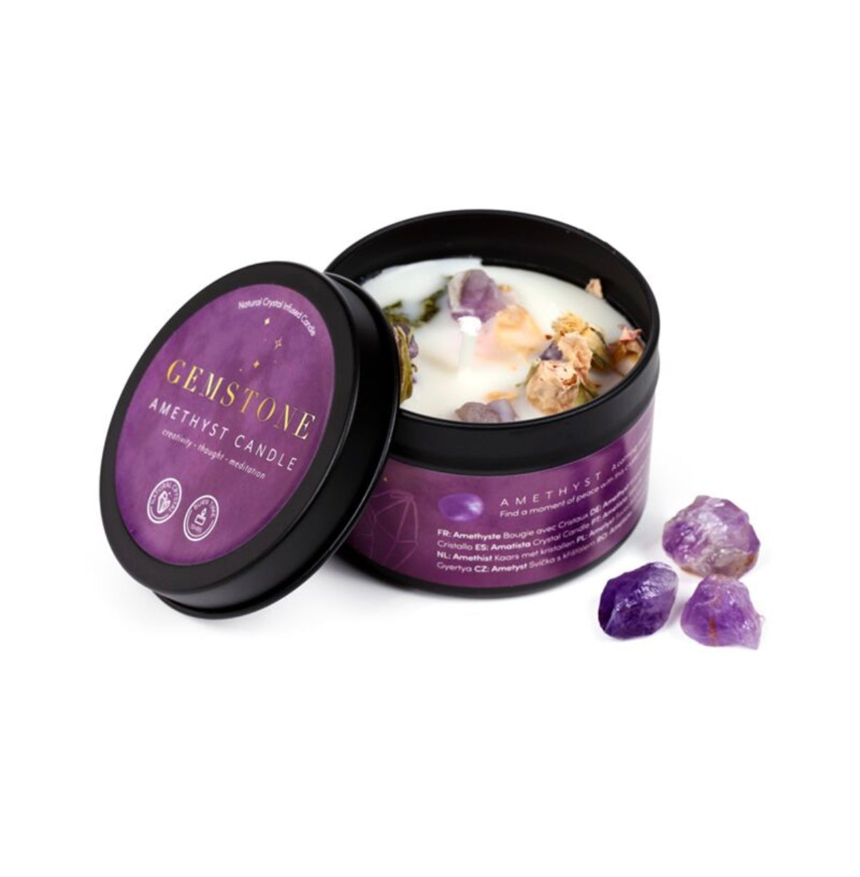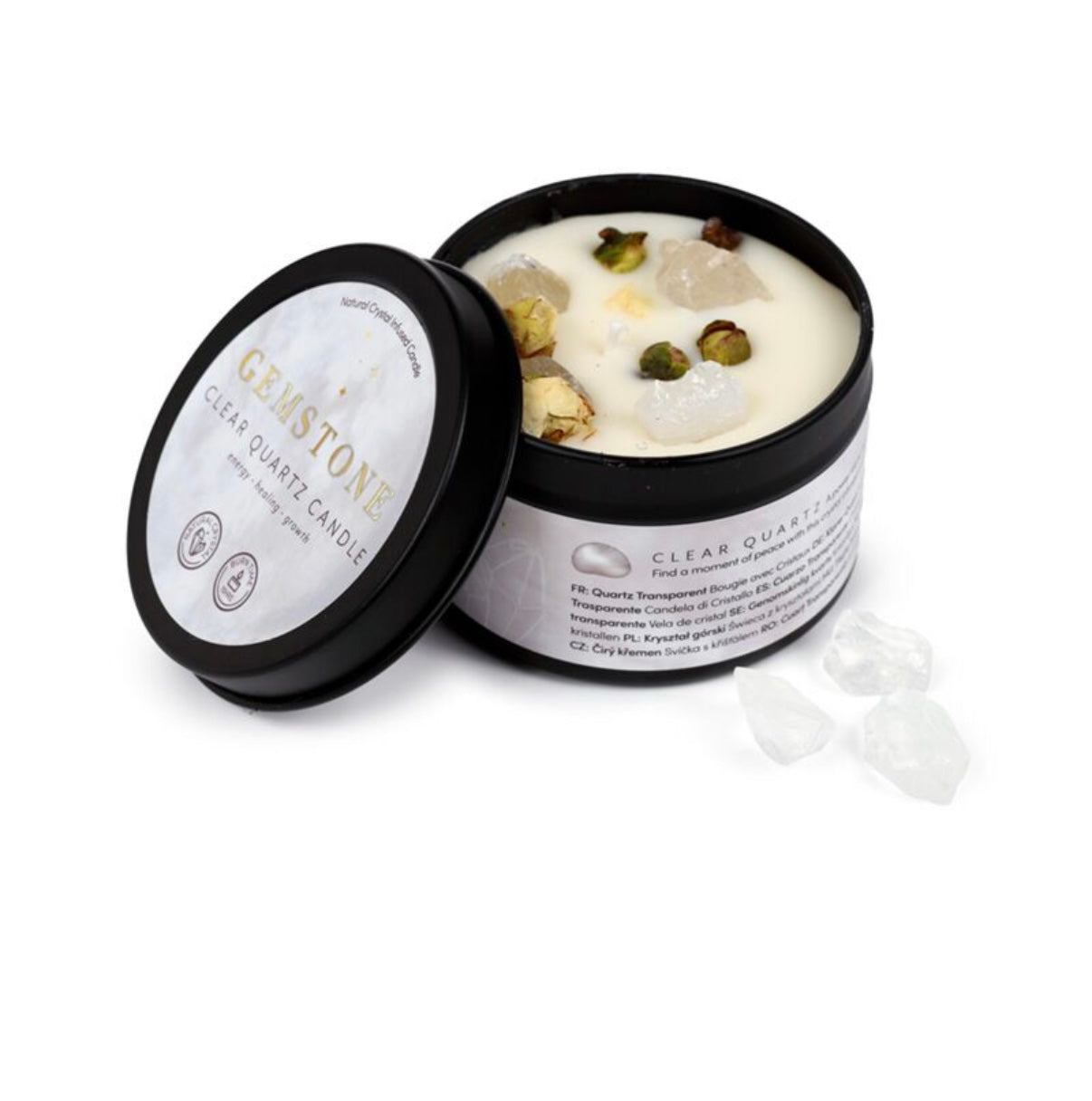 Unsere handgegossenen Sojawachskerzen vereinen Nachhaltigkeit, Ästhetik und energetische Kraft. Jede Kerze enthält sorgfältig ausgewählte Edelsteinstücke (z. B. Amethyst, Rosenquarz, Bergkristall, Coelestin, Pyrit oder Fluorit) und getrocknete Blütenblätter wie Rose, Kamille, Lavendel, Jasmin oder Jungfernkiefer, die liebevoll in das Wachs eingebettet sind.