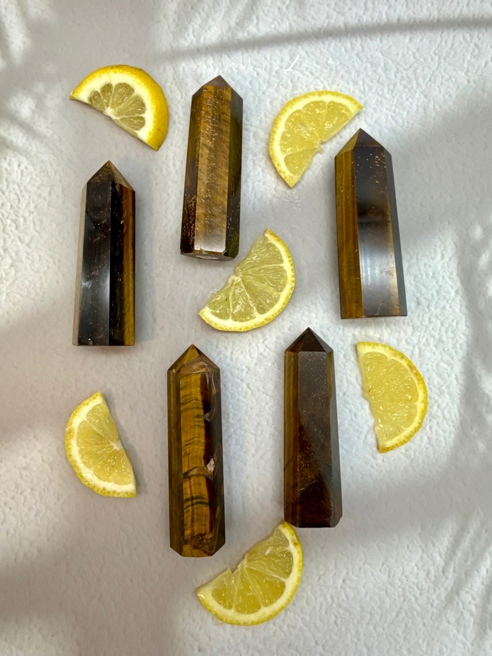 Diese eindrucksvollen Tigerauge-Türme verbinden die natürliche Schönheit des Steins mit einer klaren, aufrechten Form. Die charakteristischen goldbraunen Streifen schimmern im Licht und verleihen jedem Turm eine dynamische, energetische Ausstrahlung. Aufrecht präsentiert, werden die Türme zu dekorativen Highlights und kraftvollen Energiezentren in deinem Raum.